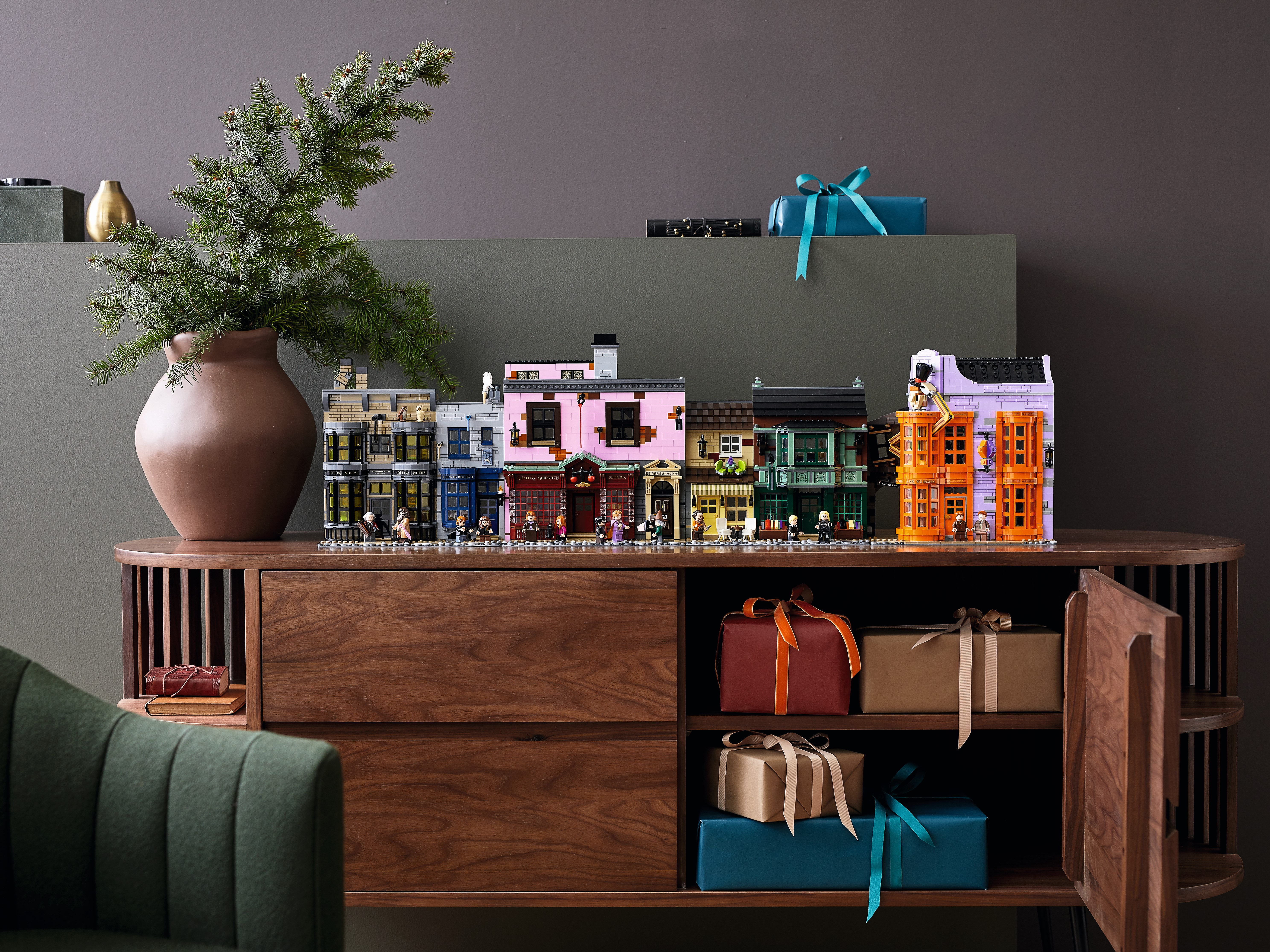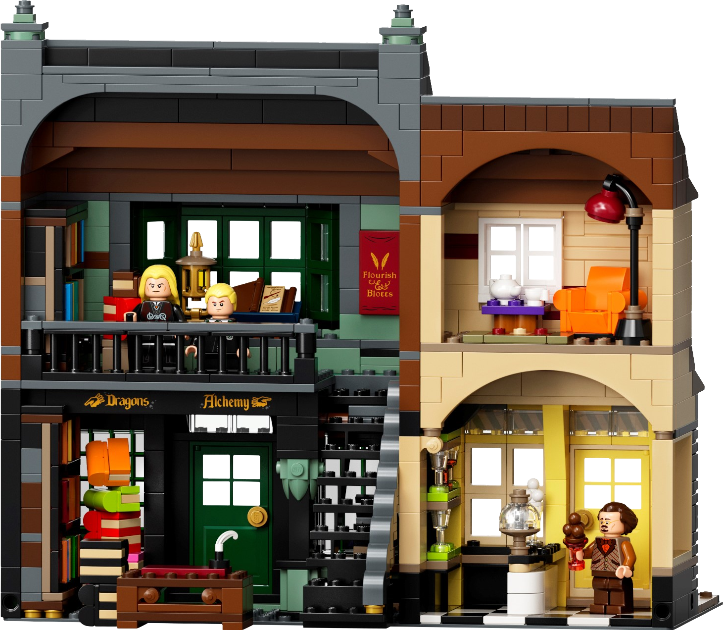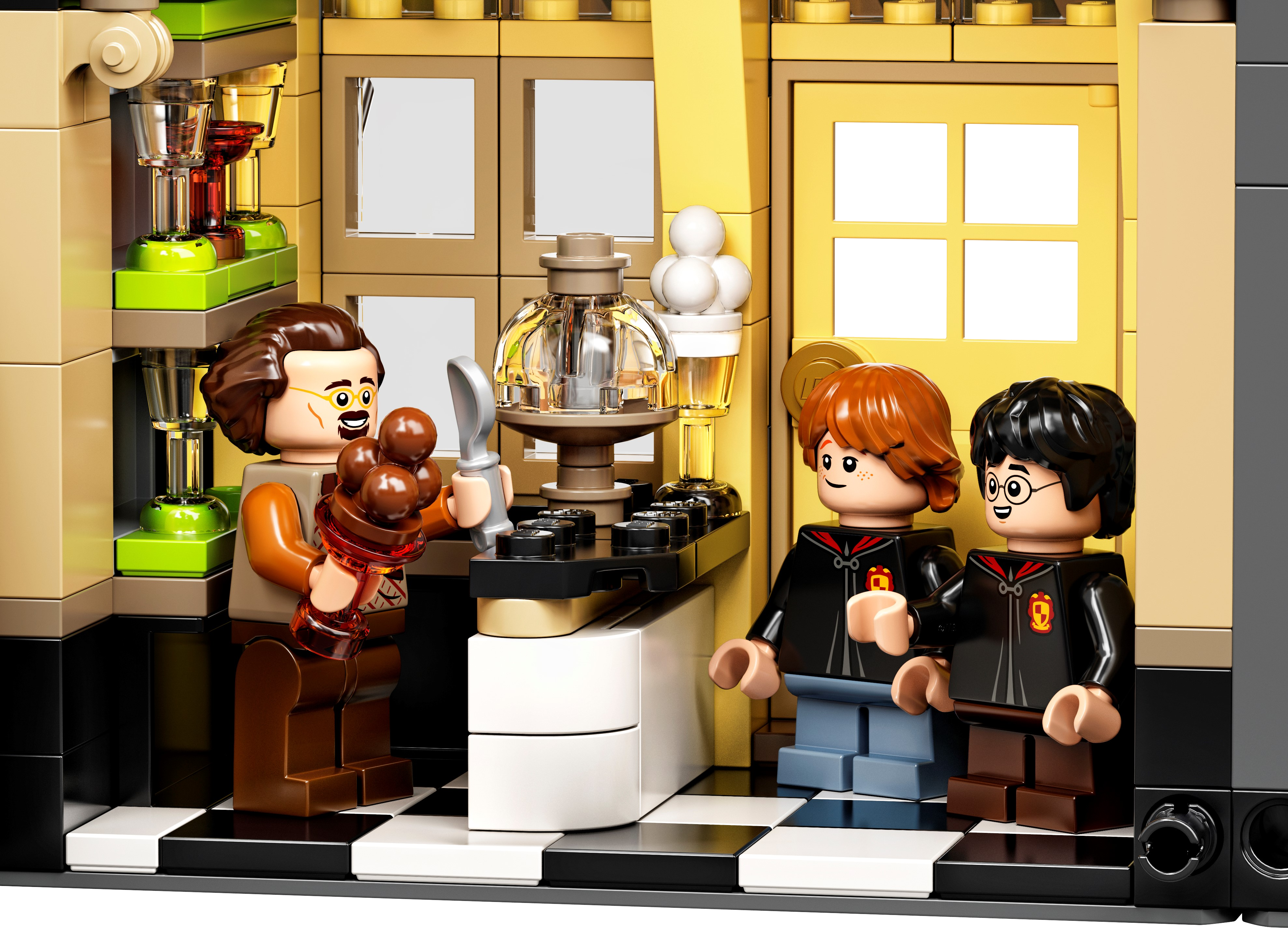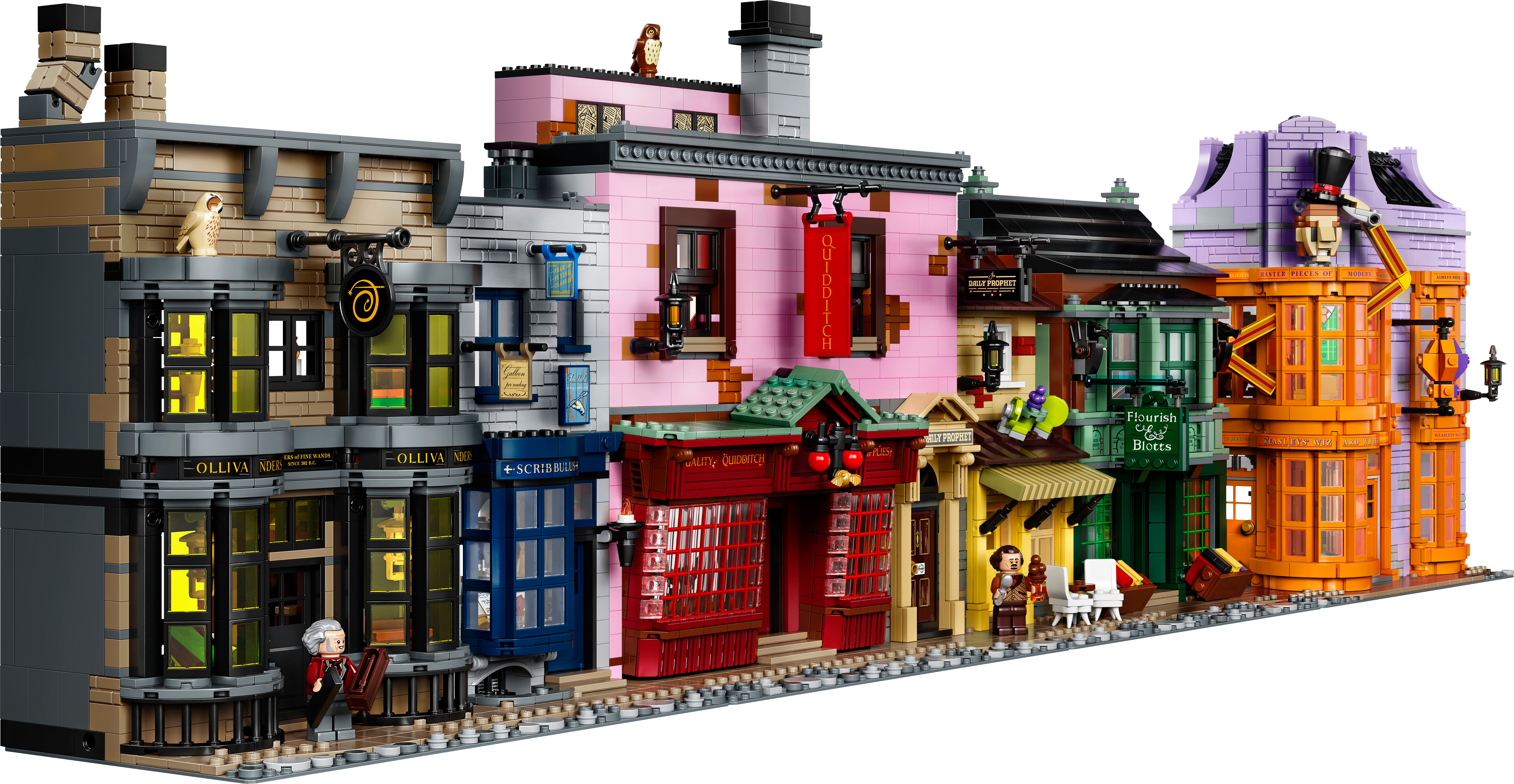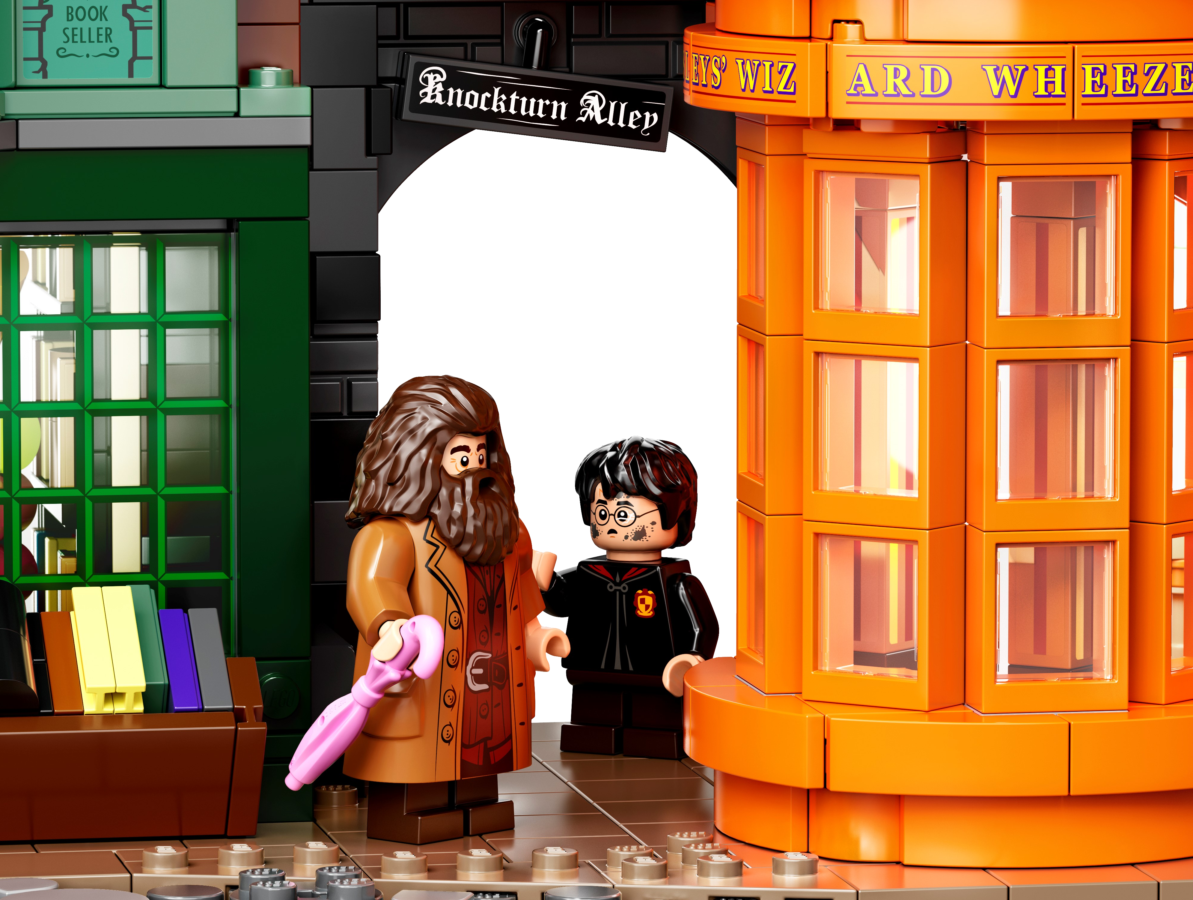 LEGO® Harry Potter™ Diagon Alley™ (75978) is a superb recreation of London’s most magical shopping street for fans of the Harry Potter movies aged 16 and up.Iconic stores packed with authentic movie detailsMeasuring more than a meter wide, the impressive model captures the scale and ambience of the bustling magic-supplies hub. Behind magnificent facades lie intriguing interiors, fascinating features and familiar characters. Check out the wands at Ollivanders™; drop in on Gilderoy Lockhart™'s book-signing event at Flourish & Blotts™ bookseller; obtain a love potion from Weasleys' Wizard Wheezes™; and peruse the products and paraphernalia at Scribbulus™ Writing Implements, Quality Quidditch™ Supplies, Florean Fortescue's Ice Cream Parlor and the Daily Prophet™.Cool collectible building toysThe extensive range of LEGO models and playsets provide fans of the Harry Potter Universe with endless imaginative fun and creative display possibilities.This large LEGO® Harry Potter™ Diagon Alley™ (75978) display model gives fans of the Harry Potter movies aged 16 and up a chance to recreate magical London’s most magical shopping street.Includes Ollivanders™ Wand Shop, Scribbulus™ Writing Implements, Quality Quidditch™ Supplies, Florean Fortescue's Ice Cream Parlor, Flourish & Blotts™ bookseller, Weasleys' Wizard Wheezes™ and the Daily Prophet™ entrance.Authentic accessories and familiar minifigures from the Harry Potter™ movies makeit possible to create a ‘living model’ with endless possibilities to rearrange and create new narratives.This challenging and rewarding construction set makes a great Christmas or birthday gift for kids, Harry Potter™ fans, model enthusiasts and lovers of LEGO® brick building aged 16 and up.Measuring over 11” (29cm) high, 40” (102cm) wide and 5” (13cm) deep, this LEGO® Harry Potter™ Diagon Alley™ set is crammed to the rooftops with authentic details.No batteries required. This modular construction set provides a hands-on, fulfilling building experience. Even the famous hat-lifting entrance to Weasleys' Wizard Wheezes™ is powered by hand.If you’re thinking of buying this remarkable model as a gift for someone new to LEGO® building kits, don't worry – it comes with easy-to-follow, printed building instructions. Open the box and let the building fun begin!LEGO® Harry Potter™ sets contain favorite characters, amazing features and familiar locations from the popular movies. They make ideal gifts for anyone wanting to recreate the movie magic.LEGO® construction toys meet the highest industry standards to ensure every brick is consistent and compatible, connecting and pulling apart perfectly every time – no magic required!All LEGO® bricks and pieces are dropped, heated, crushed, twisted and analyzed to make sure each one meets the highest safety standards in the world.