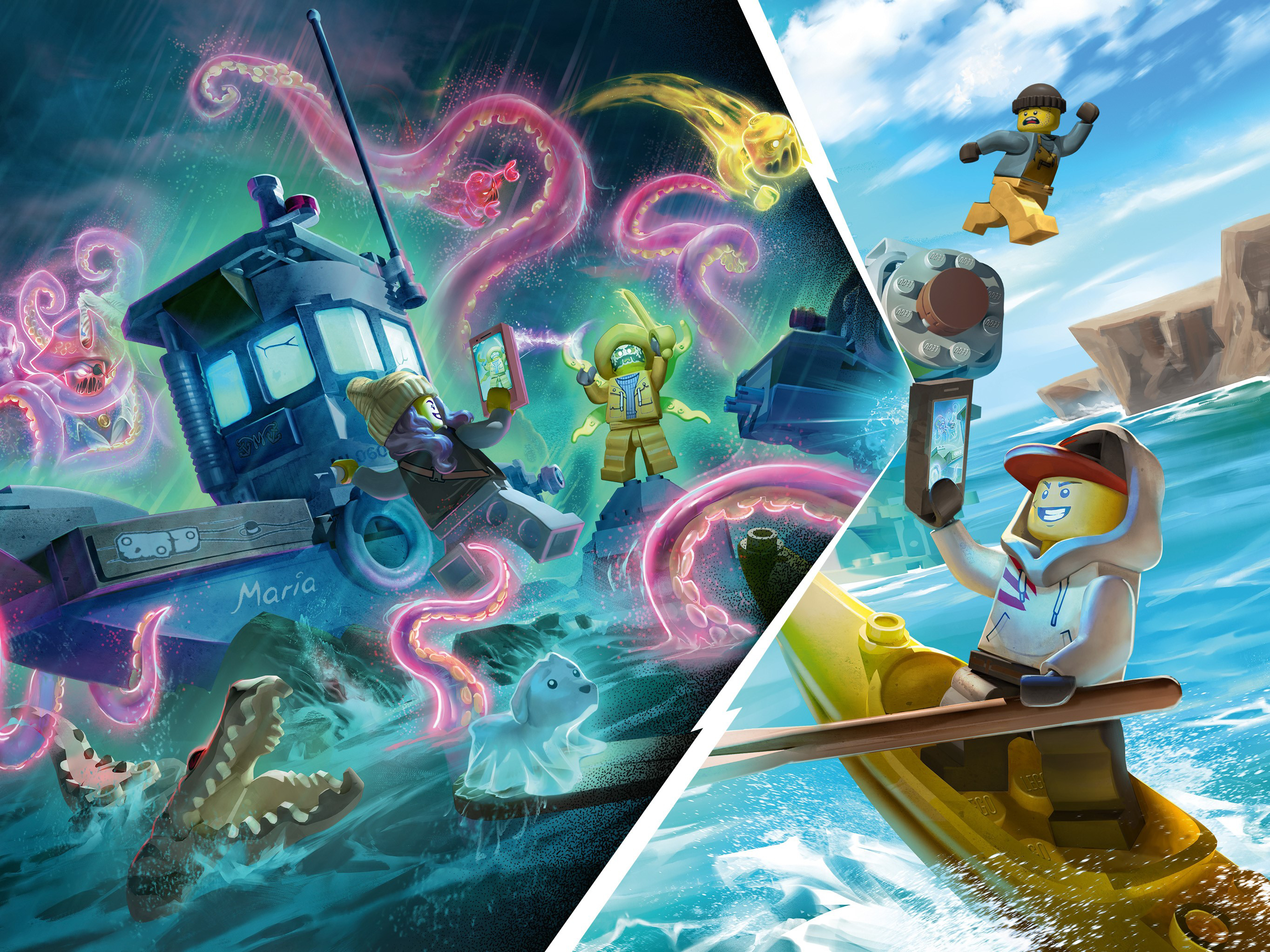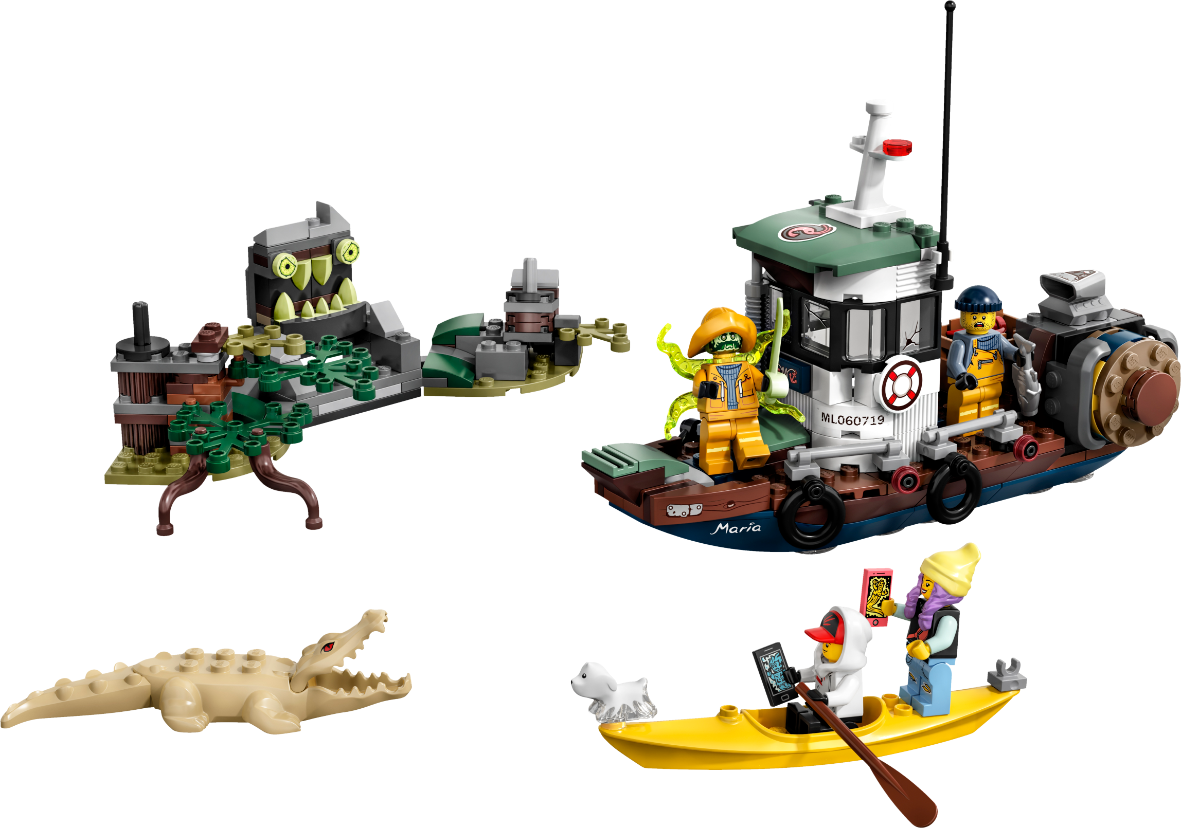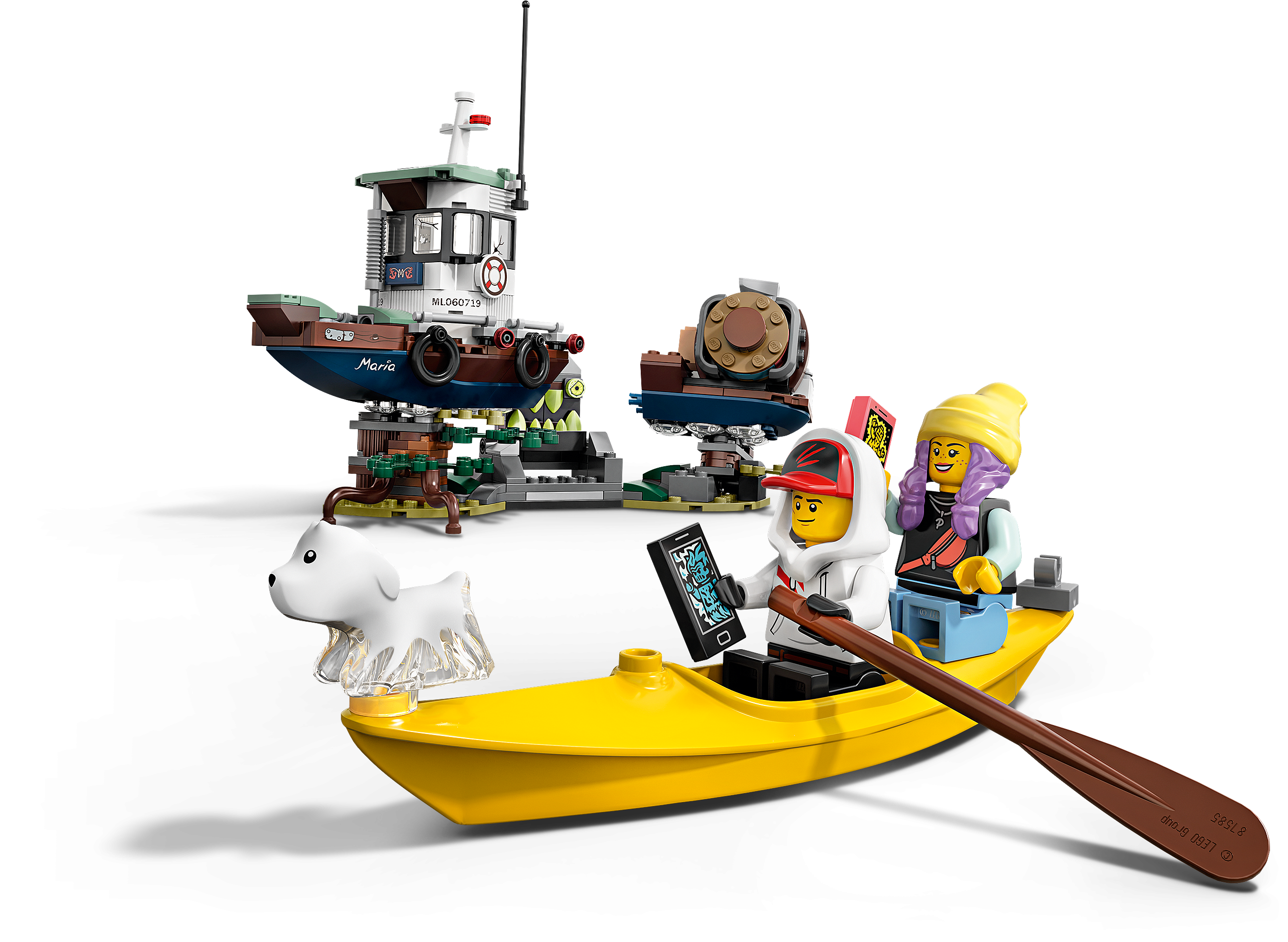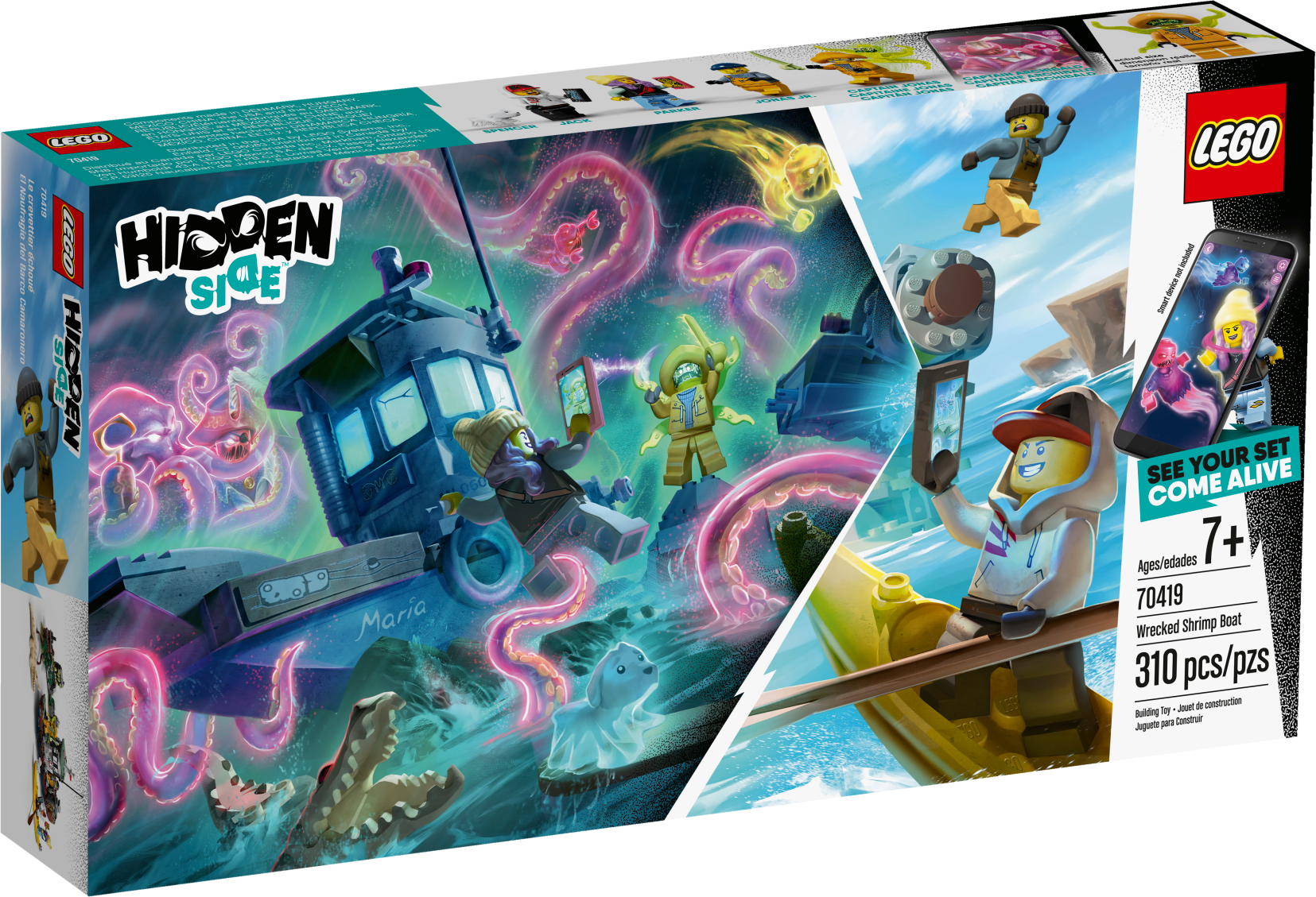 Immerse youngsters in fun ghost-catching adventures with this LEGO® Hidden Side™ 70419 Wrecked Shrimp Boat playset. This awesome playset combines a buildable LEGO model with a game app for kids to deliver a fully interactive play experience. Download the app and scan the model with a phone to make it come alive. With continuous updates, a unique boss ghost to battle in each set, new mysteries to solve, cool items to find and ghosts to defeat and collect, this LEGO Hidden Side set takes LEGO play to a new dimension! With a toy shrimp boat that splits in two and a haunted, brick-built cliff, this building toy for kids is full of cool details to kick-start hours of imaginative play. The 2 hero minifigures, haunted captain and son minifigures, cute ghost dog figure and albino alligator figure adds a lot of fun play-starters. Download the LEGO® Hidden Side™ app and point your phone at the Wrecked Shrimp Boat to make this building set for kids come alive and reveal the Hidden Side. Move the phone around to discover an ever-changing environment hidden around the model. This augmented reality toy for kids includes 4 minifigures: heroes Jack Davids and Parker L. Jackson, Captain Jonas and his son, Jonas Jr., plus Davids's ghost dog, Spencer, and the legendary albino alligator to role-play the action in the story. This Wrecked Shrimp Boat playset features a cool, nautical-inspired shrimp boat that can split into two and be put together again, as well as a brick-built cliff that can become haunted. Set in the fictional town of Newbury, where ghosts haunt people and buildings, LEGO® Hidden Side™ playsets let kids play out exciting ghost-hunting adventures that combine physical LEGO models with fully-interactive augmented reality. Build and play with the physical set and then bring it to life as you interact with the set while viewing it through the AR app. Using the LEGO® Hidden Side™ app is like looking through a window to a cool and spooky Hidden Side filled with challenging mysteries to solve, ghosts to defeat and unique ghost bosses to overcome in each set. To get the full augmented reality experience, a tablet or mobile phone is required, but not included. Compatible with selected iOS and Android devices. Check compatibility at www.LEGO.com/devicecheck. Children should ask permission before going online. Shipwreck on the island measures over 7” (19cm) high, 9” (24cm) wide and 4” (12cm) deep. Shrimp Boat measures over 5” (15cm) high, 3” (8cm) wide and 7” (18cm) deep.
