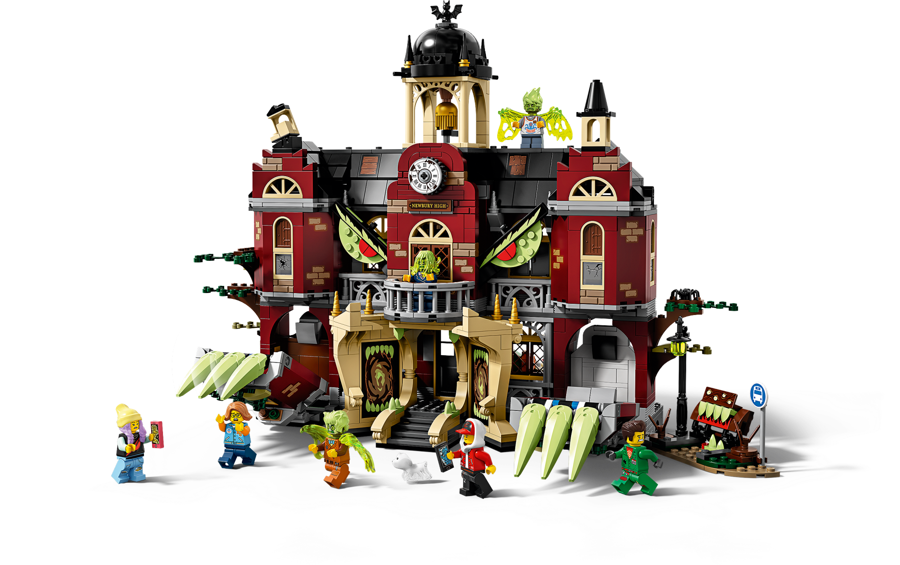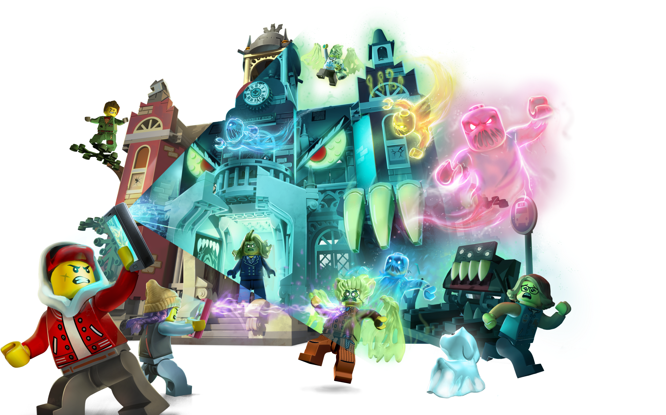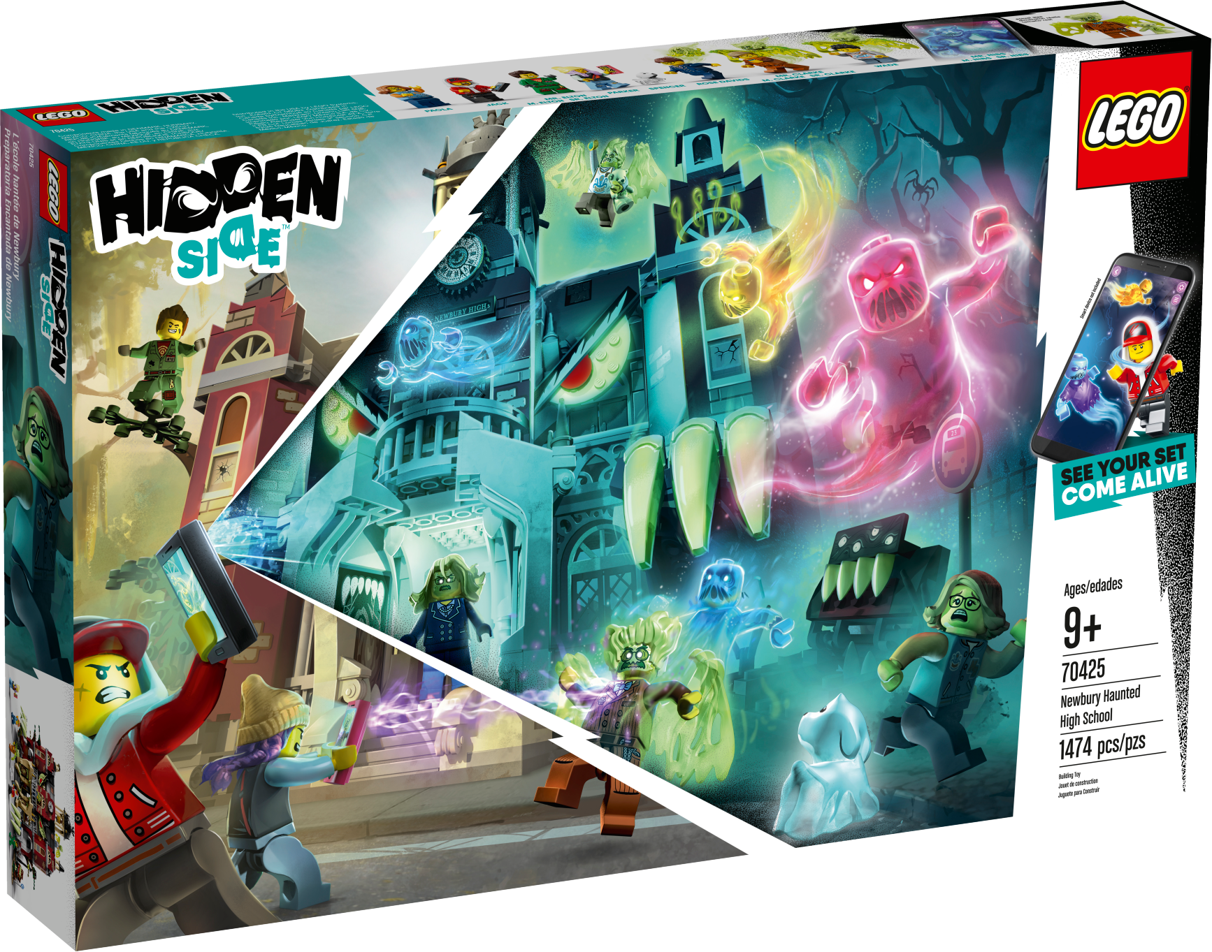 Engage youngsters in fun augmented-reality ghost-hunting adventures at the LEGO® Hidden Side™ 70425 Newbury Haunted High School. This awesome toy combines a buildable LEGO model with an app to deliver a fully interactive play experience – interacting with the model makes things in the app come alive. With continuous updates, tough boss ghosts to battle, new mysteries to solve, cool items to find and ghosts to defeat and collect, this LEGO Hidden Side set takes LEGO play to a new dimension! This building toy for kids is full of cool details to kick-start hours of imaginative play. Kids will love to build and play with this school playset and try to defeat the ghost figures haunting the school. With two hero minifigures, Douglas Elton, a cute ghost dog figure and 4 other minifigures, this school toy is designed for role-play fun. Download the LEGO® Hidden Side™ app and point your phone at the Newbury Haunted High School to make this school set for kids come alive. Move the phone around to discover an ever-changing environment hidden around the model. This augmented reality toy includes 8 figures: Jack Davids with a smartphone and girl minifigure Parker L. Jackson with a smartphone, Elton Douglas, Rose Davids, headmaster Mrs. Clarke, student Paola and Wade, and Davids's ghost dog figure, Spencer. This school toy features a lot of fun play-starters, including a hidden chamber, bus station out front, computer lab, library, bathroom, chemistry room and bell tower. The entire school can change from normal to haunted. Set in the fictional town of Newbury, where ghosts haunt people and buildings, LEGO® Hidden Side™ playsets let kids play out exciting ghost-hunting adventures that combine physical LEGO models with fully-interactive augmented reality. Build and play with the physical building set and then bring it to life as you interact with the set while viewing it through the AR app. Using the LEGO® Hidden Side™ app is like looking through a window to a cool and spooky Hidden Side filled with challenging mysteries to solve, ghosts to defeat and unique ghost bosses, like Mr. Nibs, to overcome in each set. To get the full augmented reality experience, a tablet or mobile phone is required, but not included. Compatible with selected iOS and Android devices. Check compatibility at www.LEGO.com/devicecheck. Children should ask permission before going online. High school measures over 11” (30cm) high, 16” (43cm) wide and 10” (26cm) deep when haunted.