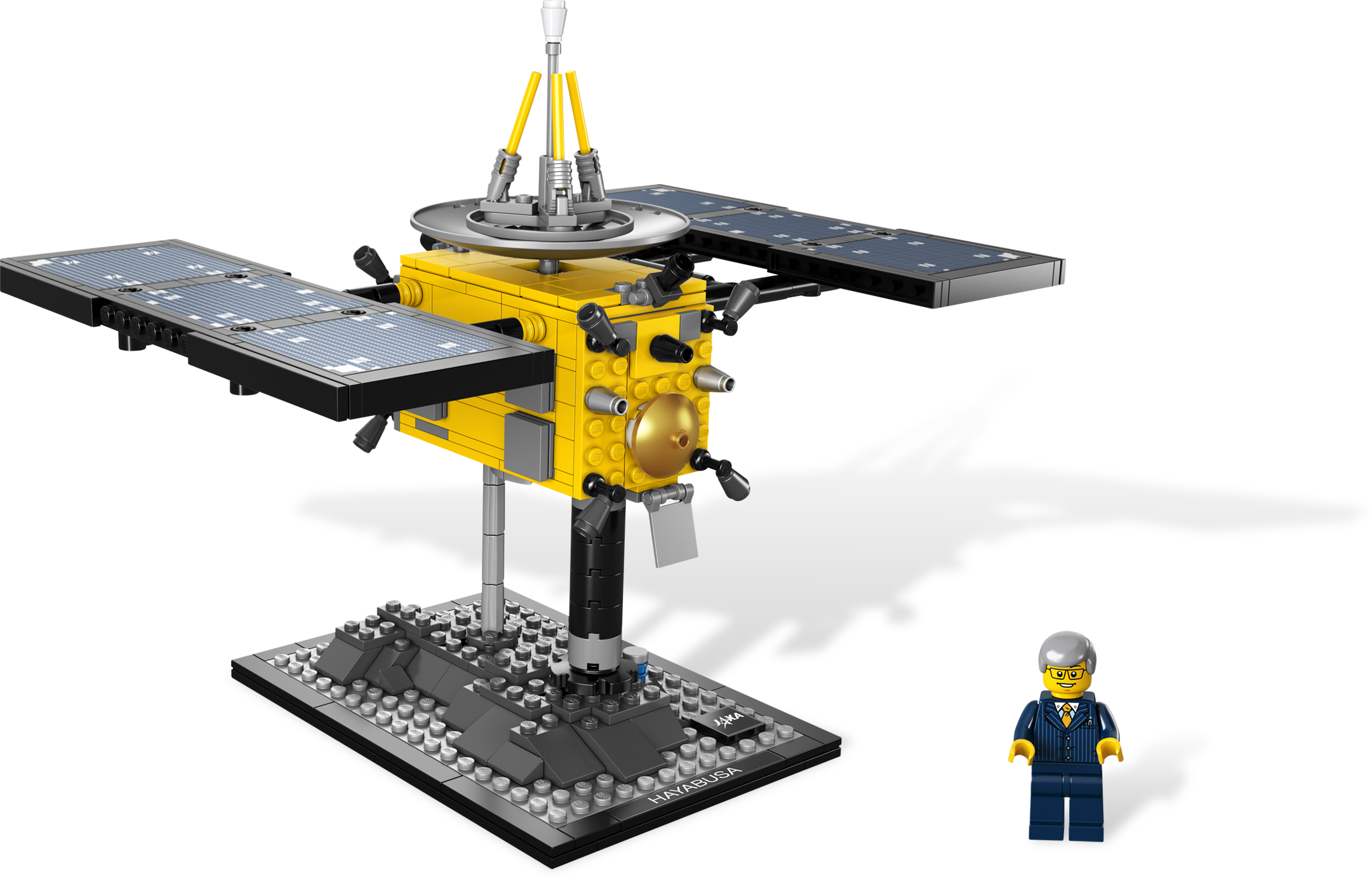 Create a detailed display version of the technology that changed scientific history! In a 2003 mission, this Japanese spacecraft went deep into space to successfully collect asteroid samples and return them safely to Earth – without a single person on board! Selected by more than 1,000 LEGO® CUUSOO members from Japan as the most-demanded model, this build features cool solar panels, moving equipment, a satellite dish and gold elements. Includes a display stand with name labels, minifigure and detailed history booklet.