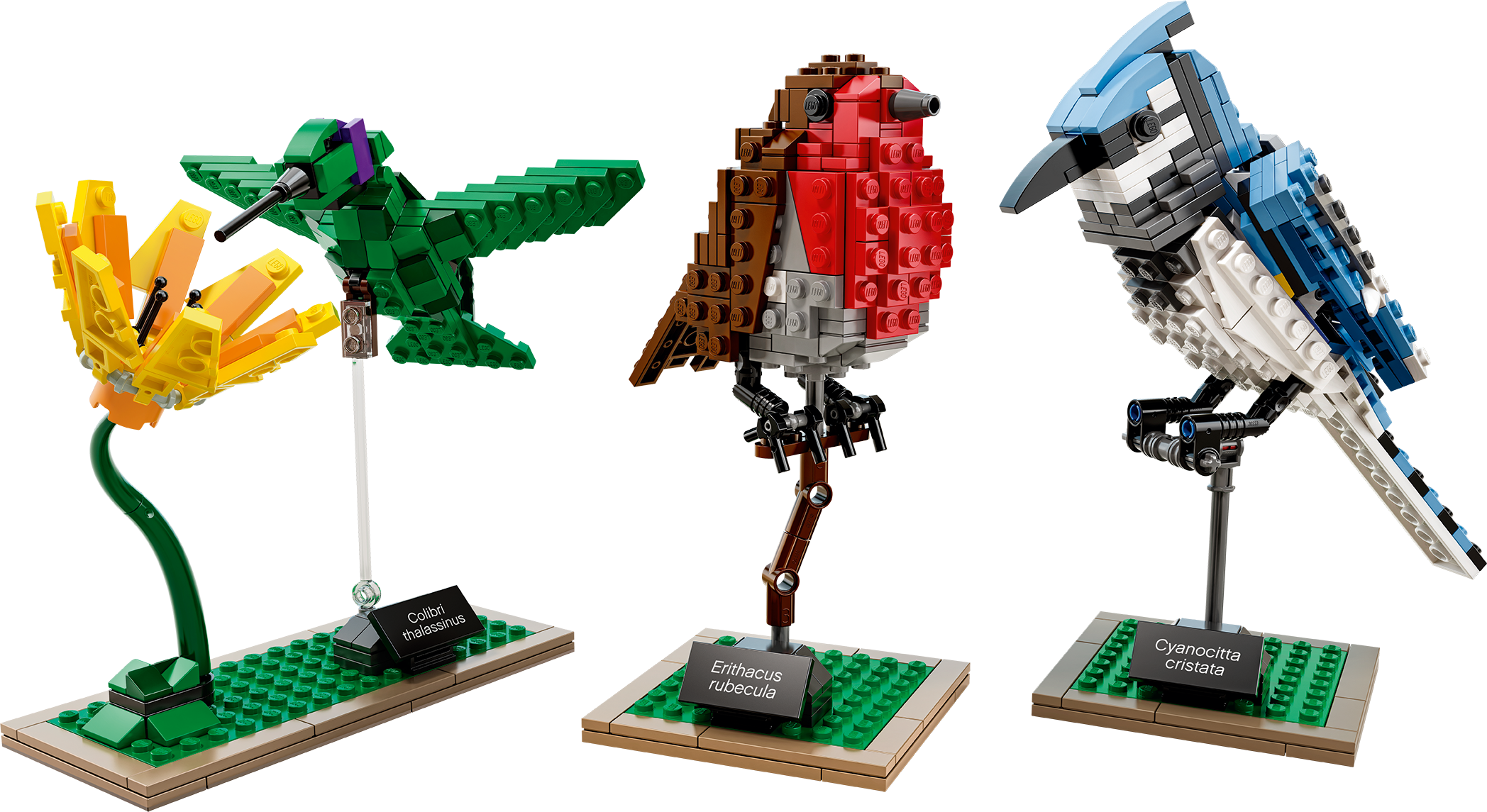Build and display these authentic, well-loved birds! Put down your binoculars and get closer to nature with these intricate LEGO® models of well-known birds! Created by keen gardener and bird enthusiast Thomas Poulsom and selected by LEGO Ideas members, each replica bird hails from a different continent: the Robin from Europe; the Blue Jay from North America; and the Hummingbird from South America. These beautiful and detailed models come with their own presentation stands showing their scientific names, so that you can display your birds for allto enjoy or detach and play as you wish. This set also includes 3 booklets containing lots more information about each of these fascinating species as well as the creator of these amazing models. Features 3 models: a Blue Jay, Hummingbird with flower, and a Robin Includes a presentation stand for each bird featuring its Latin name Enjoy building and rebuilding these intricate models Display the birds using their specially designed stands Recreate the birds that received over 10,000 votes from LEGO® Ideas members Learn more about the species in the booklets provided Includes building instructions and information about the creator The perfect gift for fans of LEGO® bricks and birds alike Blue Jay stands over 7” (18cm) tall on its stand Hummingbird stands over 5” (15cm) tall on its stand Robin stands over 6” (17cm) tall on its stand