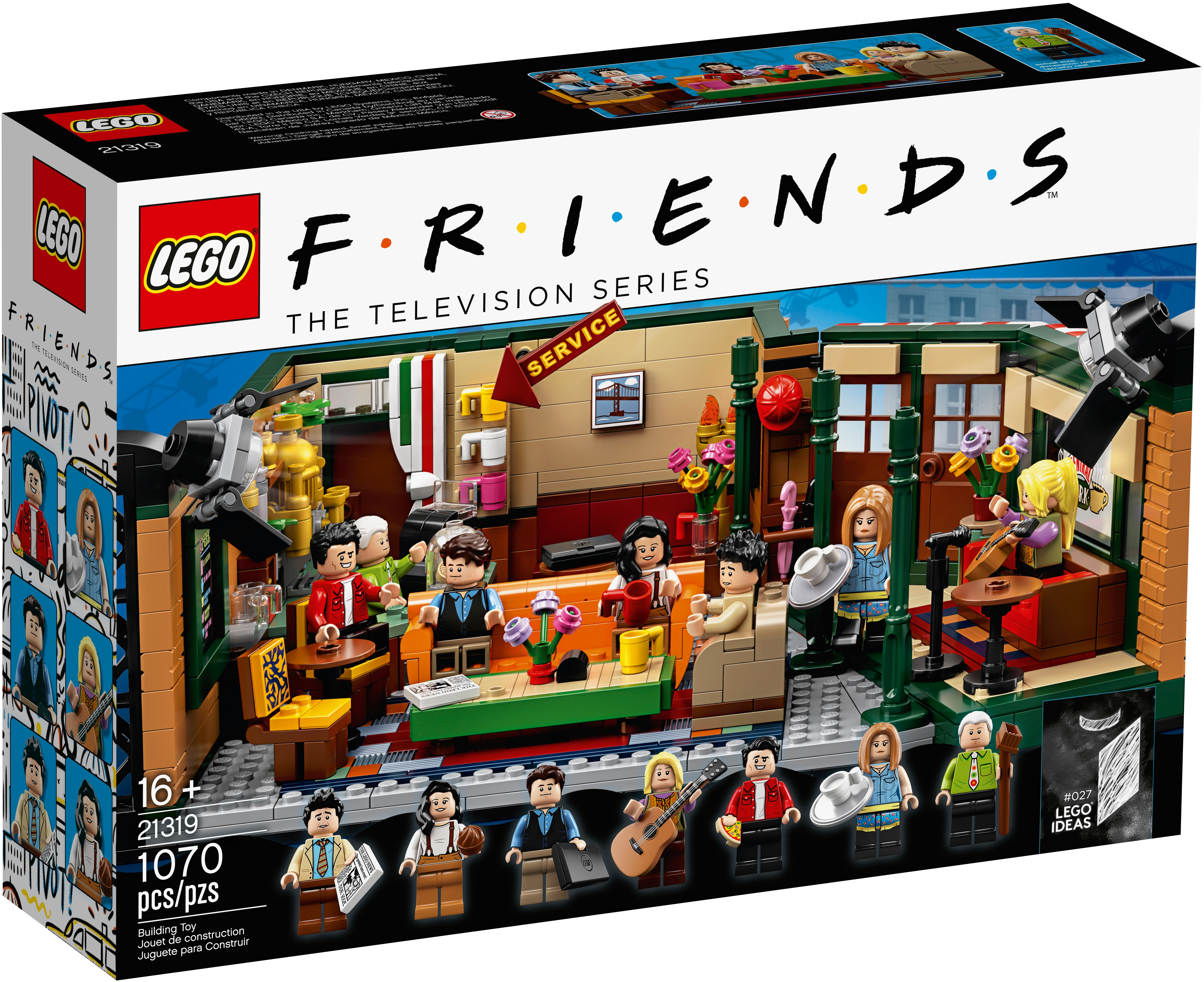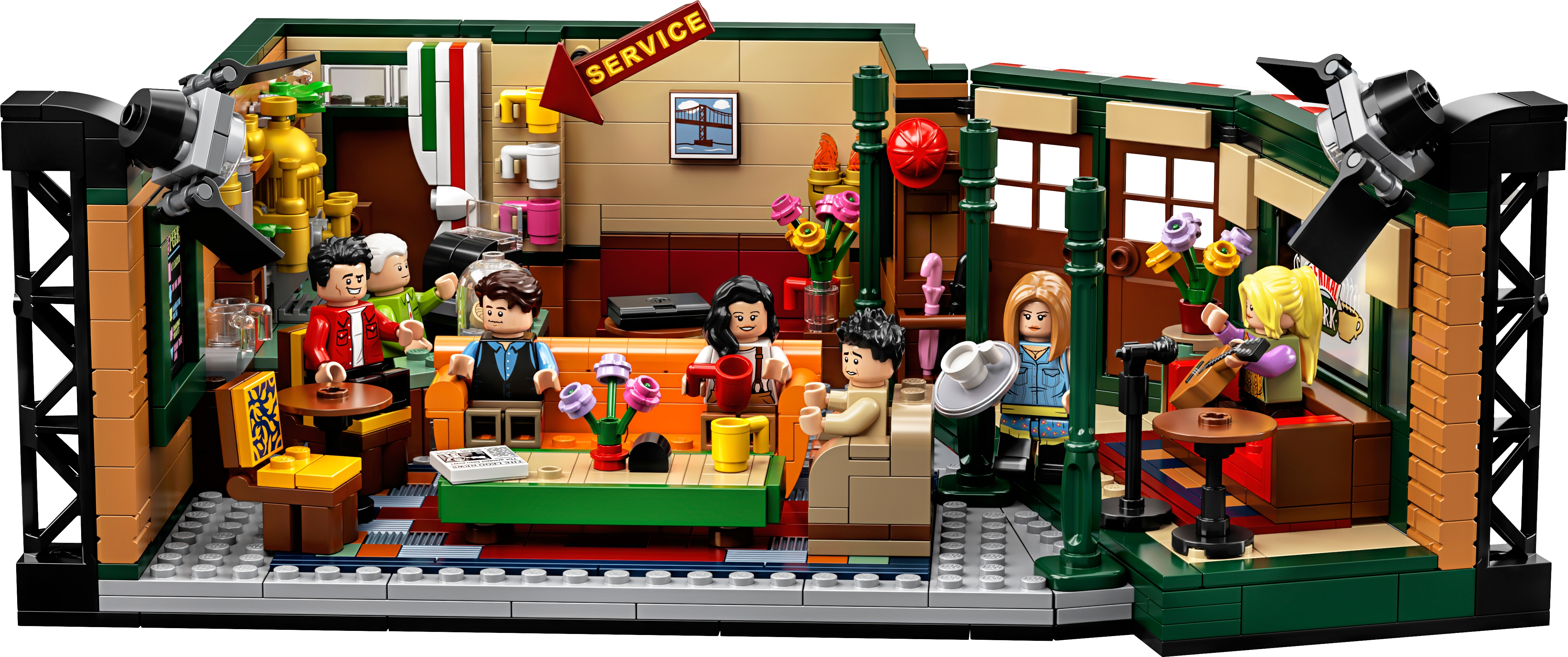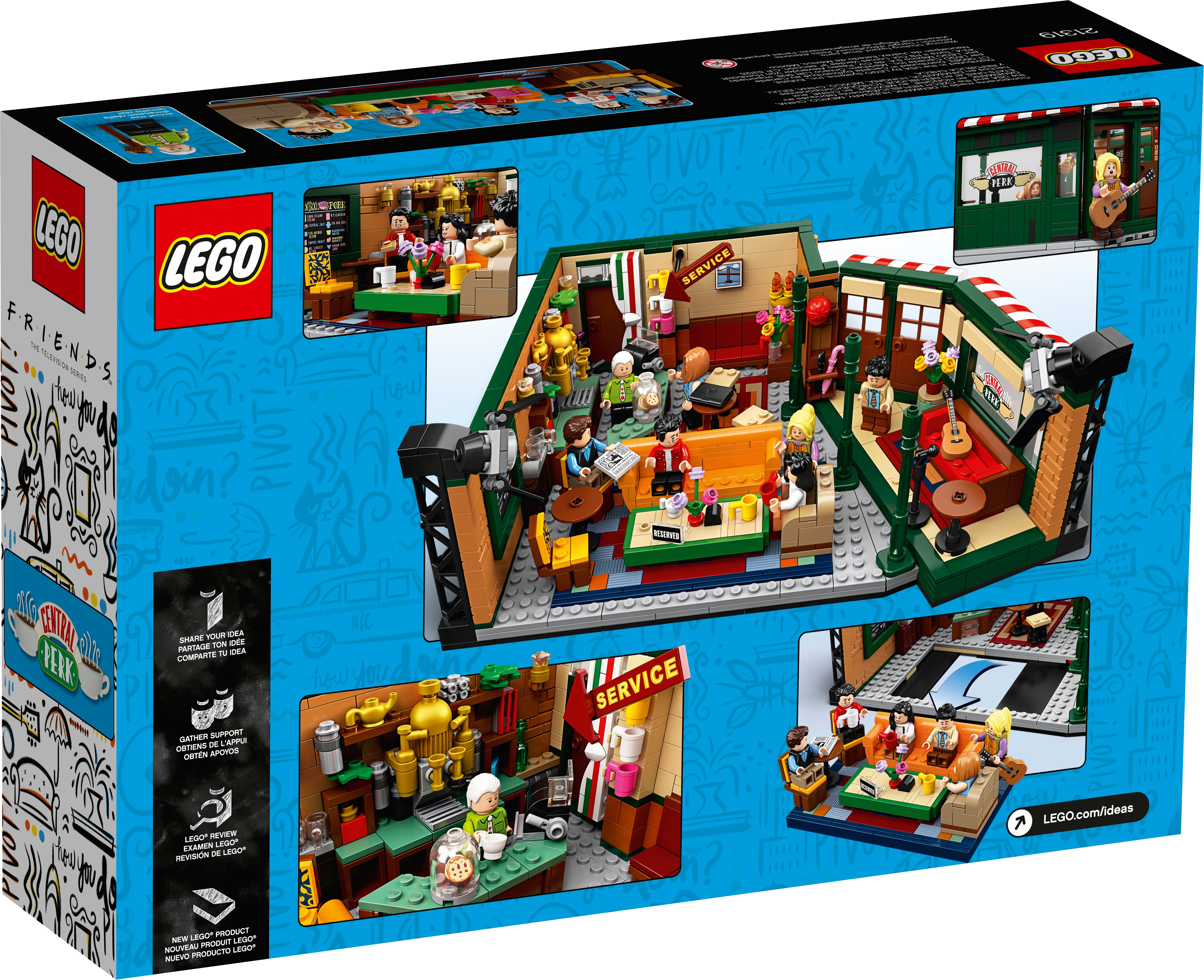 Celebrate the 25th anniversary of Friends, the legendary American TV sitcom, with this highly collectible LEGO® Ideas 21319 CENTRAL PERK set! This wonderful LEGO recreation of the café TV studio set is packed with authentic details, making it a must-have Friends memorabilia item for fans. The iconic seating area with a couch, armchair and 2 chairs for the friends is removable for easy play. And check out the stage where Phoebe performed her songs on guitar (and where Ross once played his keyboard and everyone except Phoebe thought he was terrible). The 7 new-for-September-2019 LEGO toy minifigures of Ross, Rachel, Chandler, Monica, Joey, Phoebe and CENTRAL PERK’s long-suffering manager Gunther each come with accessories to role-play famously hilarious scenes. An ideal Friends-themed gift for your own friends and family who love the TV show, this hot toy is great for play and will grab attention when displayed in any room. This LEGO® Ideas set includes 7 new-for-September-2019 minifigures: Ross Geller, Rachel Green, Chandler Bing, Monica Geller, Joey Tribbiani, Phoebe Buffay and Gunther. The CENTRAL PERK café construction toy features the iconic main seating area including a sofa, armchair, 2 chairs and a table; service area with a brick-built coffee machine, service counter, cash register, cookie jar with 2 cookie elements, menu board element and other authentic items; a stage for musical performances with a sofa; extra seats and tables; 3 pillar elements in a new-for-September-2019 green color; umbrella stand with 2 umbrella elements; window with ‘CENTRAL PERK’ logo decoration; entrance doors; and 2 brick-built TV studio light rigs with translucent light-style elements. The seating area for the show’s star characters is removable for easy play. The minifigures each have their own items inspired by the TV series, including Ross’s brick-built keyboard and the following accessory elements: Rachel’s tray and coffee cup, Monica’s muffin, Joey’s pizza box, pizza slice and ‘man bag’, Chandler’s laptop, Phoebe’s guitar and Gunther’s broom. Other accessory elements in this café playset include a newspaper, 15 coffee cups and a ‘Reserved’ sign, plus 3 vases and buildable flowers. This Friends memorabilia LEGO® building toy includes 1,079 pieces. This LEGO® Ideas set comes with a booklet with building instructions and information about this awesome set’s fan creator and LEGO designer. Build and display this Friends collectible construction toy or recreate your favorite scenes from the classic American sitcom. This Friends-themed gift toy measures over 4” (11cm) high, 11” (29cm) wide and 8” (22cm) deep and will make an eye-catching centerpiece in any room.