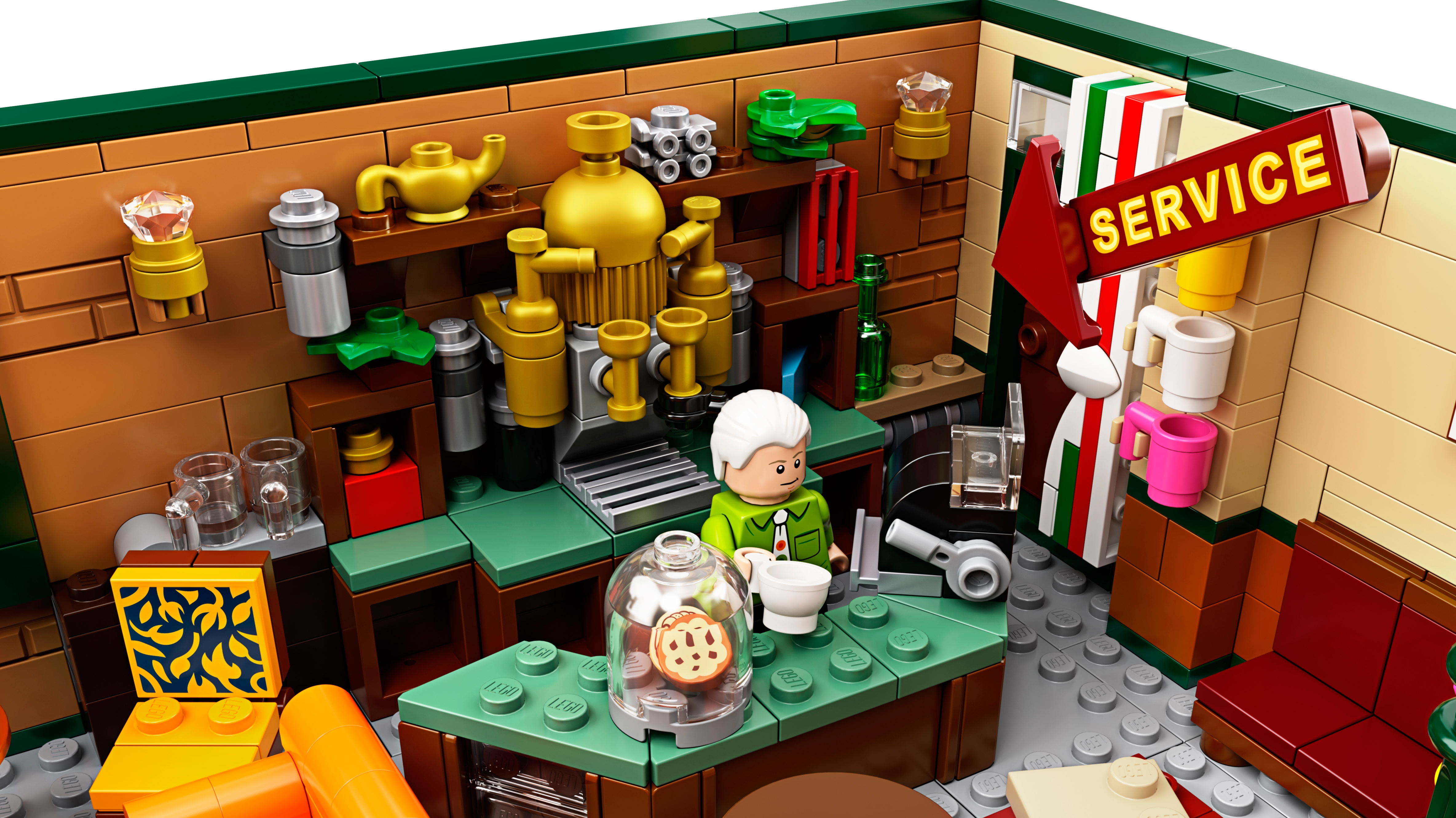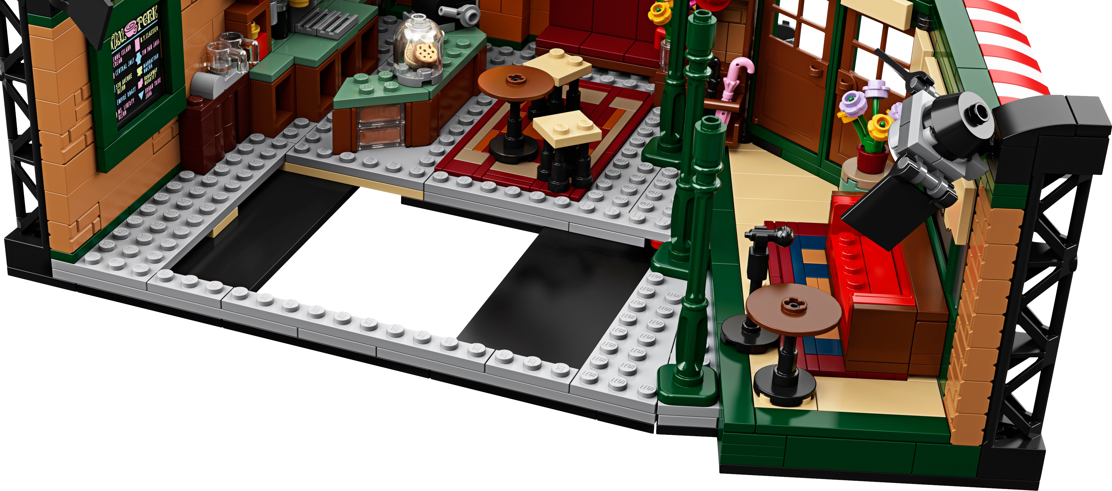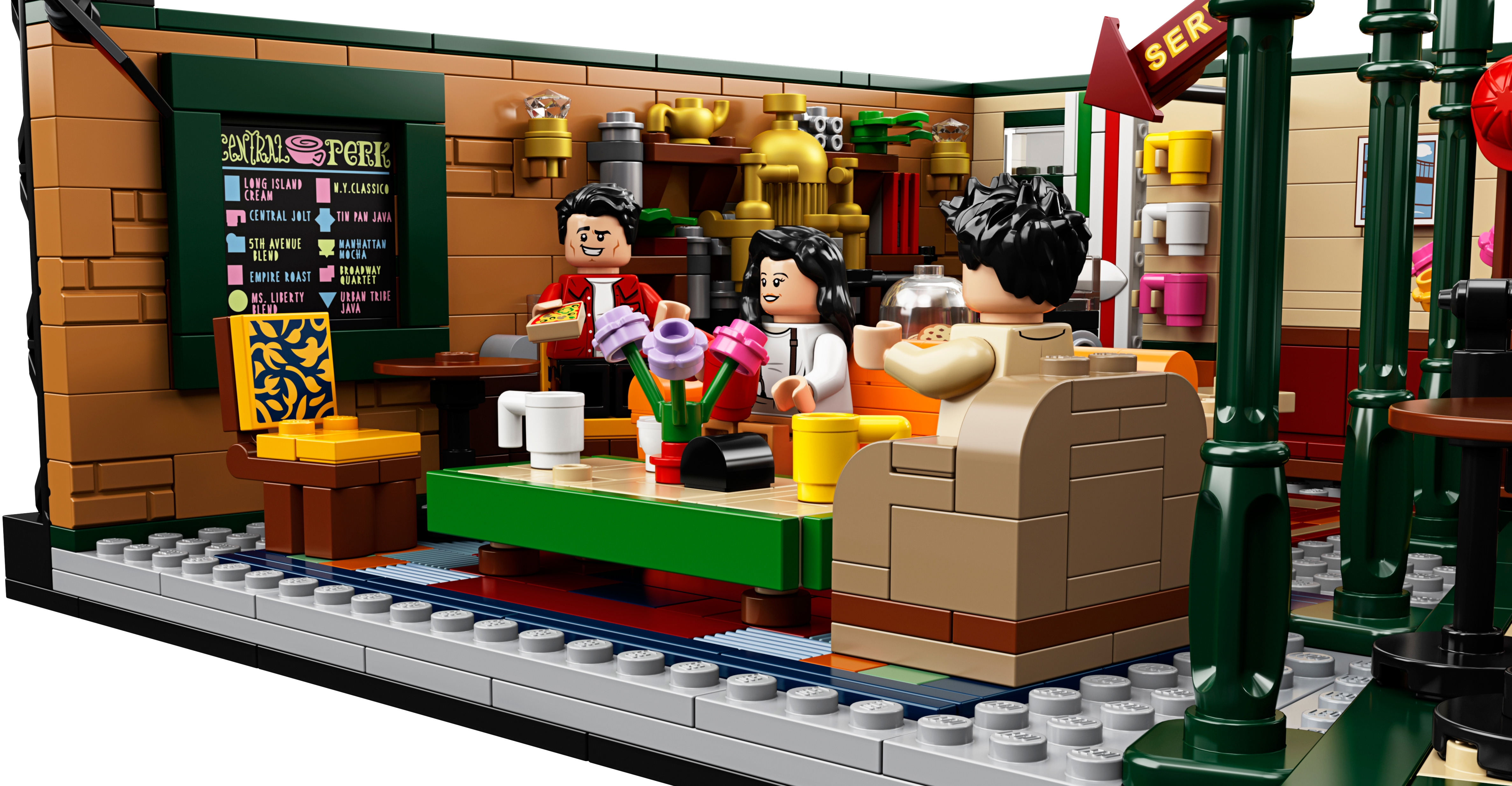 Celebrate the 25th anniversary of Friends, the legendary American TV sitcom, with this highly collectible LEGO® Ideas 21319 CENTRAL PERK set! This wonderful LEGO recreation of the café TV studio set is packed with authentic details, making it a must-have Friends memorabilia item for fans. The iconic seating area with a couch, armchair and 2 chairs for the friends is removable for easy play. And check out the stage where Phoebe performed her songs on guitar (and where Ross once played his keyboard and everyone except Phoebe thought he was terrible). The 7 new-for-September-2019 LEGO toy minifigures of Ross, Rachel, Chandler, Monica, Joey, Phoebe and CENTRAL PERK’s long-suffering manager Gunther each come with accessories to role-play famously hilarious scenes. An ideal Friends-themed gift for your own friends and family who love the TV show, this hot toy is great for play and will grab attention when displayed in any room. This LEGO® Ideas set includes 7 new-for-September-2019 minifigures: Ross Geller, Rachel Green, Chandler Bing, Monica Geller, Joey Tribbiani, Phoebe Buffay and Gunther. The CENTRAL PERK café construction toy features the iconic main seating area including a sofa, armchair, 2 chairs and a table; service area with a brick-built coffee machine, service counter, cash register, cookie jar with 2 cookie elements, menu board element and other authentic items; a stage for musical performances with a sofa; extra seats and tables; 3 pillar elements in a new-for-September-2019 green color; umbrella stand with 2 umbrella elements; window with ‘CENTRAL PERK’ logo decoration; entrance doors; and 2 brick-built TV studio light rigs with translucent light-style elements. The seating area for the show’s star characters is removable for easy play. The minifigures each have their own items inspired by the TV series, including Ross’s brick-built keyboard and the following accessory elements: Rachel’s tray and coffee cup, Monica’s muffin, Joey’s pizza box, pizza slice and ‘man bag’, Chandler’s laptop, Phoebe’s guitar and Gunther’s broom. Other accessory elements in this café playset include a newspaper, 15 coffee cups and a ‘Reserved’ sign, plus 3 vases and buildable flowers. This Friends memorabilia LEGO® building toy includes 1,079 pieces. This LEGO® Ideas set comes with a booklet with building instructions and information about this awesome set’s fan creator and LEGO designer. Build and display this Friends collectible construction toy or recreate your favorite scenes from the classic American sitcom. This Friends-themed gift toy measures over 4” (11cm) high, 11” (29cm) wide and 8” (22cm) deep and will make an eye-catching centerpiece in any room.