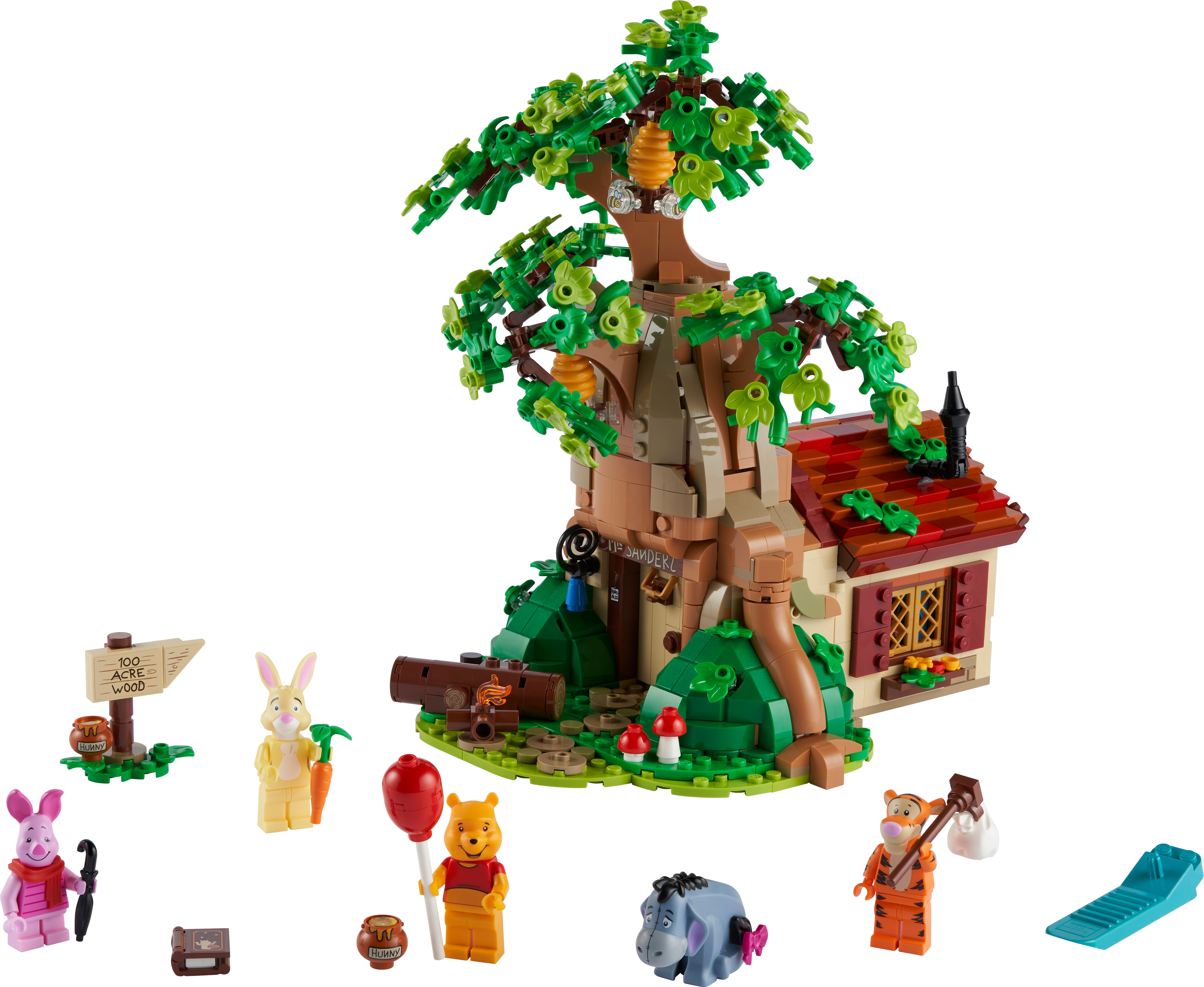 The model comes with Disney’s Winnie the Pooh, Piglet, Tigger and Rabbit minifigures, plus an Eeyore LEGO figure. The friends each have an accessory, including Winnie the Pooh’s buildable red balloon, to recreate classic scenes.