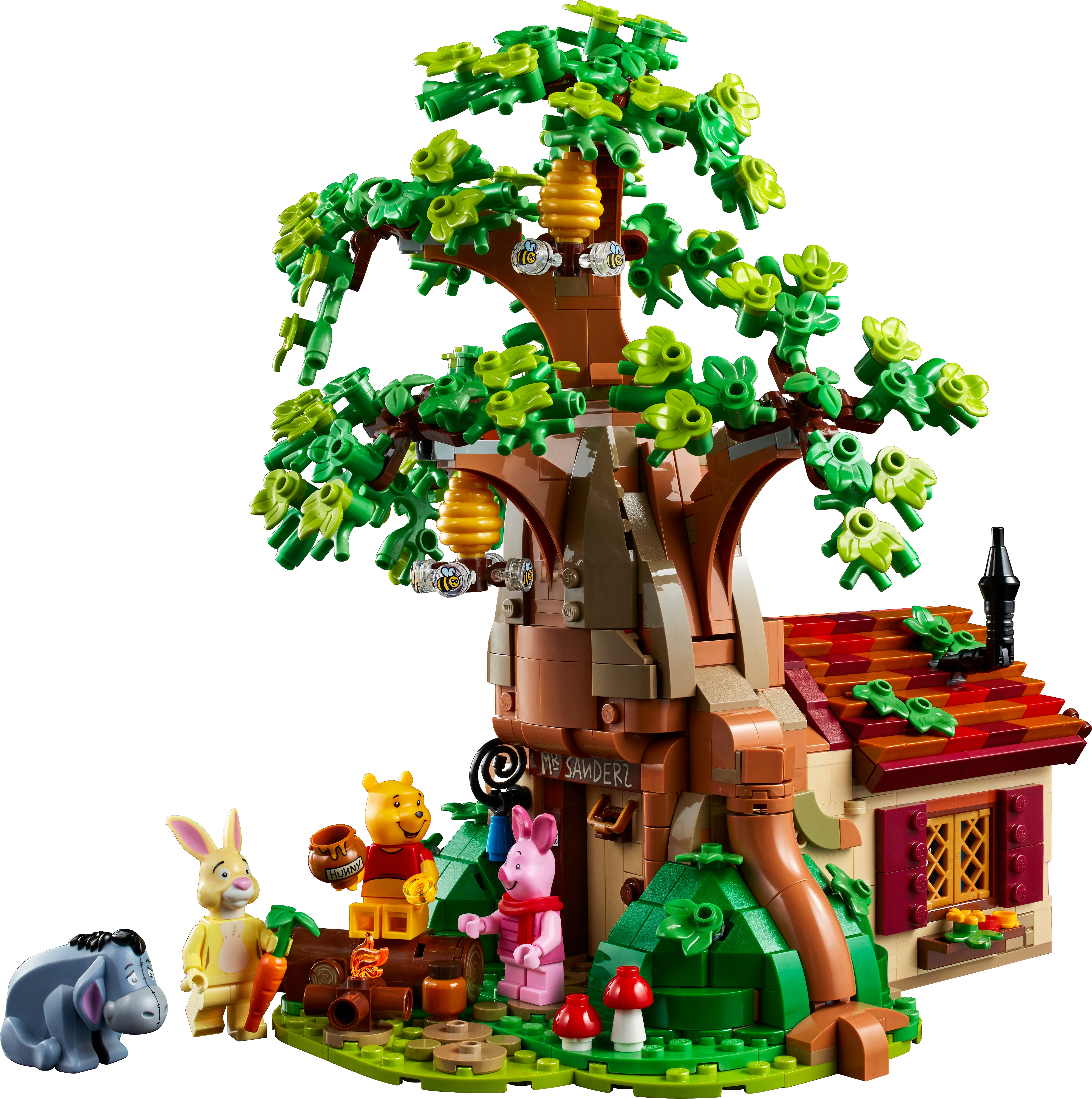 Take time out and rekindle joyful childhood memories with this LEGO® Ideas set (21326) featuring Disney’s Winnie the Pooh and a delightful LEGO brick recreation of Pooh Bear’s house under a big oak tree in Hundred Acre Wood. Great to build alone or with family, the house opens at the back for easy access to the authentic details inside, including Pooh’s buildable armchair, Pooh-Coo clock, Poohsticks, honey pot elements and much more. You can also create the effect of bees flying around beehives in the branches of the tree, like in the stories.