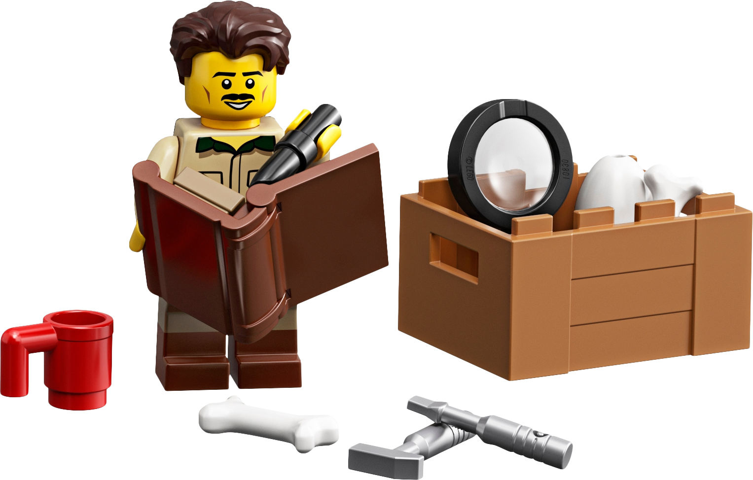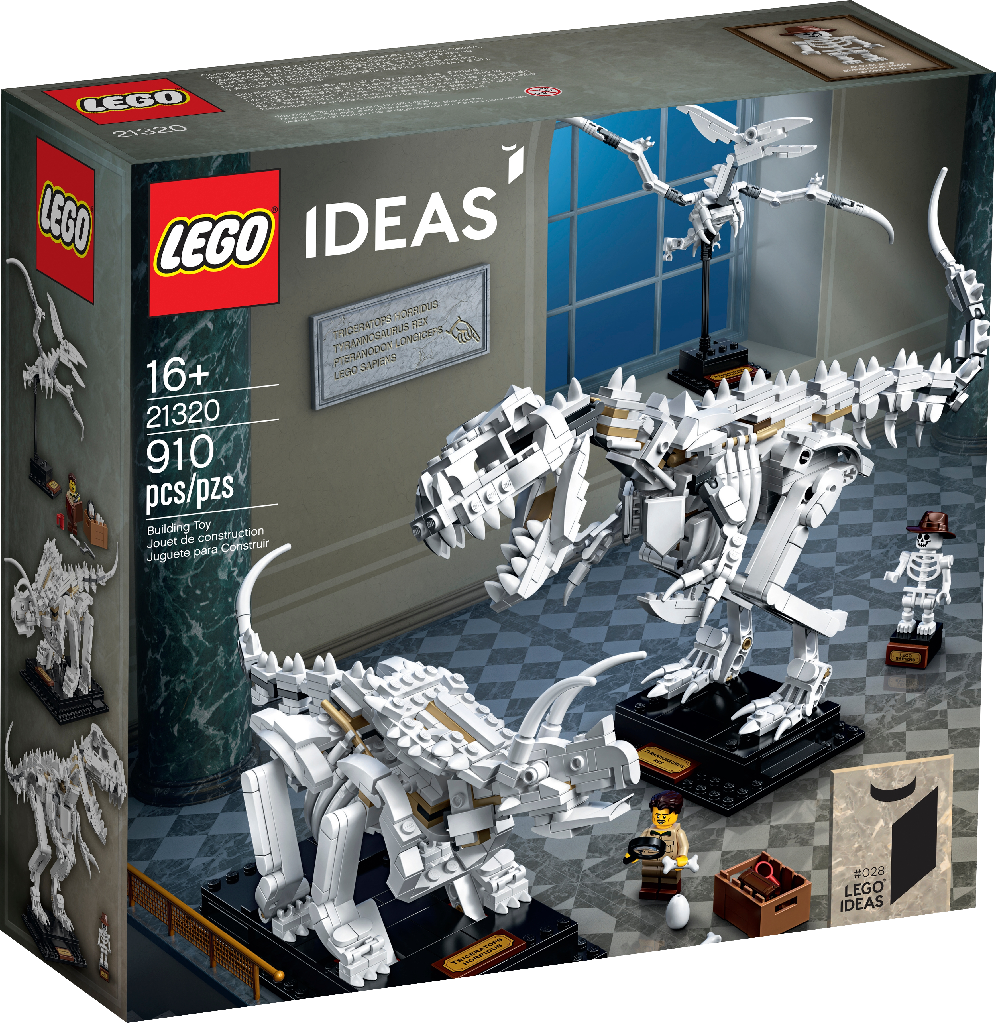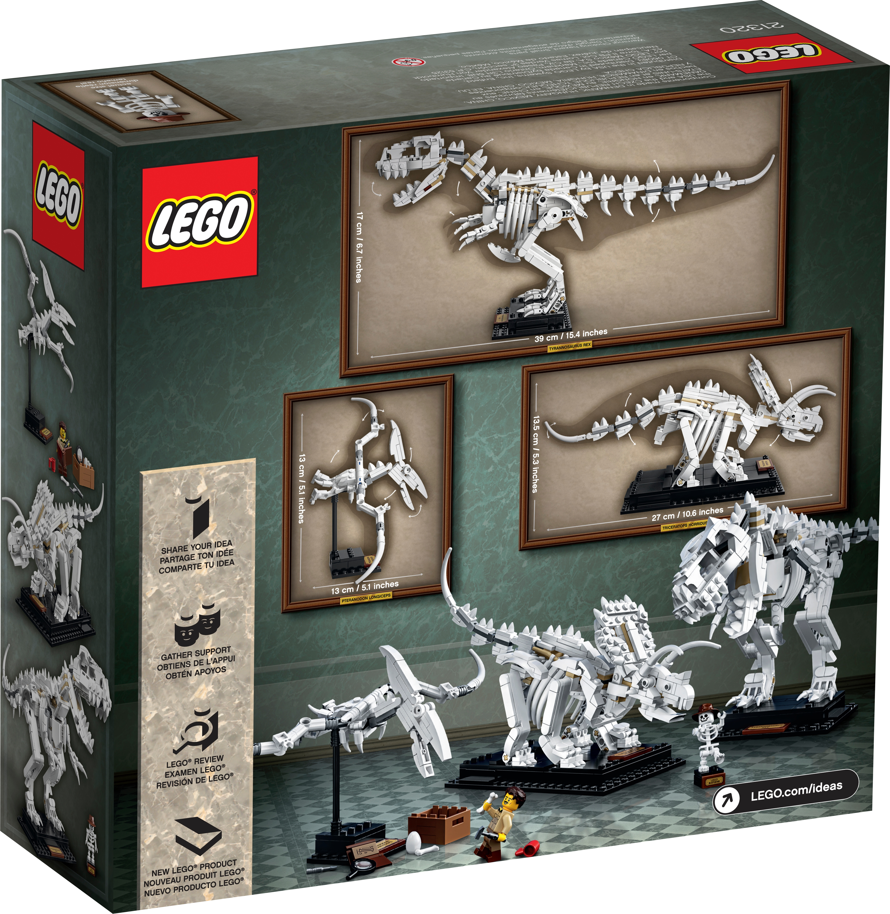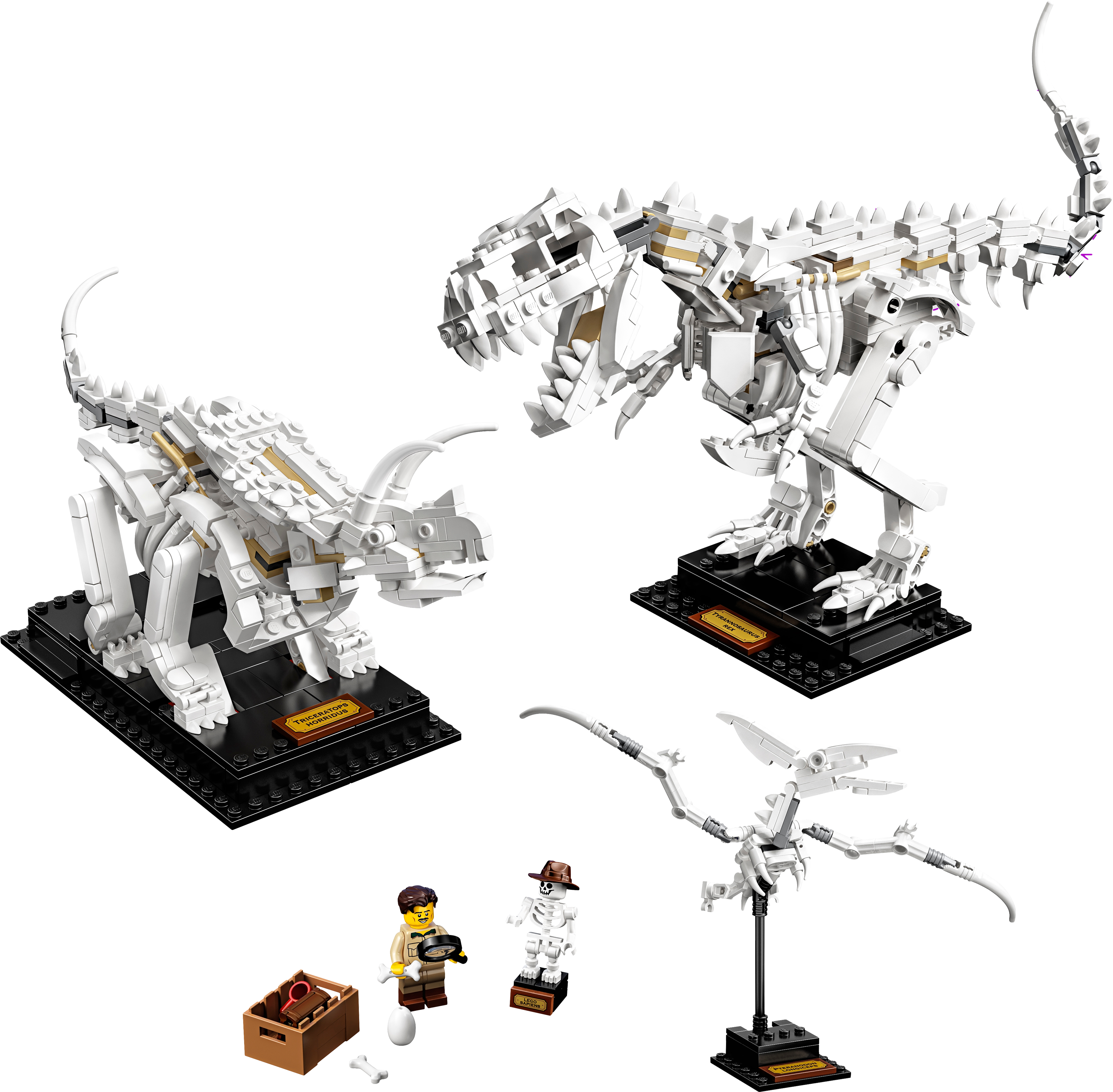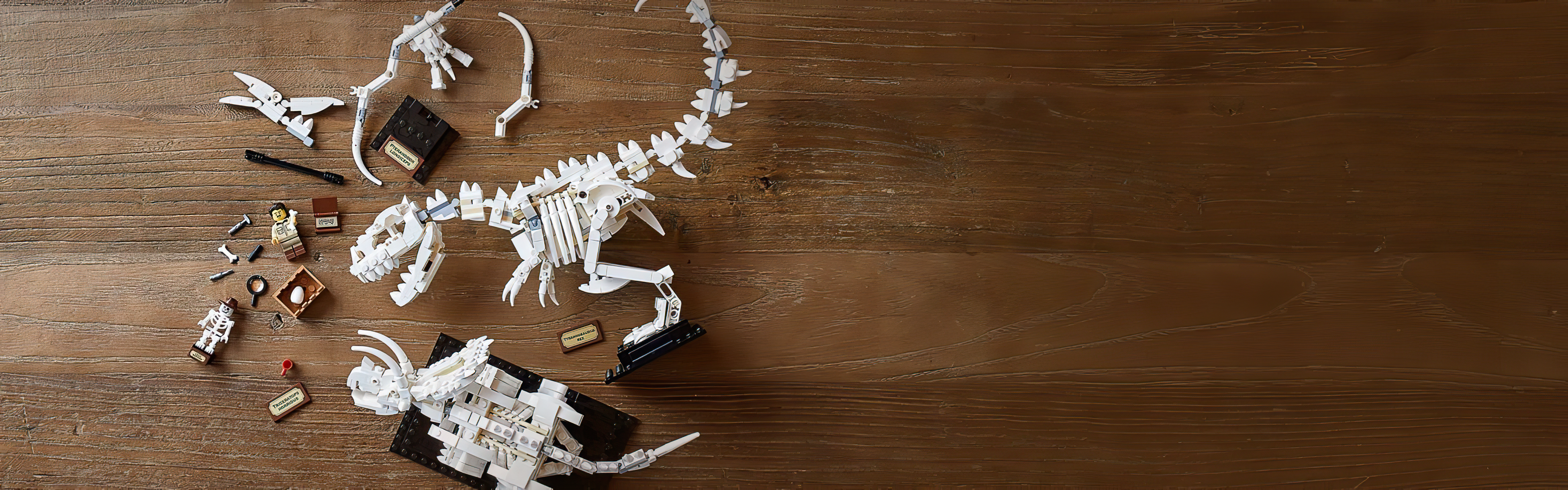 Learn about life on Earth millions of years ago and create a stunning centerpiece with this collectible LEGO® Ideas 21320 Dinosaur Fossils toy building kit for adults. This 910-piece set offers an immersive, creative building experience for natural history enthusiasts who will appreciate the authentic details of the 2 dinosaur skeleton models (Tyrannosaurus rex and Triceratops) and the pterosaur reptile (Pteranodon) skeleton toy. The models are built to 1:32 scale, can be adjusted into lifelike poses and each one comes with its own stand so they can be placed alongside the included sapiens skeleton figure for a museum-style display. To complete the set, there’s also a paleontologist toy minifigure with various accessories for imaginative role-play fun. All in all, this archaeology toy makes a great dinosaur gift for adults to build solo or to share their passion for natural history with family and friends. A wonderfully detailed dinosaur fossils set featuring buildable, posable, 1:32 scale toy models of Tyrannosaurus rex, Triceratops and Pteranodon skeletons, each with display stands to create LEGO® style natural history museum exhibits. Also includes a sapiens skeleton figure with a display stand, and a paleontologist toy minifigure with a buildable crate, plus dinosaur egg, bone, hat and book elements for creative role-play. This collectible LEGO® Ideas dinosaur toy set includes 910 pieces for an immersive, rewarding building experience. New to LEGO® building? Don’t worry. This paleontologist kit comes with a booklet featuring easy-to-follow building instructions, fascinating facts about the Tyrannosaurus rex, Triceratops and Pteranodon, and information about the set's fan creator and LEGO designer. Makes a wonderful paleontologist gift toy for LEGO® builders aged 16+ and anyone with a passion for natural history and dinosaurs. The pterosaur and dinosaur skeleton toy models make an eye-catching display. The T. rex toy skeleton is the biggest of the 3, measuring over 7” (20cm) tall and 15” (40cm) long.