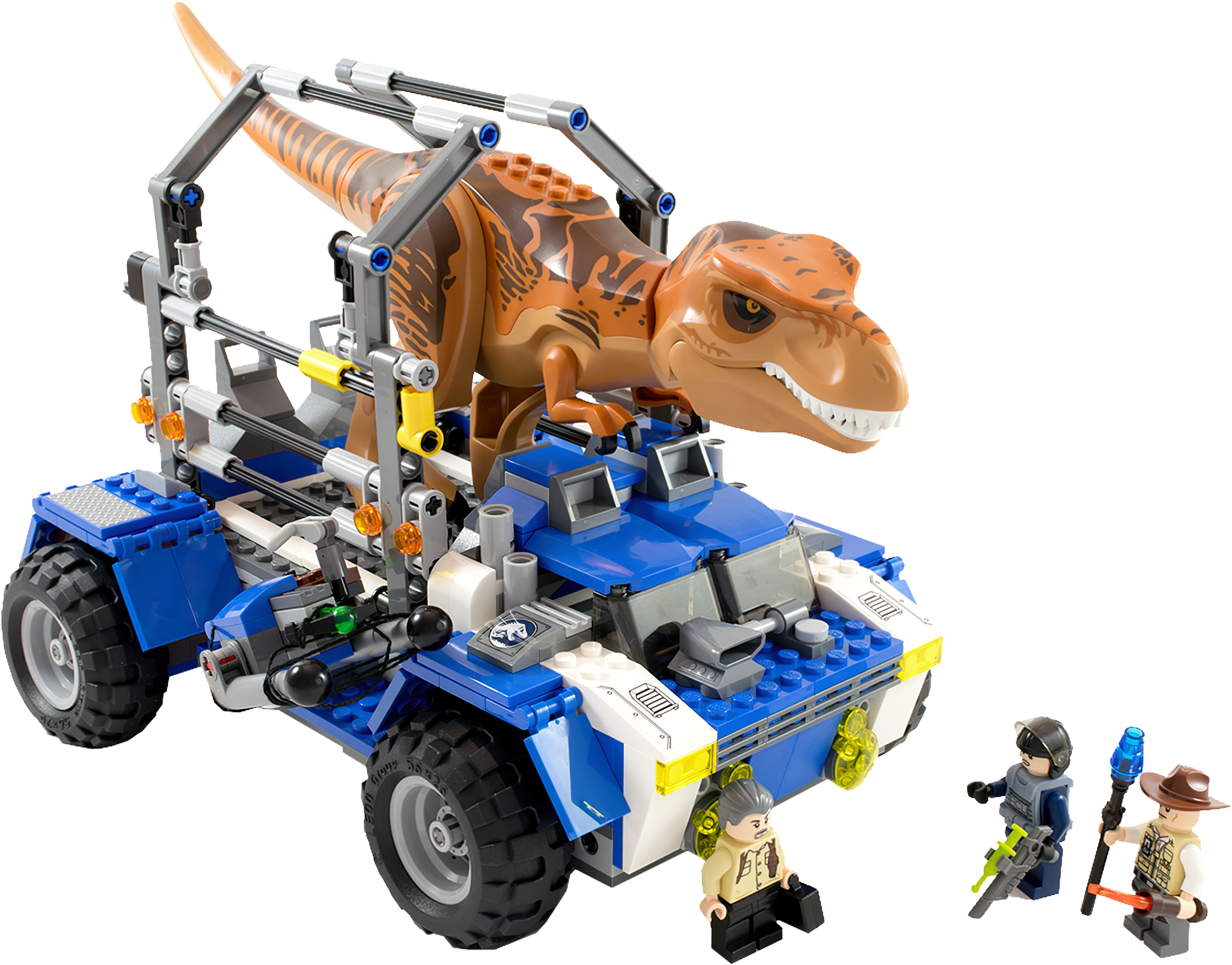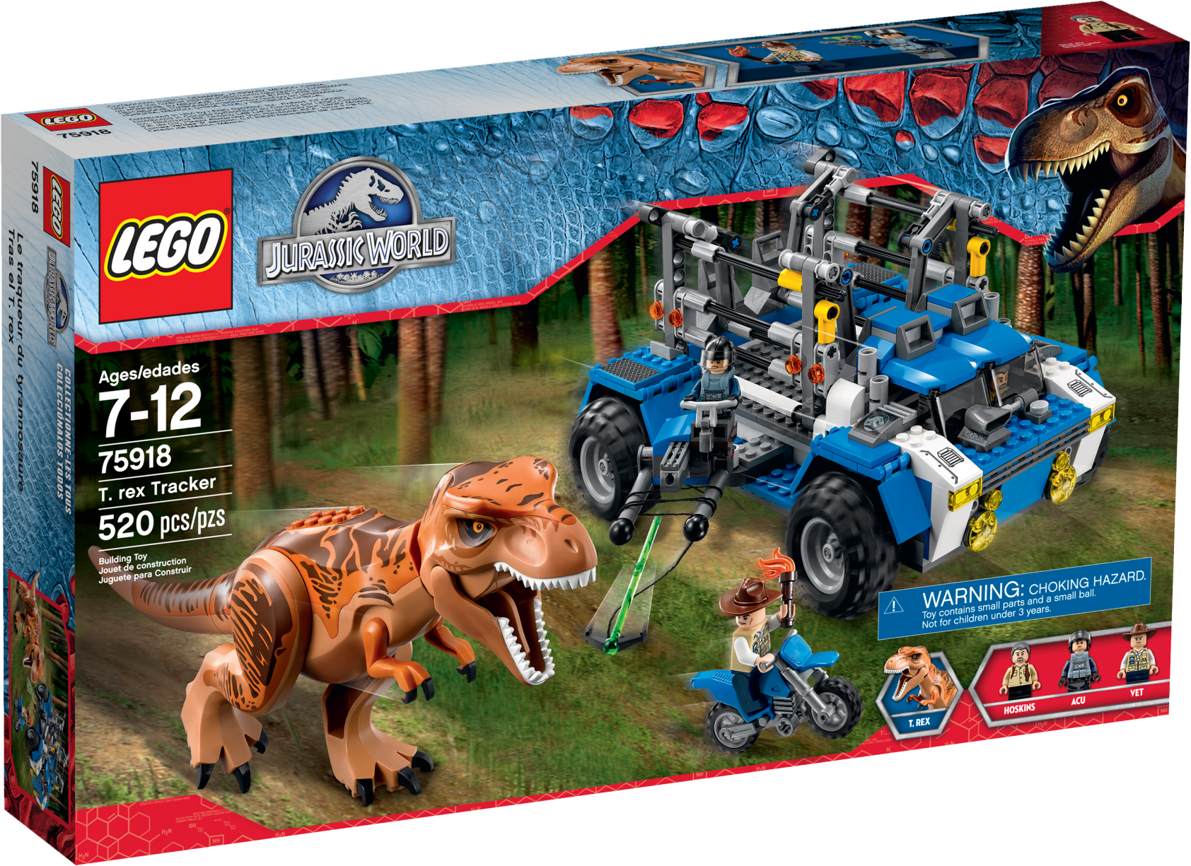 Take down the T. rex with the trap shooter! The chase is on! A mighty T. rex has broken loose and it must be captured before it harms anyone. Team up with the ACU troopers in the T. rex Tracker to pursue the ferocious creature. Drive the motorcycle to distract the T. rex, swerving clear of its powerful jaws. Meanwhile, lay out the dino cage as a trap and prepare to fire the mobile research module’s harpoon-style trap shooter. You’ve only got one shot to take down the beast, so make it count! Includes 3 minifigures with assorted weapons and accessories: an ACU trooper, Hoskins and a vet. Includes 3 minifigures with assorted weapons and accessories: an ACU trooper, Hoskins and a vet T. rex Tracker features an opening cockpit for a minifigure, wheels with rubber tires, dinosaur cage and a harpoon-style trap shooter T. rex features posable arms, legs, neck and snapping jaws Motorbike also included Weapons include the vet’s shock rod and the ACU troopers’ tranquilizer gun Accessory elements include the vet's torch with flame and Hoskins’ briefcase Chase the T. rex in the awesome T. rex Tracker Stop the dino eating the motorcyclist for dinner! Stun the marauding beast with the tranquilizer gun Take your best shot with the harpoon-style trap shooter Create your own thrilling Jurassic World action scenes T. rex Tracker measures over 6” (16cm) high, 8” (22cm) long and 3” (10cm) wide Motorbike measures over 1” (3cm) high, 2” (6cm) long and under 1” (2cm) wide T. rex stands over 5” (15cm) tall