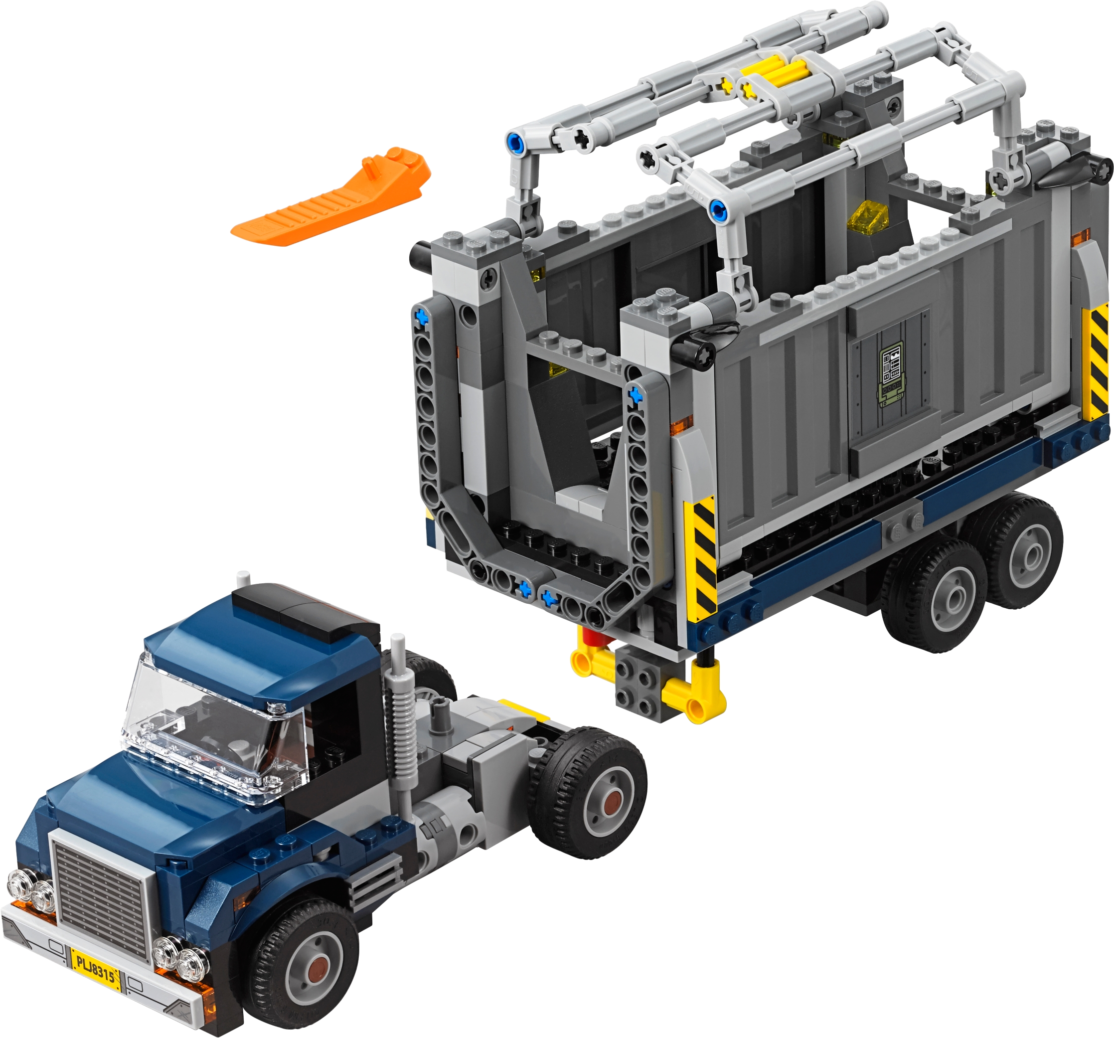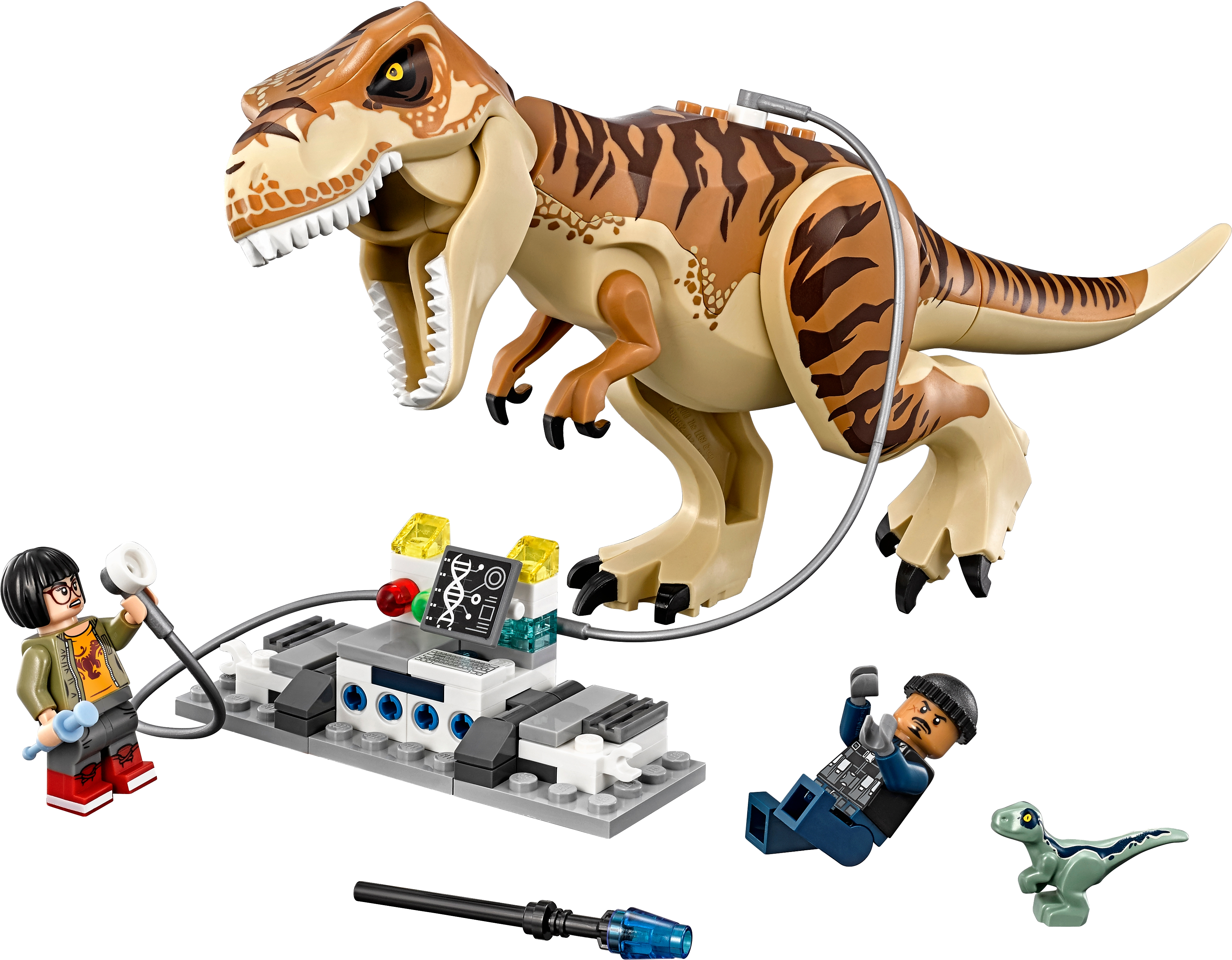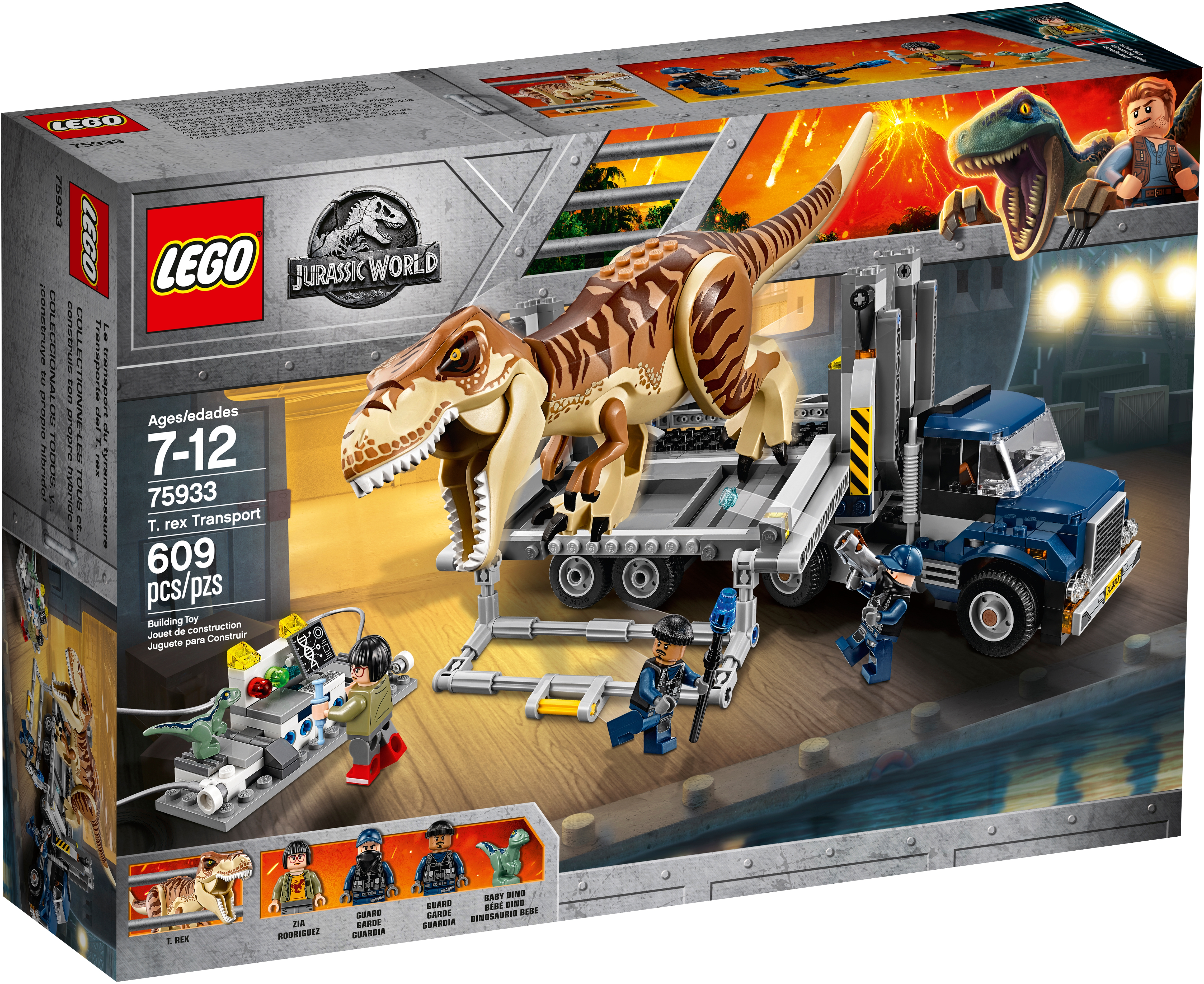 Track the Tyrannosaurus Rex in this big-action play set scene inspired by Jurassic World™ and return it to the transporter, featuring a single-seater truck, detachable container with opening and lockable side panels, and a mobile laboratory unit. This T. rex toy includes 3 minifigures and 2 dinosaur figures. Includes 3 minifigures: Zia and 2 guards, plus 2 dinosaur figures. Features a single-seater truck and a detachable trailer with a containment unit that has opening and lockable side panels, landing gear, plus a mobile medical unit and monitoring system with 2 transfusion leads. T. rex features posable limbs, head and snapping jaws. Weapons include a gun stud shooter and a shock prod. Unlock the container's side panels and stage a T. rex escape! Remove the mobile laboratory unit from the transporter and attach the leads to the dinosaurs to perform an emergency blood transfusion! This T. rex toy is suitable for ages 7-12. Truck measures over 3” (8cm) high, 5” (14cm) long and 3” (8cm) wide. Trailer with containment unit measures over 6” (16cm) high, 6” (17cm) long and 3” (9cm) wide. Tyrannosaurus Rex stands over 6” (17cm) high.