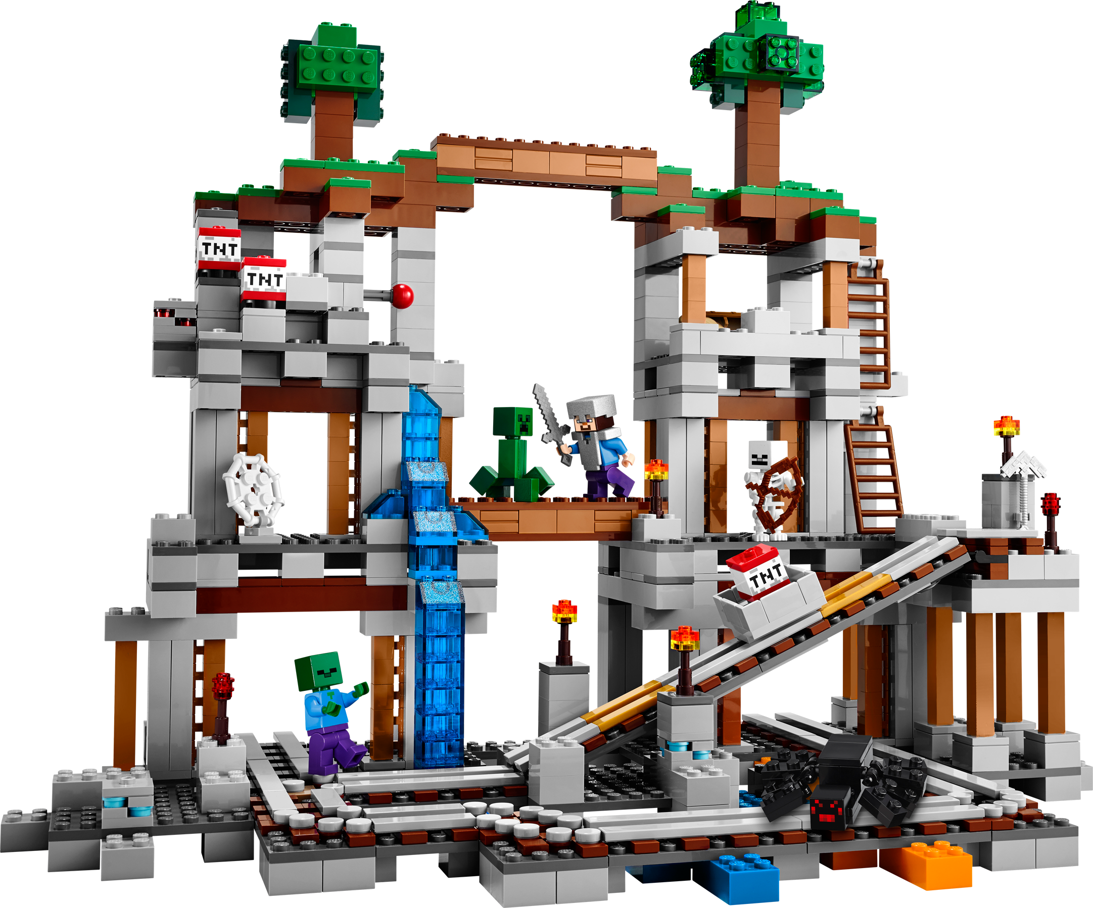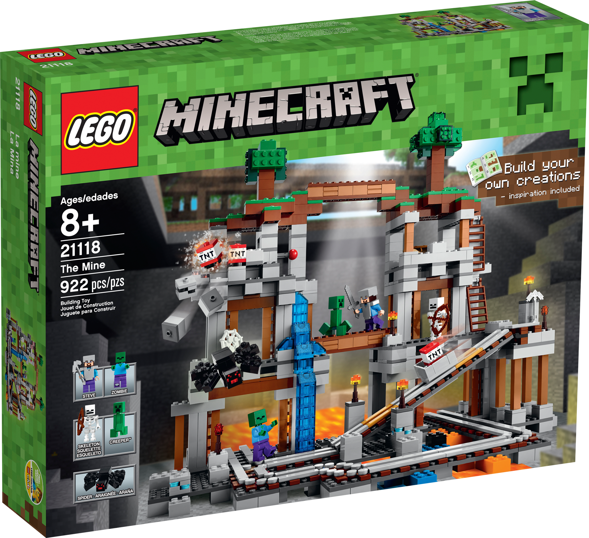 Jump aboard the minecart and enter the darkness of The Mine! Enter The Mine at your own risk! You’ll need to don your iron armor for this dangerous expedition. Grab your iron pickaxe and venture into the darkness, keeping an eye out for hostile mobs that lurk deep in the mine. Plant the TNT and activate the explosion function to blast away the rock face. Then load up the precious ores, jump aboard the minecart and hurtle past the Creeper, zombie and skeleton, using the iron sword to keep them at bay until you’re safely above ground. All in a days work fora LEGO® Minecraft™ hero! Rebuild the set for more LEGO Minecraft creations. Includes a Steve minifigure with weapons and accessories, plus a skeleton, zombie, spider and a Creeper™. Includes a Steve minifigure with weapons and accessories, plus Creeper™, zombie, skeleton and a spider Features a huge minecart track, minecart, chest, TNT, rock face with explosion function, diamond, redstone and coal elements, torches and 2 trees Weapons include a sword and a bow Accessories include armor, helmet and a pickaxe Includes 926 assorted LEGO® pieces Ride on the awesome minecart track Blast away the rock face! Watch out for the hostile mobs! The perfect gift for fans of LEGO® building and Minecraft™ Rebuild for more LEGO® Minecraft™ creations Measures 12” (32cm) high, 15” (40cm) wide and 9” (25cm) deep Add other biomes in the series to create your own LEGO® Minecraft™ world
