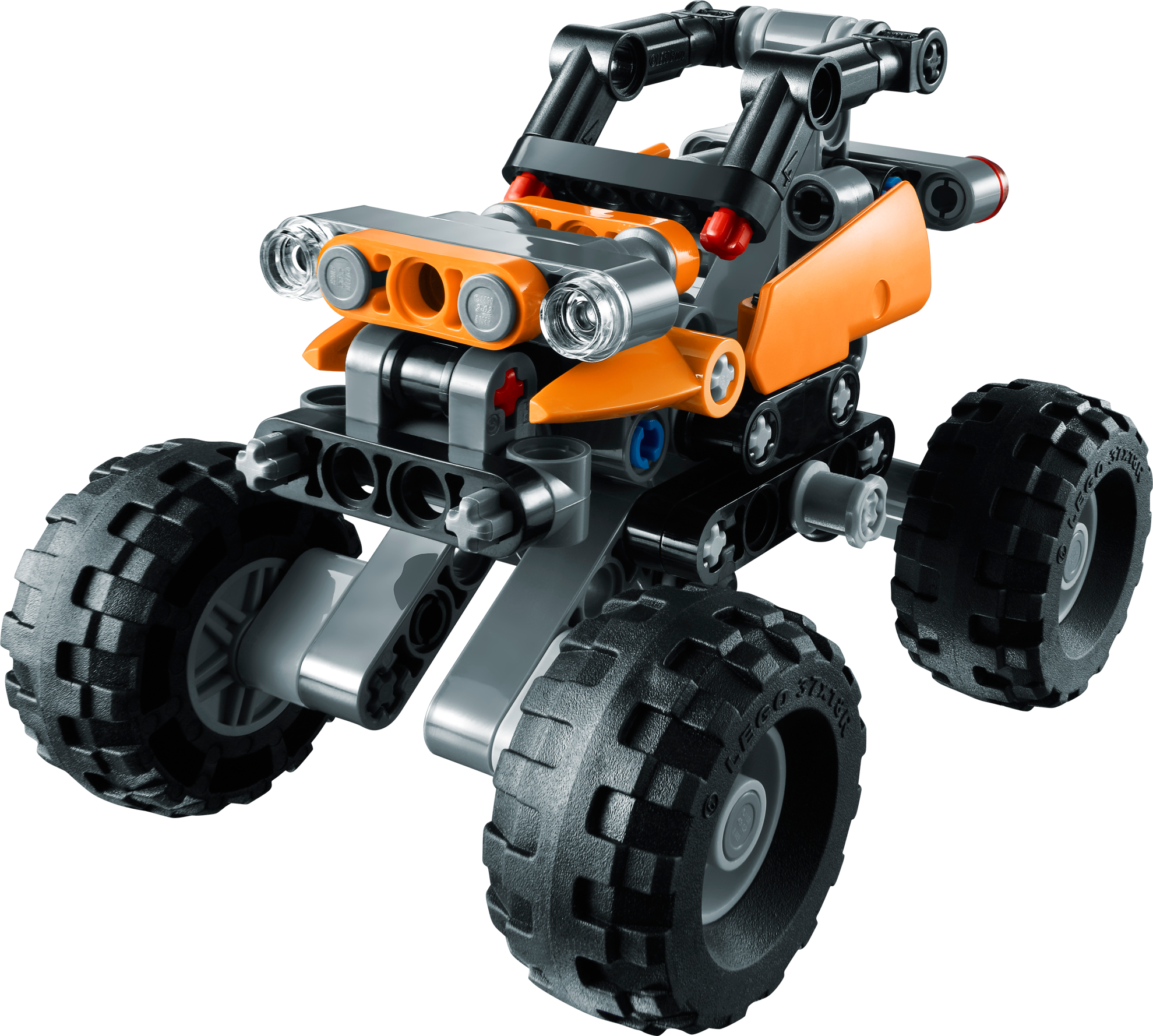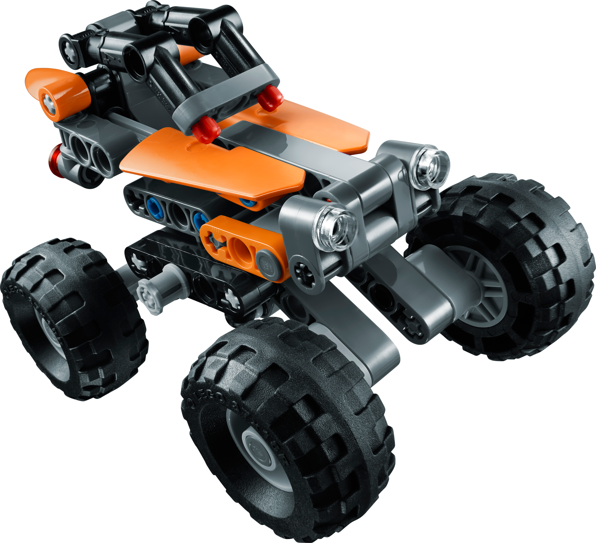 Tackle the roughest surfaces with the tough LEGO® Technic Mini Offroader! This 2-in-1 model features cool and realistic details, like extreme, independent 4-wheel suspension, big knobby tires and opening doors. You can even remove the top section and easily rebuild this great model into a rugged mini buggy and blast over the sand dunes!