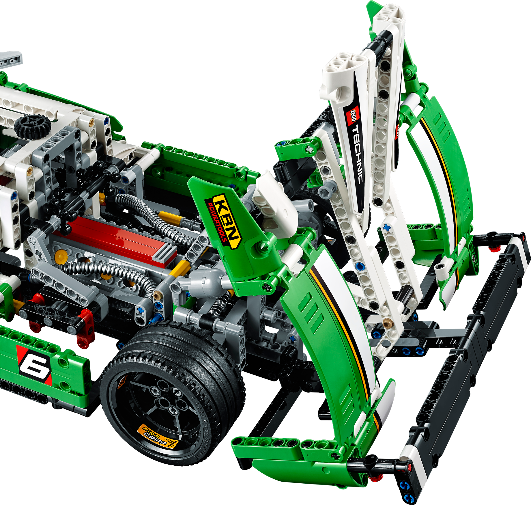 Scream around the circuit in the lightning-fast 24 Hours Race Car! This robust, immaculately detailed LEGO® Technic model has all the features of a real-life race car, including a detailed V8 engine with moving pistons, opening gull-wing doors, all-round independent suspension, working front steering, high fenders and an opening front trunk and engine hood. Put on your racing gloves and step on the gas! Upgrade with the 8293 Power Functions motor set (not supplied) and you have bright LED headlights plus motorized gull wing doors and engine cover. This 2-in-1 model rebuilds into a SUV Racer.