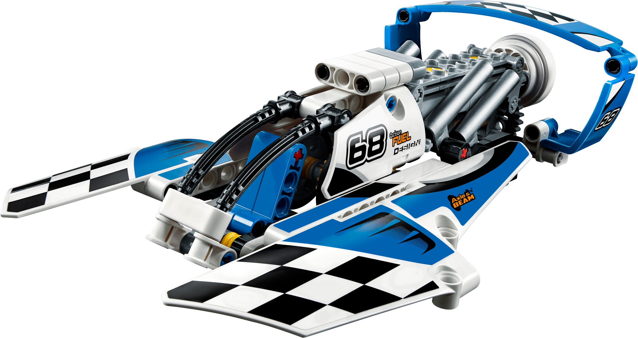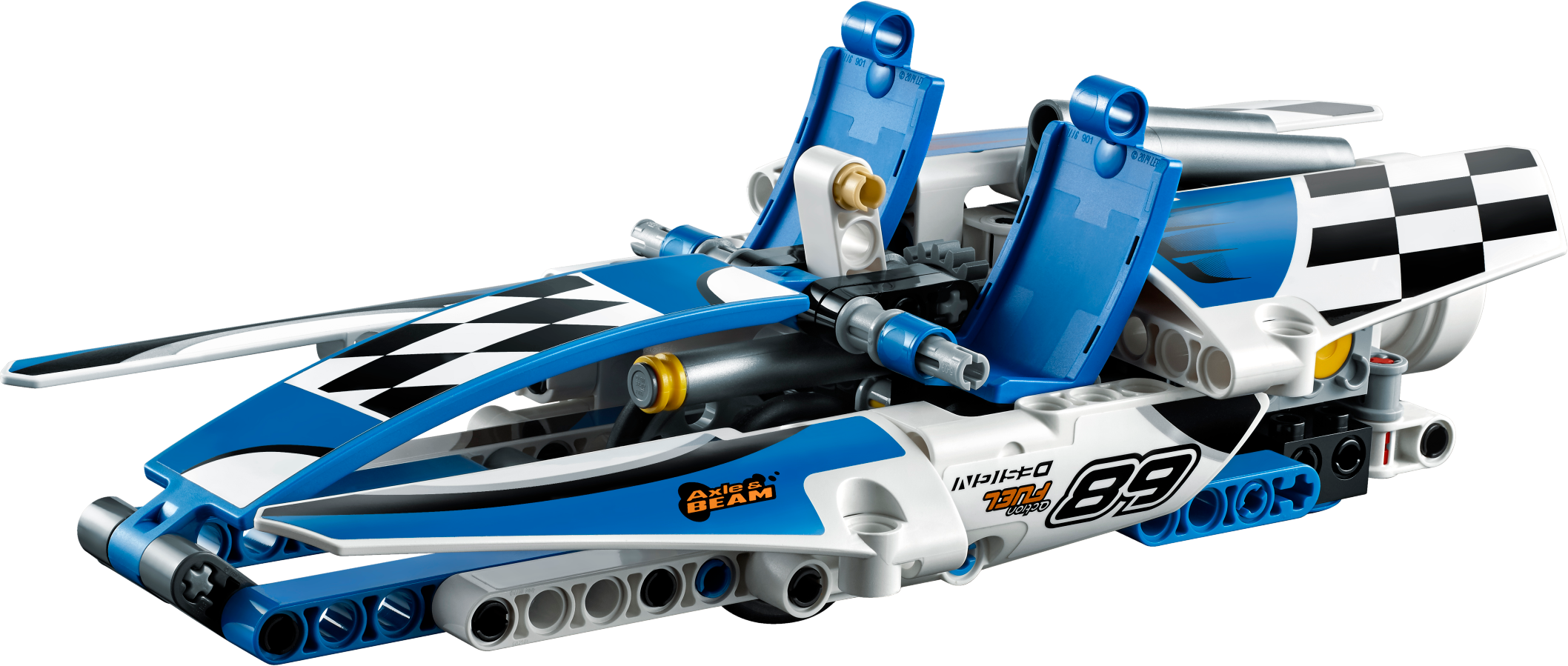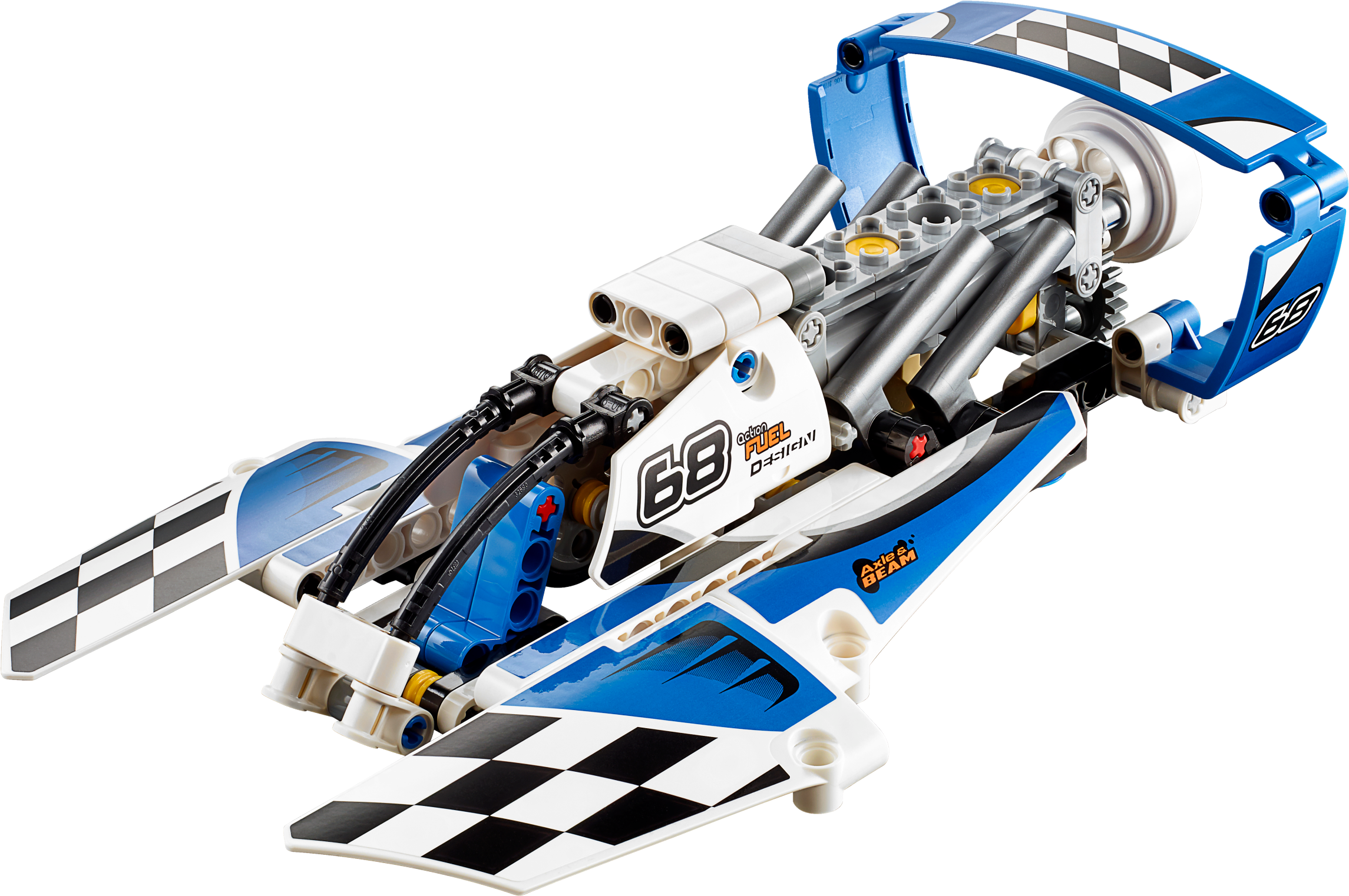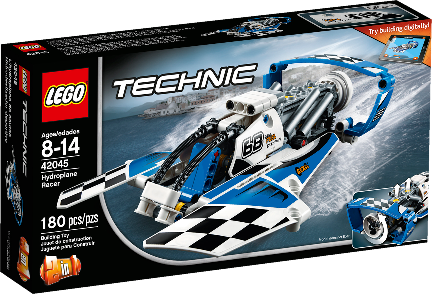 Thunder over the ocean with the Hydroplane Racer! Smash water speed records with this amazing, aerodynamic 2-in-1 model, featuring massive sponsons, large cockpit and a blue and white color scheme with sporty black-and-white checkered racing stickers. Maneuver this powerful machine to the starting line and see the propeller and engine pistons spring into action. Now get ready to race! When you feel like another building challenge, rebuild it into a high-speed Race Boat. Interactive, 3D Digital LEGO® Building Instructions app available online, for both models!Features a unique aerodynamic design with huge sponsons, large cockpit, detailed engine with moving pistons and a spinning propeller.Check out the blue and white color scheme with sporty black-and-white checkered racing stickers.Maneuver the Hydroplane Racer and see the engine and propeller spring to life.This LEGO Technic model is designed to provide an immersive and rewarding building experience.Appropriate for children aged 8 to 14.Interactive, 3D Digital LEGO Building Instructions app available online for both A and B models.2-in-1 model: rebuilds into a Race Boat.Hydroplane Racer measures over 2” (6cm) high, 9” (23cm) long and 5” (13cm) wide.Race Boat measures over 2” (6cm) high, 8” (21cm) long and 3” (10cm) wide.