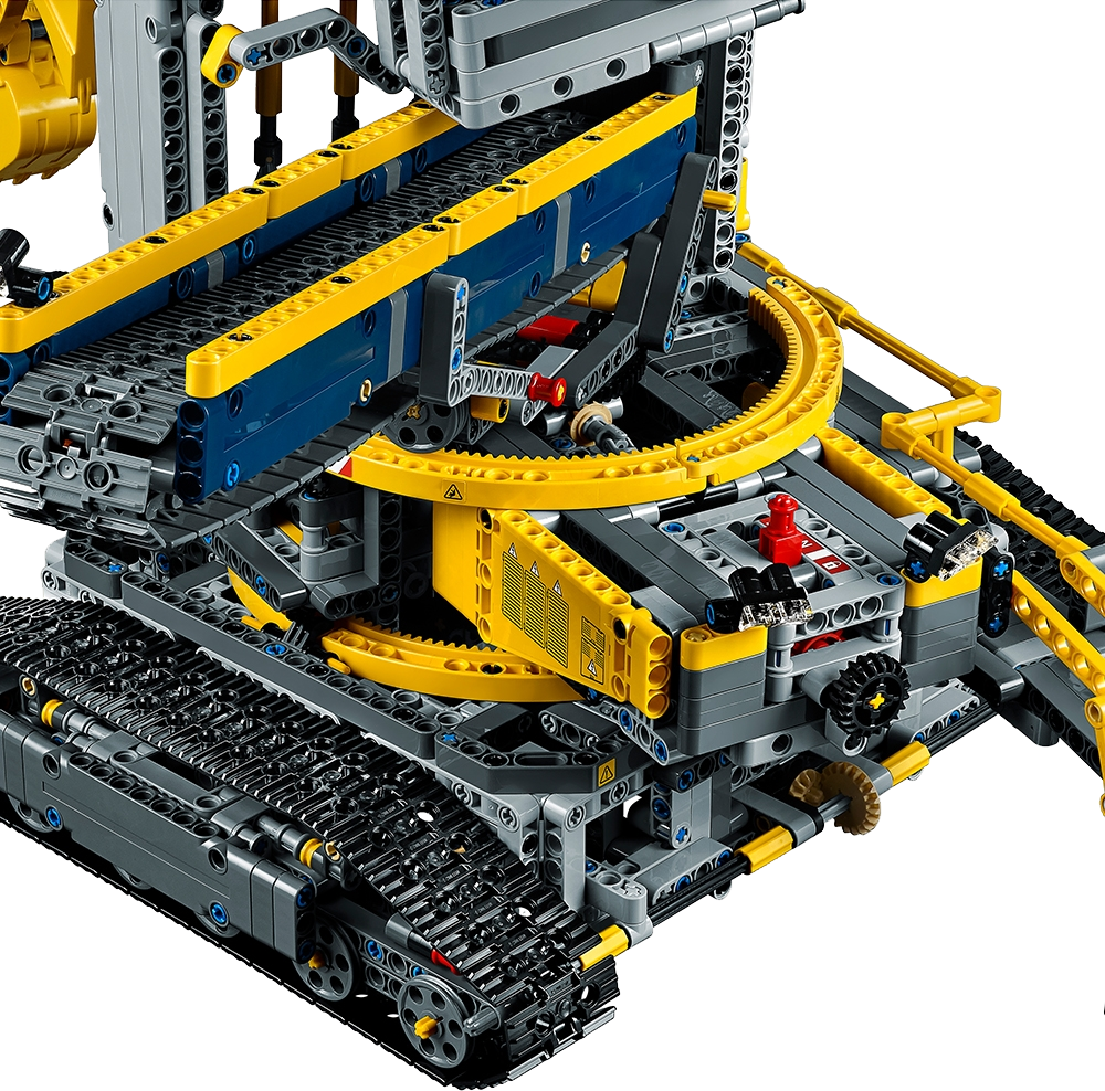 Features a LEGO® Power Functions motor for an array of motorised functions, including forward and reverse driving, rotating bucket wheel, moving conveyor belts and rotating superstructure, plus a working bucket wheel boom.