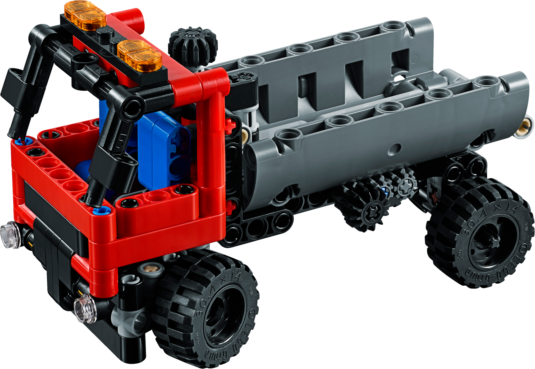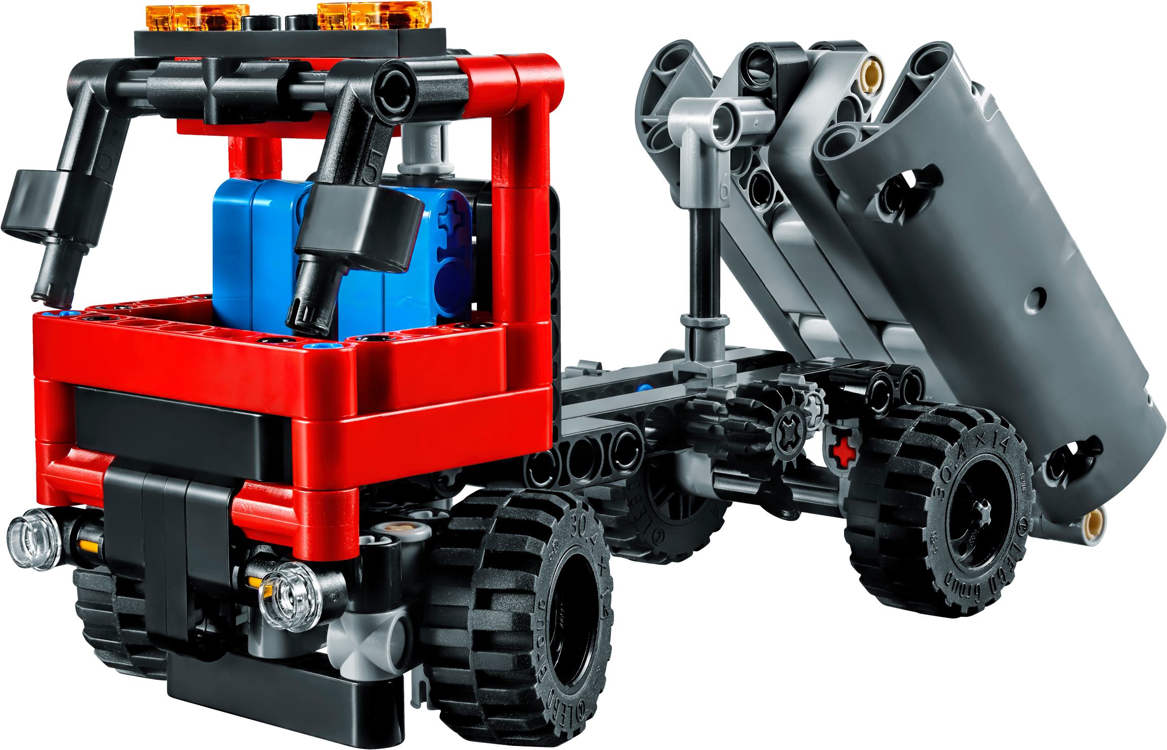 Enjoy a rewarding build-and-play experience with this authentic LEGO® Technic replica of a real-life hook loader, featuring a driver’s cab, heavy-duty tires, large warning light, working steering and hook loading functionality. Turn the crank to lift and lower the cargo container to and from the truck chassis. This 2-in-1 advanced building set can be rebuilt to create an Airport Fire Truck. Features working steering and hook loading functionality, driver’s cab, warning light, heavy-duty tires and a cargo container. Check out the red, gray and black color scheme. Activate the hook loading function to lift and lower the container. This LEGO® Technic advanced building set is designed to provide an immersive and rewarding building experience. Designed for indoor use only. 2-in-1 model: rebuilds into an Airport Fire Truck. Suitable for ages 7-14. Hook Loader measures over 3” (8cm) high, 5” (14cm) long and 2” (7cm) wide. Airport Fire Truck measures over 3” (8cm) high, 6” (16cm) long and 2” (7cm) wide.