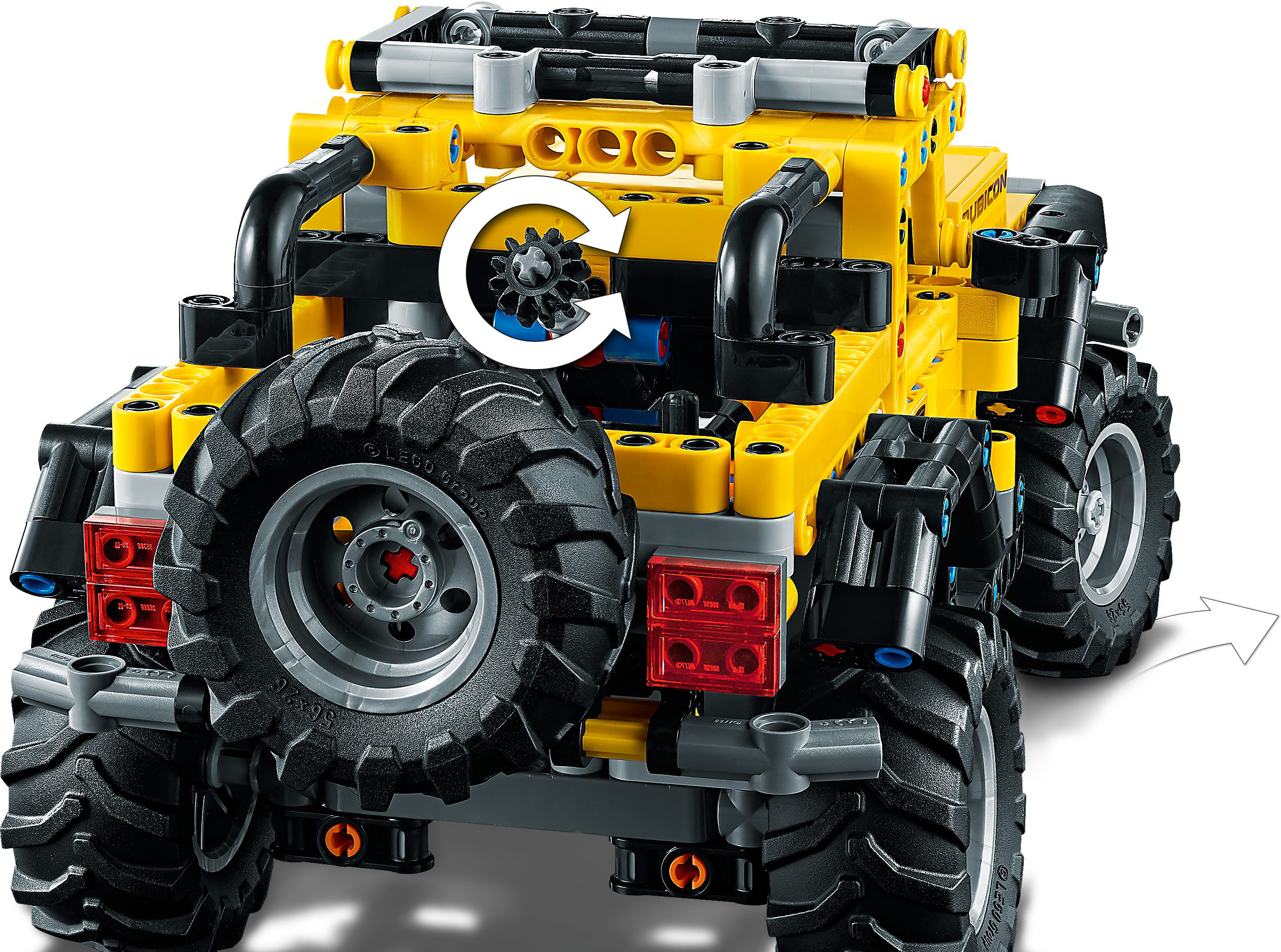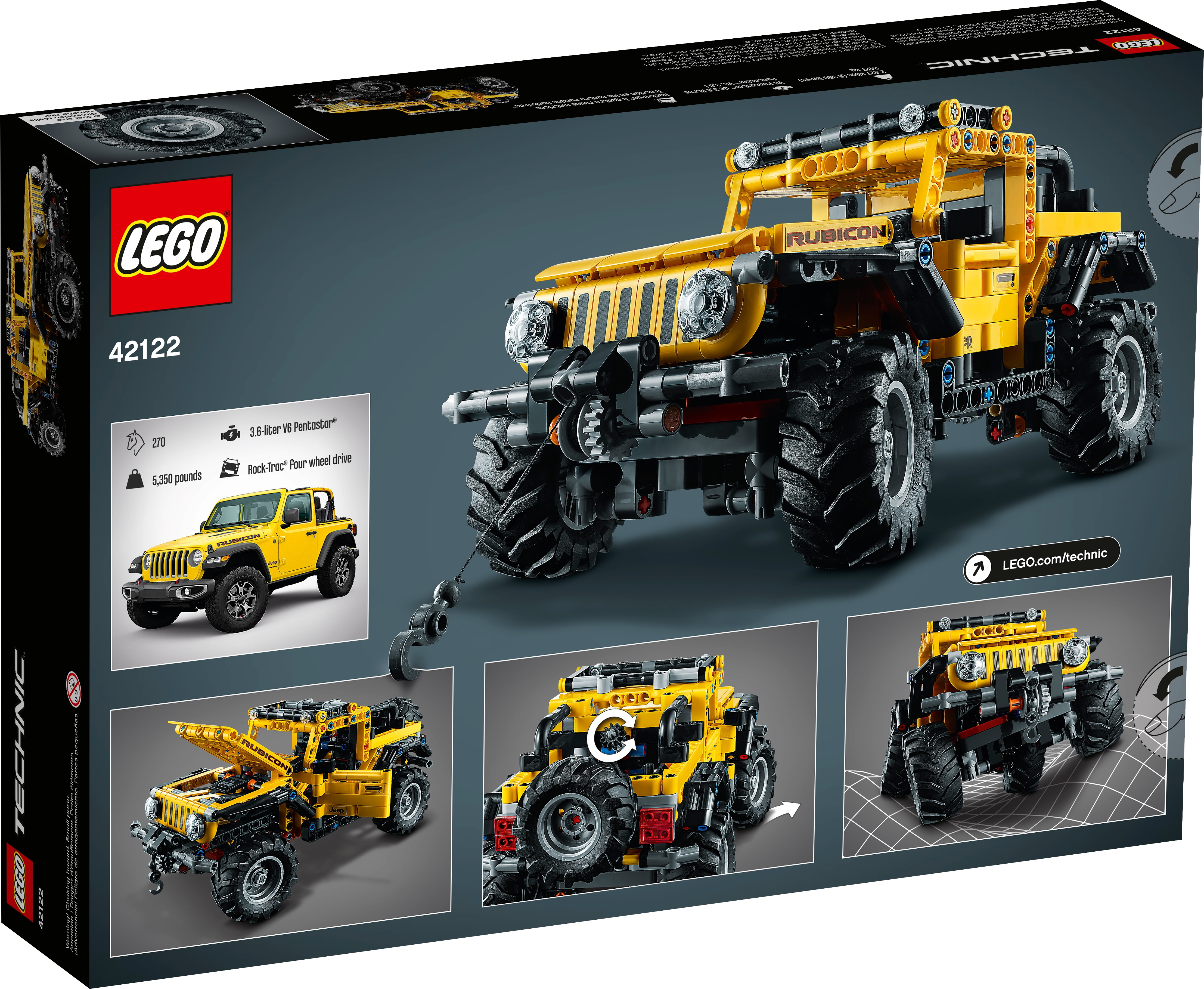 Any vehicle-loving kid would be proud to own a high-performance 4X4. Now you can make that dream a reality with the LEGO® Technic™ Jeep® Wrangler (42122) toy model. Boys and girls aged 9 and up will have fun exploring this iconic off-roader. There’s a button to operate the front steering and its powerful axle-articulation suspension means kids will love testing out their model on obstacles around the home.Packed with authentic detailsWith opening doors and hood, fold-down rear seats, a full-size spare tire, winch and classic Jeep branding, this fun toy model car brings kids closer than ever to the real Jeep Wrangler Rubicon. The eye-catching, yellow-and-black color scheme means this model looks great in action or on display.An engaging challenge for young LEGO buildersThe world of LEGO Technic offers advanced building toys for young LEGO fans ready for their next fun challenge. With realistic mechanisms, these collectible toys are a great way to introduce kids to engineering concepts.Know a kid who’d love to build their very own off-road 4X4? This LEGO® Technic™ Jeep® Wrangler (42122) is packed full of authentic details, making it a great toy for kids who love fun vehicles.With front steering, powerful axle-articulation suspension and a winch, kids can play out a world of off-roading adventures, inspired by the world-famous Jeep® Wrangler.This awesome model comes complete with authentic Jeep® Wrangler details, like the classic round headlamps, seven-slot grille, full-size spare tire and fold-down rear seats.Looking for the best toys for kids who love collectible car toys? This Jeep® Wrangler Rubicon model makes a great gift for young LEGO® fans who are ready for their next challenge.This Jeep® Wrangler Rubicon toy model measures over 4.5 in. (12 cm) high, 9.5 in. (24 cm) long and 5 in. (13 cm) wide, making this car a great size for play or display.Kids will love the car's eye-catching yellow-and-black color scheme and prestigious Jeep® Wrangler Rubicon branding.With opening doors and hood, it’s easy to explore the SUV toy car’s detailed interior.The LEGO® Technic™ universe opens up the world of engineering for young LEGO fans ready for their next building challenge.LEGO® components meet stringent industry standards to ensure they are consistent, compatible and connect reliably every time – it's been that way since 1958.LEGO® components are dropped, heated, crushed, twisted and analyzed to make sure they meet strict global safety standards.