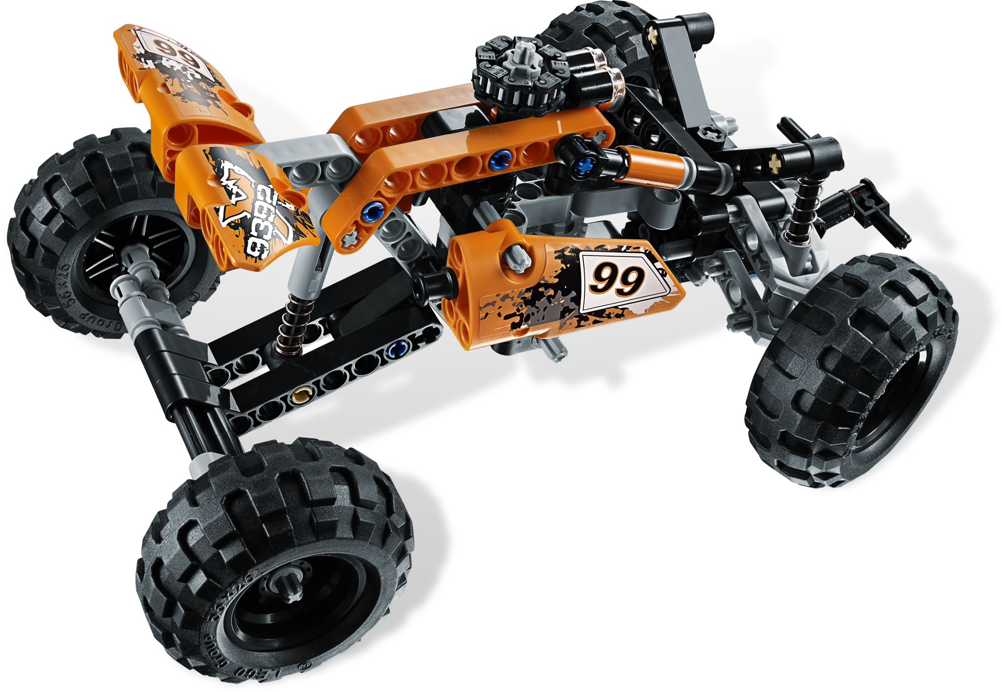 Take to the hills with the rugged Quad Bike! With functioning front and rear suspension, no terrain is too rough for the tough Quad Bike! This model also features realistic steering and chain-driven engine with moving piston! It doesn’t get much more realistic than this! Rebuilds into a race buggy.2-in-1 model: Rebuilds into a race buggyFeatures realistic steering, front and rear suspension and detailed chain-driven engineWatch the piston move!Realistic front and rear suspension!Features realistic steering!Measures 4” (11cm) high, 6” (14cm) wide and 7” (18cm) longRace buggy measures 4” (10cm) high, 6” (14cm) wide and 8” (21cm) long
