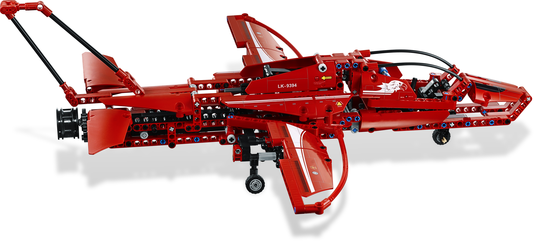 Break the realism barrier with this awesome Jet Plane! Streak across the sky with the realistic Jet Plane. Jump in the cockpit, close the canopy and take off! Operate the retractable landing gear and working ailerons and then sweep the wings back and go supersonic! It’s just like the real thing! Rebuilds into an aerobatic plane.Features opening cockpit, retractable landing gear, working ailerons and sweeping wingsSweep the wings!2-in-1 model: Rebuilds into an aerobatic planeTurn the propeller on the aerobatic plane!Retract the landing gear!Measures 7” (17cm) high, 17” (44cm) wide and 18” (46cm) longAerobatic plane measures 5” (12cm) high, 17” (44cm) wide and 20” (50cm) long