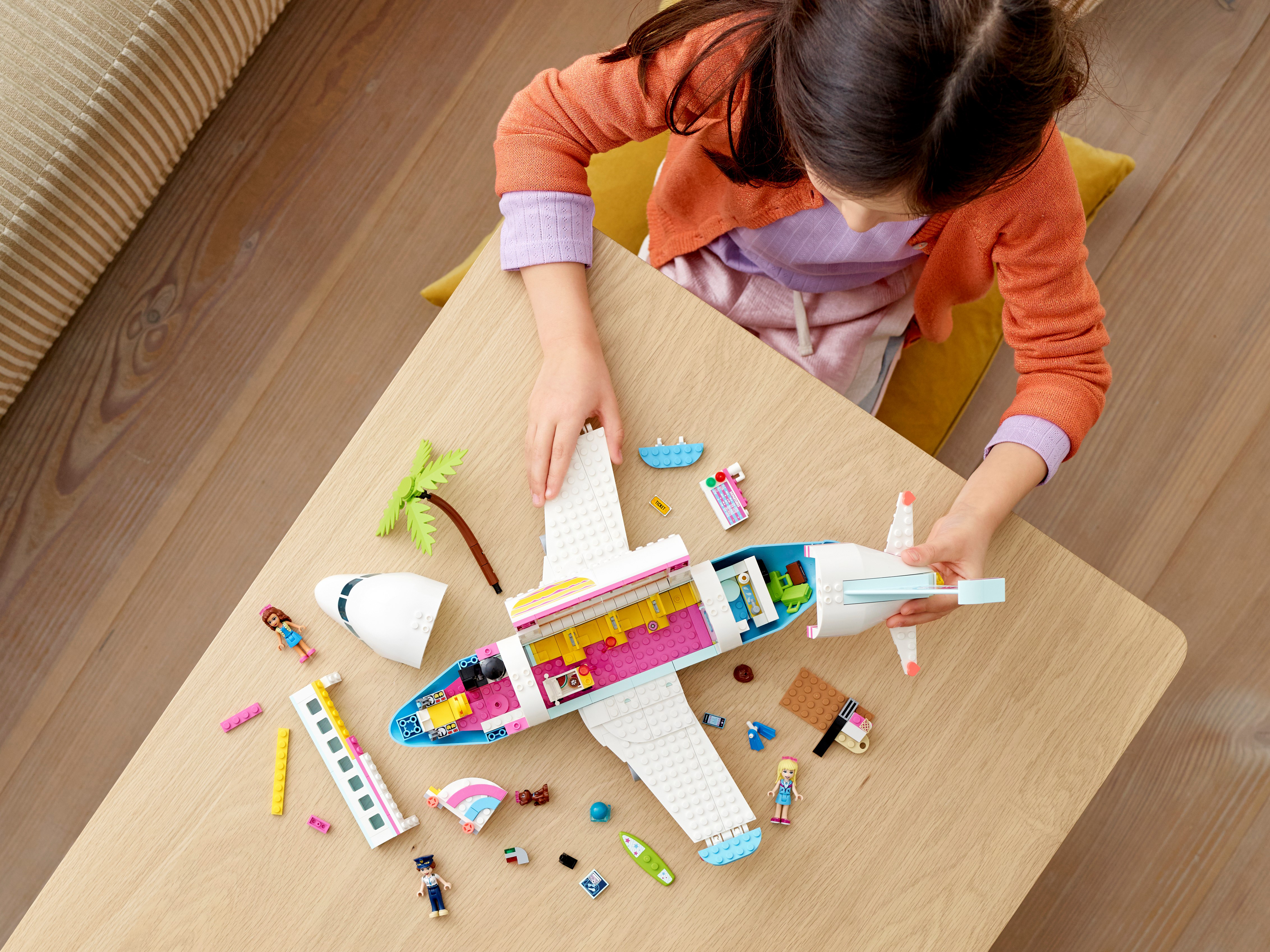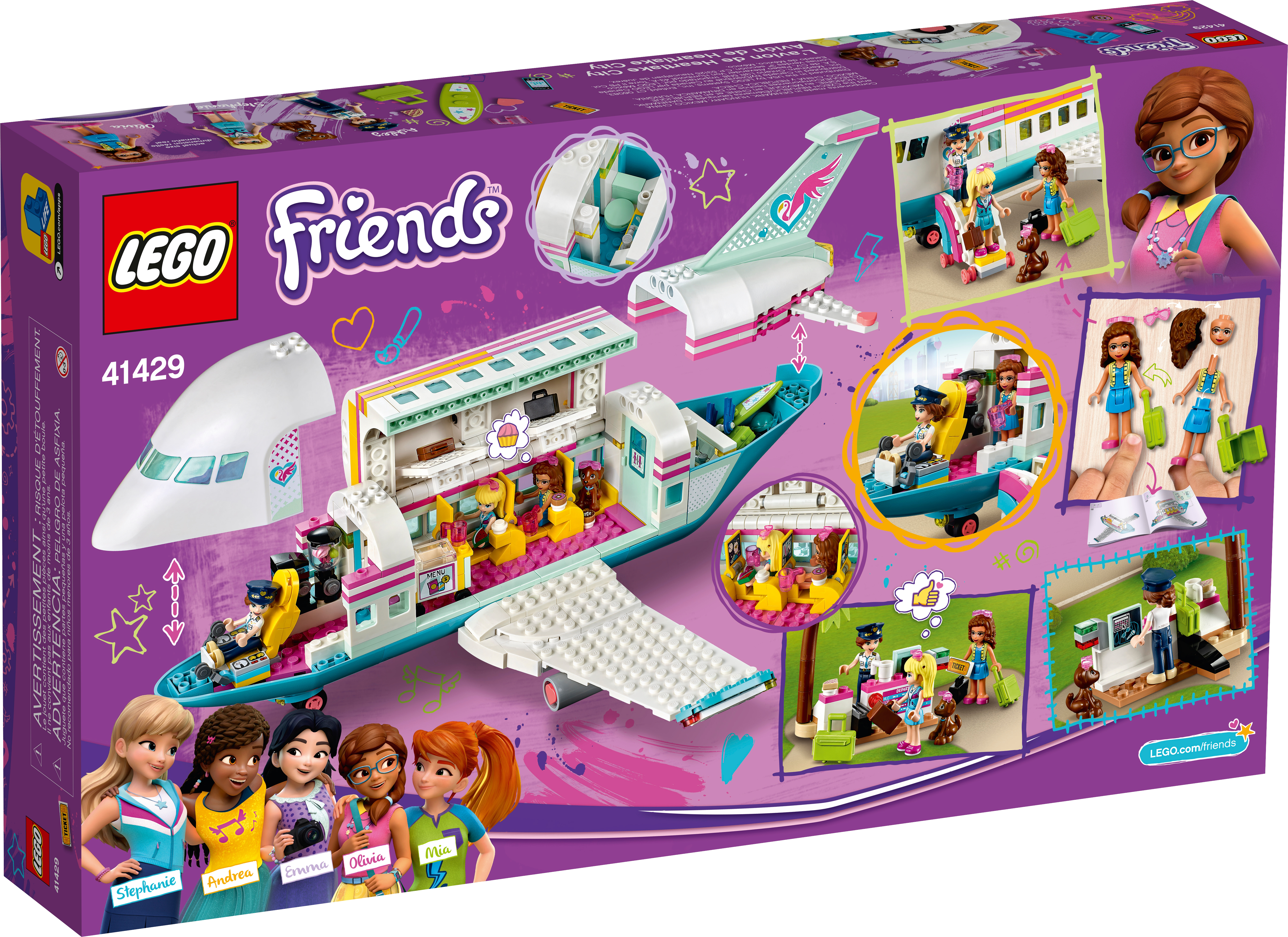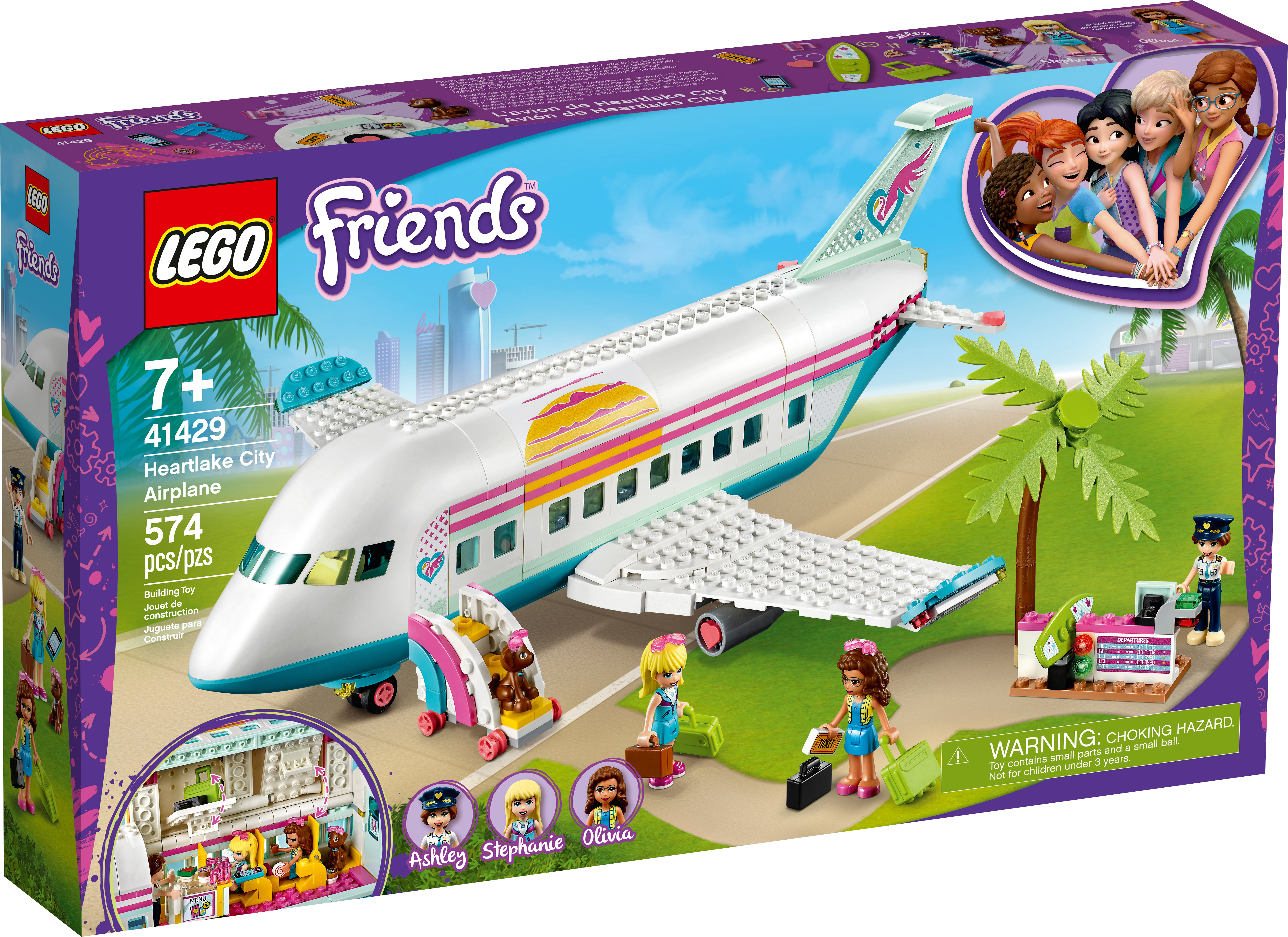 p>Let kids’ imaginations take flight with the Heartlake City Airplane (41429). Kids will love playing out holiday getaway stories in this realistic airplane playset. Just like the real thing, there are movable boarding steps, a cockpit and hand luggage compartments – there's even a trolley!Exploring a world of possibilityThis feature-packed airplane toy lets kids play out real-life scenarios. Children love nothing more than playing out the grown-up world, and with this set they can do just that, pretending to scan tickets and checking in their luggage. Clever details, such as chair-mounted TV screens, really bring the play to life. With the 3 mini-doll figures, kids can imagine being a passenger or the pilot flying the plane.In the heart of the actionTake your little builder on a holiday getaway to Heartlake City, a place of exciting adventures and everyday heroes, where kids will find that everyone is included in the fun and there's a character who's just like them.The sky’s the limit with Heartlake City Airplane (41429). Aboard this feature-packed airplane toy kids will discover endless fun creative travel scenarios thanks to its many cool features and accessories.Kids can create fun airplane adventures with LEGO® Friends Stephanie and Olivia buildable mini-doll figures. They can check them in and help them board or imagine flying the plane with the pilot figure in the cockpit.Set features a flight deck, movable food trolley with airplane snacks and bathroom area. Suitcases go in the hold. The cabin opens up to reveal hinged luggage compartments, and there’s a check in desk and flight stairs.This 574-piece travel playset makes a great holiday gift for kids aged 7+ who love quirky toy vehicles and have a little building experience. This is a stimulating build and will give a sense of pride when it's complete.This airplane toy measures over 5” (13cm) high, 14” (36cm) long and 12” (33cm) wide. As all LEGO sets are compatible, this awesome toy combines with any other LEGO® bricks kids have at home for a truly creative playtime!Dynamic play is part of the ride. There are lots of cool moving parts, such as the hinged hand-luggage compartments and rolling food trolley. No batteries are needed – this vacation toy flies on kids' imagination alone!This airplane model comes with easy-to-follow instructions, making it a great building set for kids new to LEGO® fun toys. Thanks to its clear printed guide they'll be taxiing towards to exciting role-play fun in no time!LEGO® Friends playsets help kids play out scenes from the TV show, where the girls from Heartlake City embark on exciting adventures or have fun simply hanging out with their BFFs!Ever since 1958, LEGO® bricks have met the highest industry standards ensuring this vacation toy's components are consistent and compatible, with connections that will easily withstand the odd bit of turbulence!Bricks and pieces of LEGO® awesome toys are testedin almost every way imaginable. This ensures each playset meets the highest global quality standards, making LEGO® sets some of the best ¬– and safest – toys for kids.
