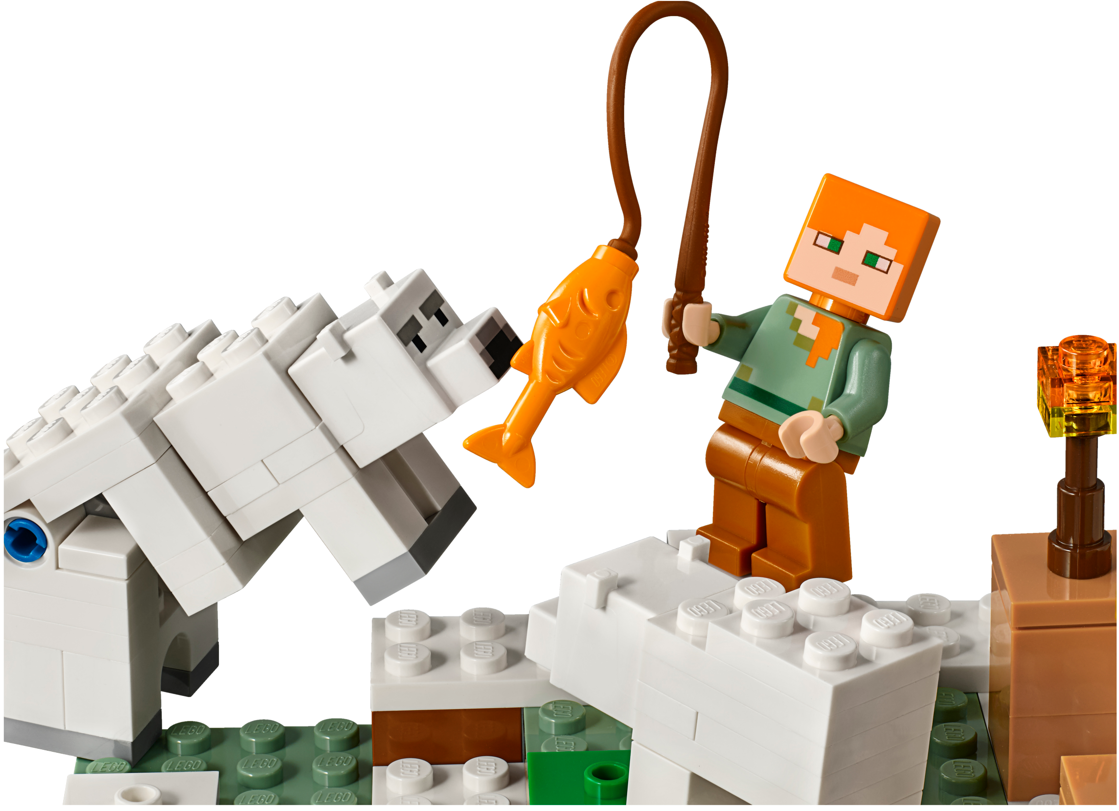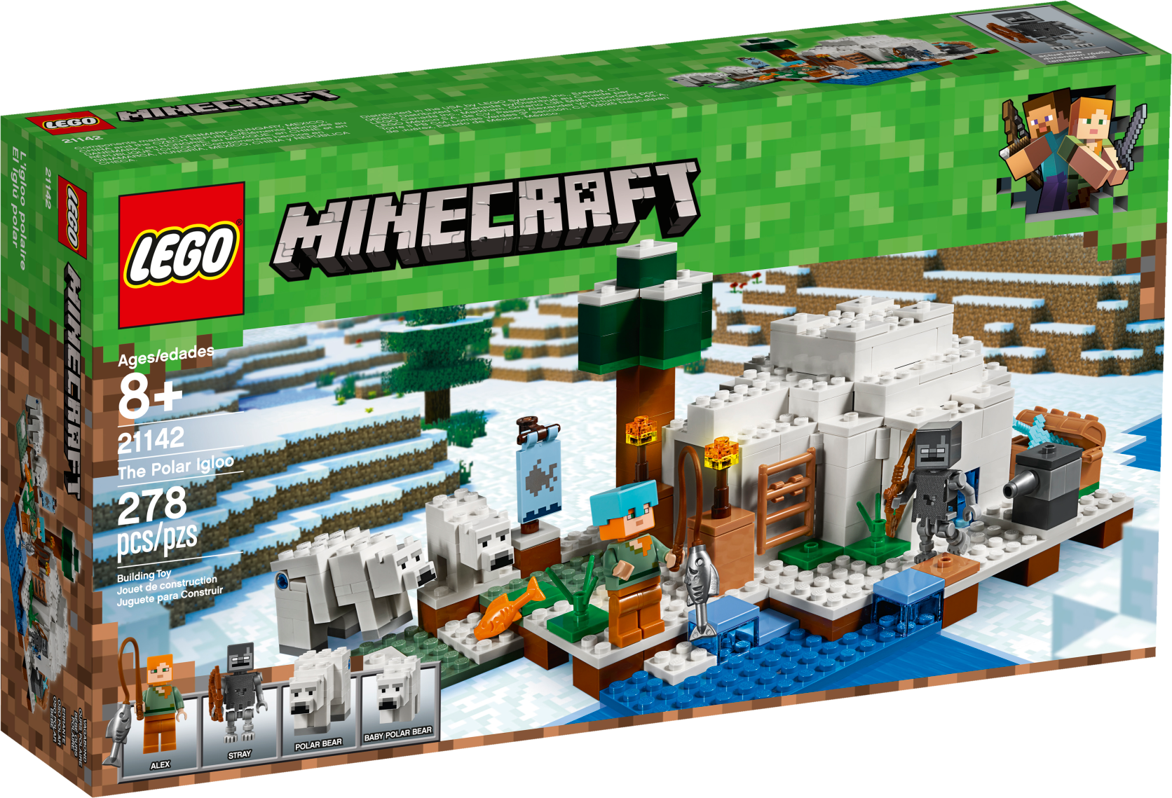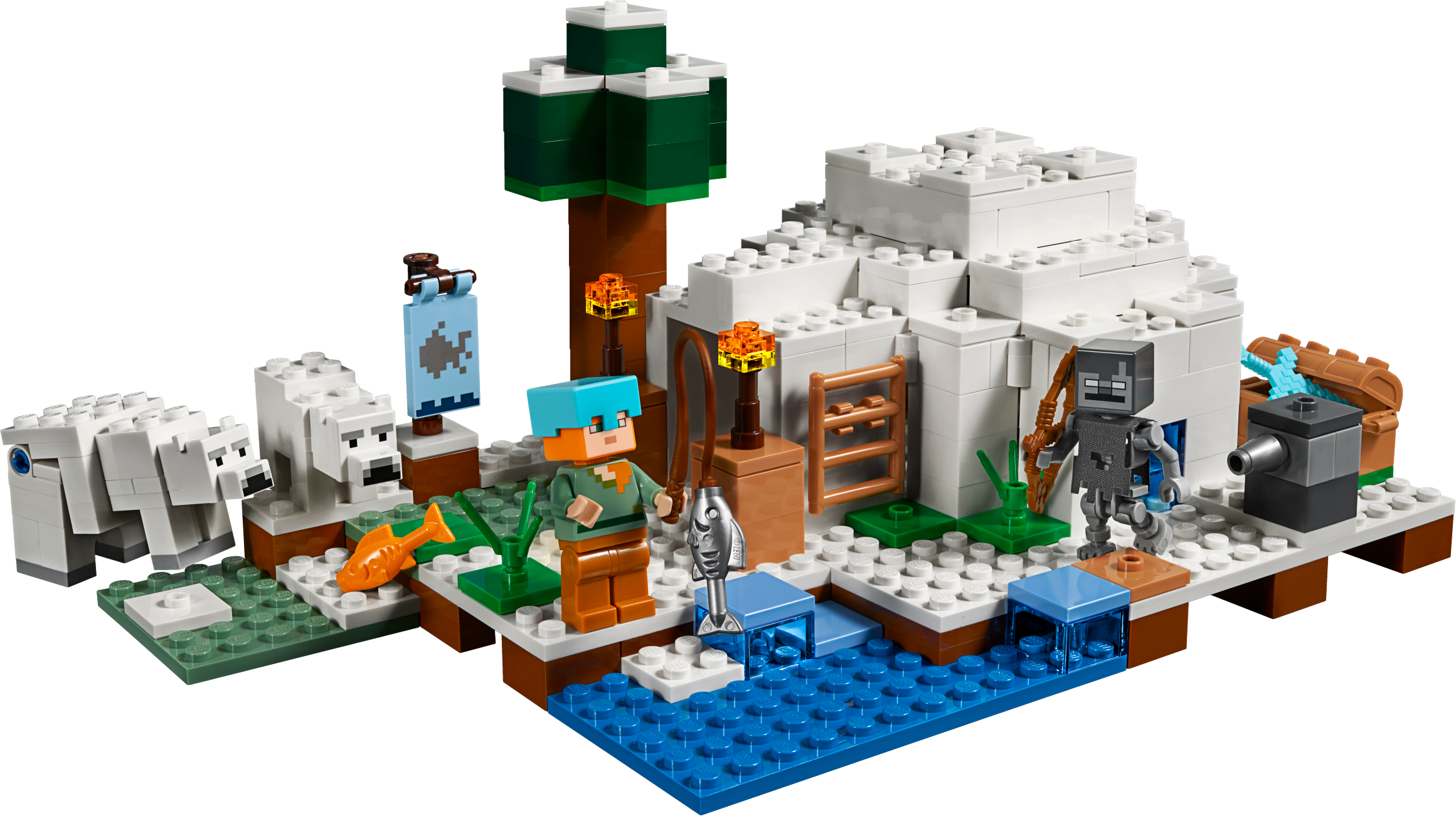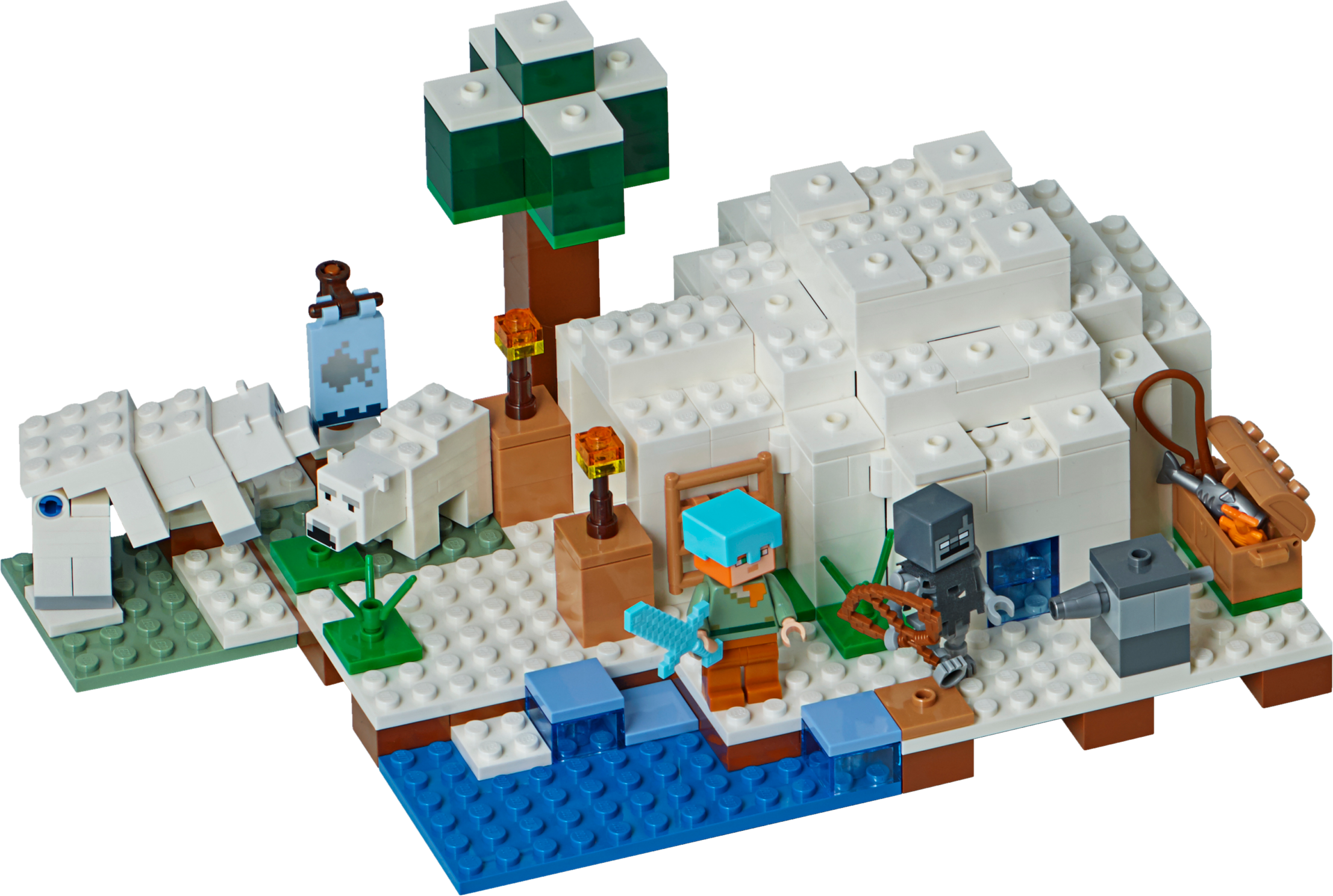 Discover an igloo in a snow-covered biome, complete with a polar bear and a baby polar bear. Do a spot of fishing and build an arrow dispenser to defend against the stray. Enjoy hands-on Minecraft™ adventures with this LEGO® Minecraft set—designed for young fans of the highly successful sandbox video game. Combine this set with other LEGO Minecraft models to create your own unique LEGO Minecraft universe. Also includes an Alex LEGO Minecraft minifigure. Includes an Alex LEGO® Minecraft™ minifigure, plus stray, polar bear and baby polar bear figures. Features a buildable Minecraft™ igloo, set in a snow-covered landscape with a tree, plants and a water area with ice block elements, plus a decorative banner and an arrow dispenser. Remove the igloo roof to access the detailed interior featuring a buildable redstone torch, bed, crafting table and furnace. Grab your diamond sword and defend the Polar Igloo. Build an arrow dispenser and launch the flick missiles to defend against the stray. Check out the polar bear that can stand on its back legs! Weapons include a sword and a bow. Accessory elements include a fishing rod, 2 fish, ladder and a chest. Set your imagination free—rebuild the set for more LEGO® Minecraft™ creations! This toy for boys and girls includes over 275 pieces and is suitable for ages 8+. Measures over 4” (11cm) high, 6” (16cm) wide and 9” (24cm) deep.