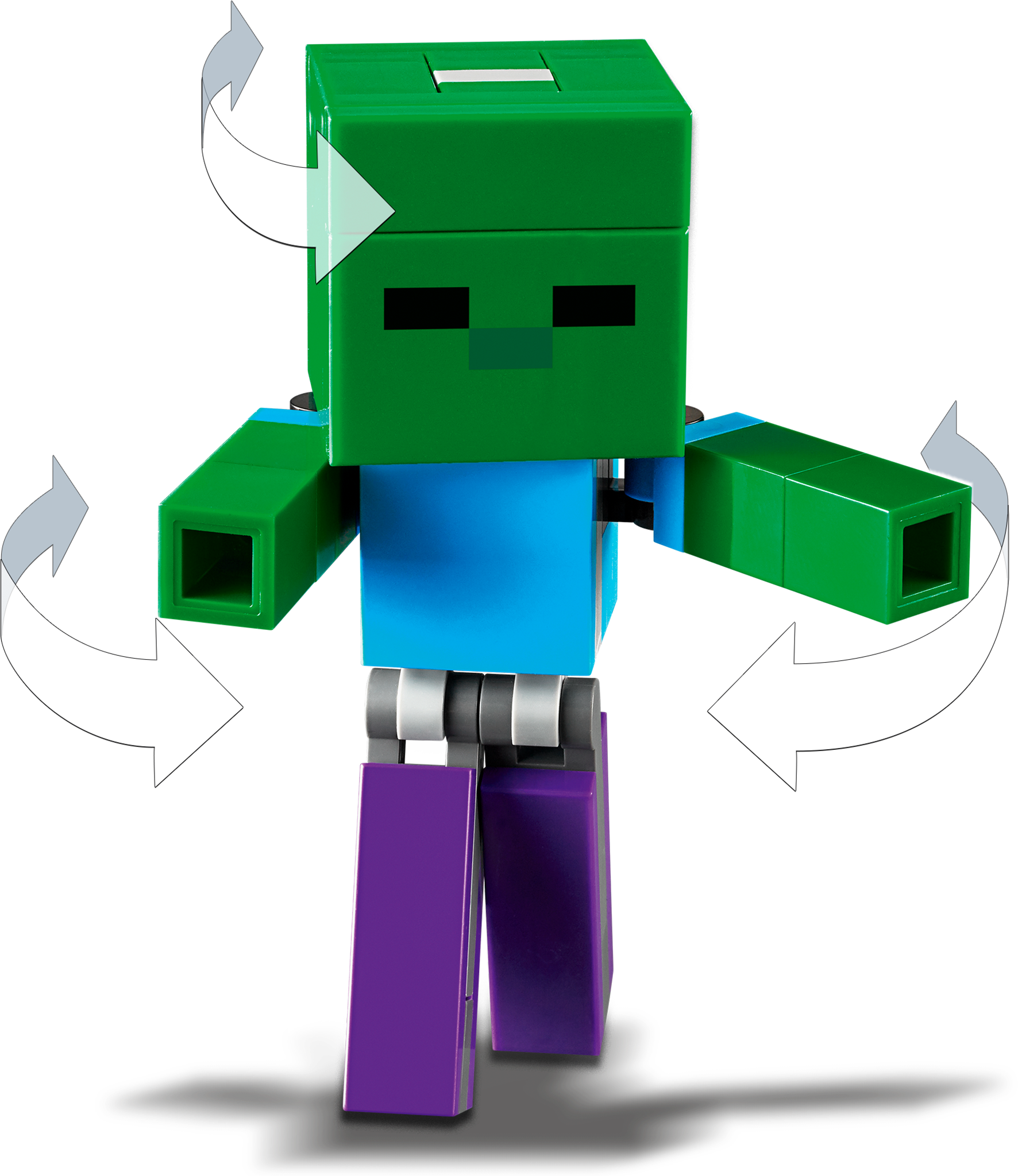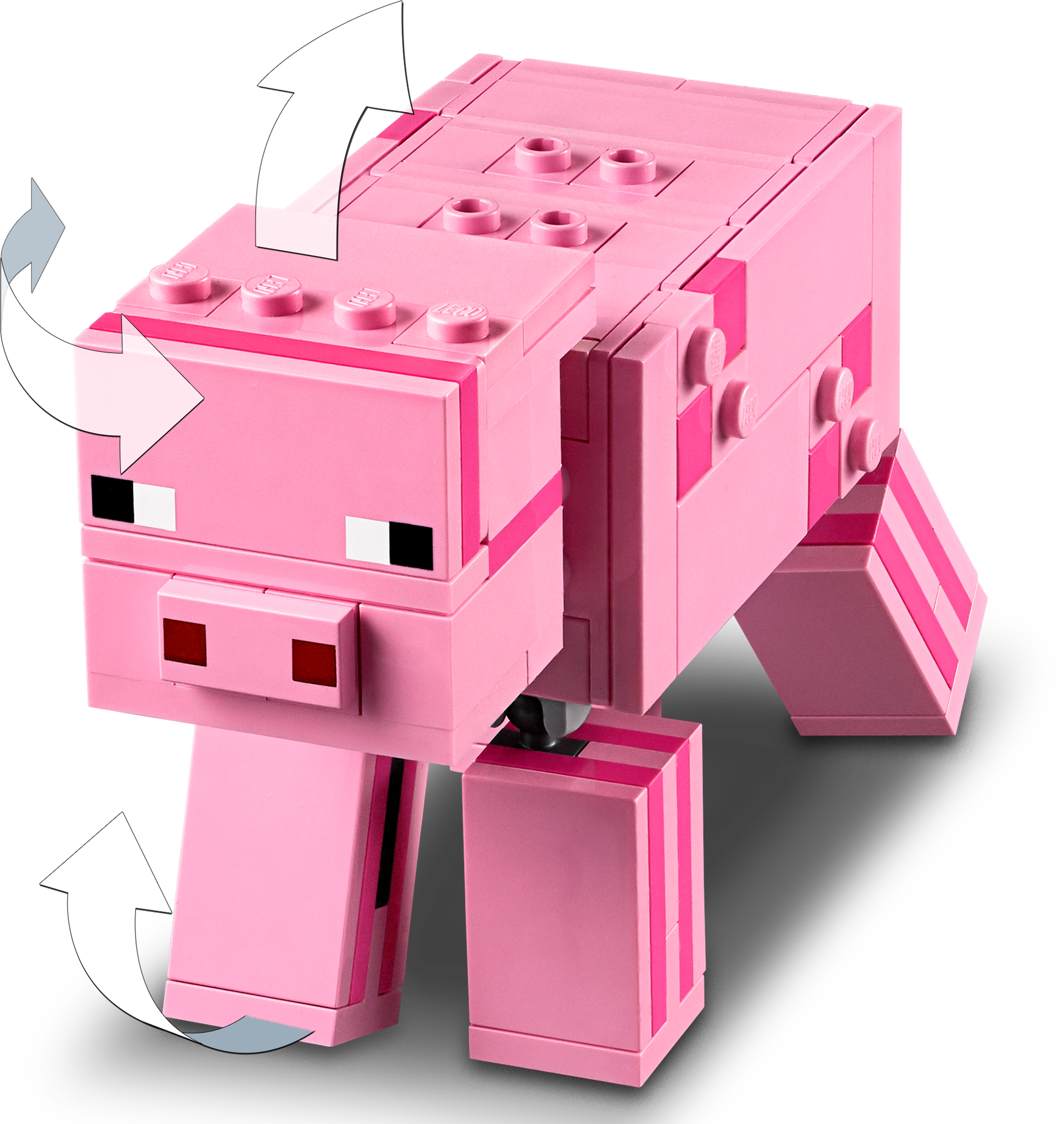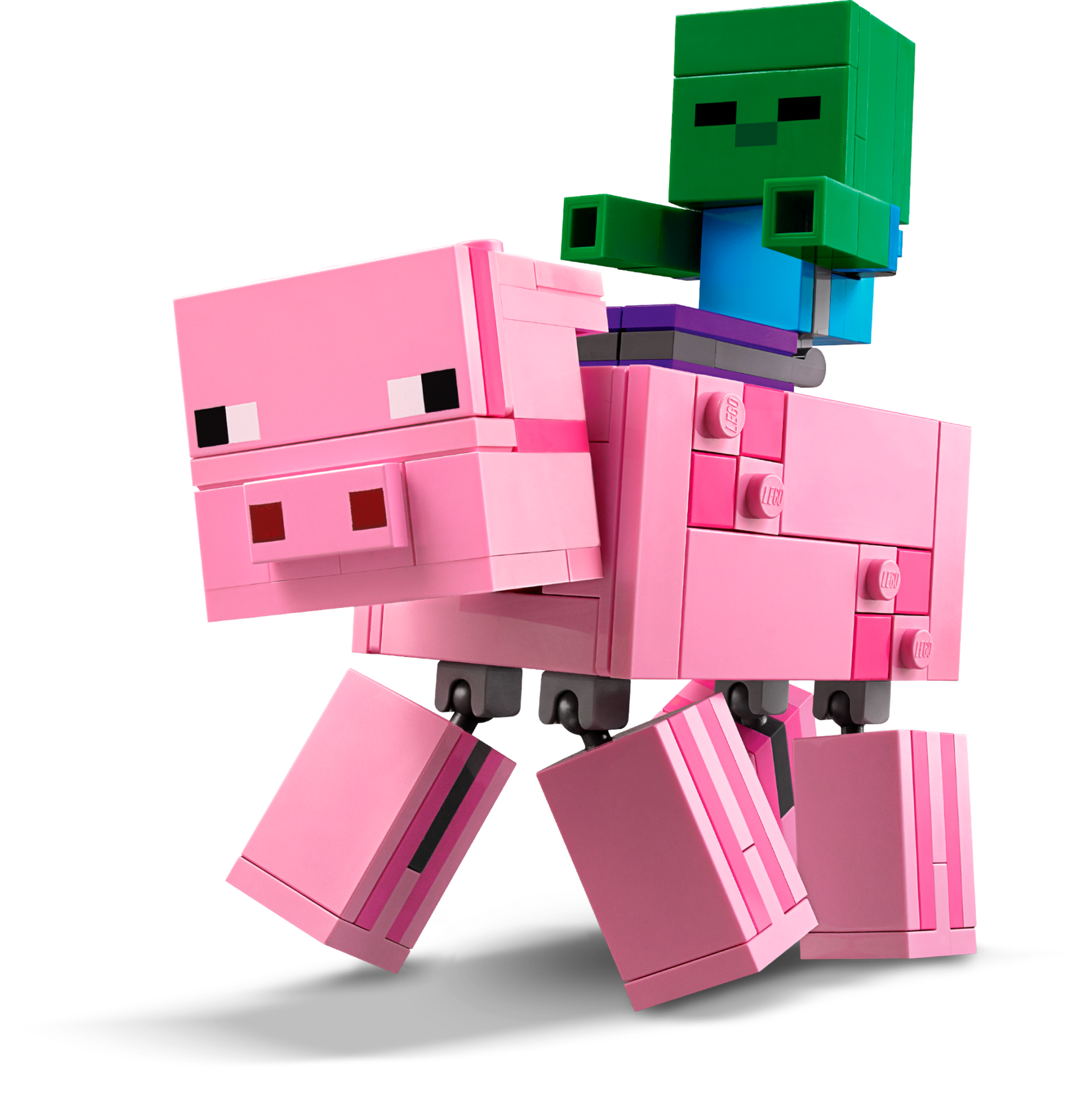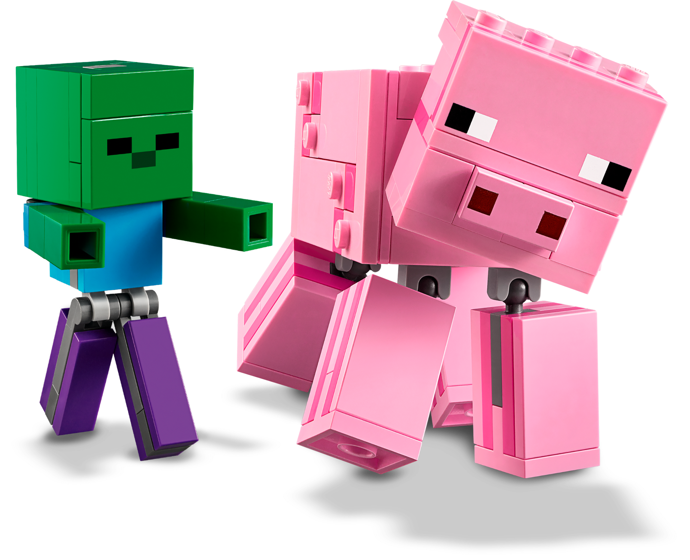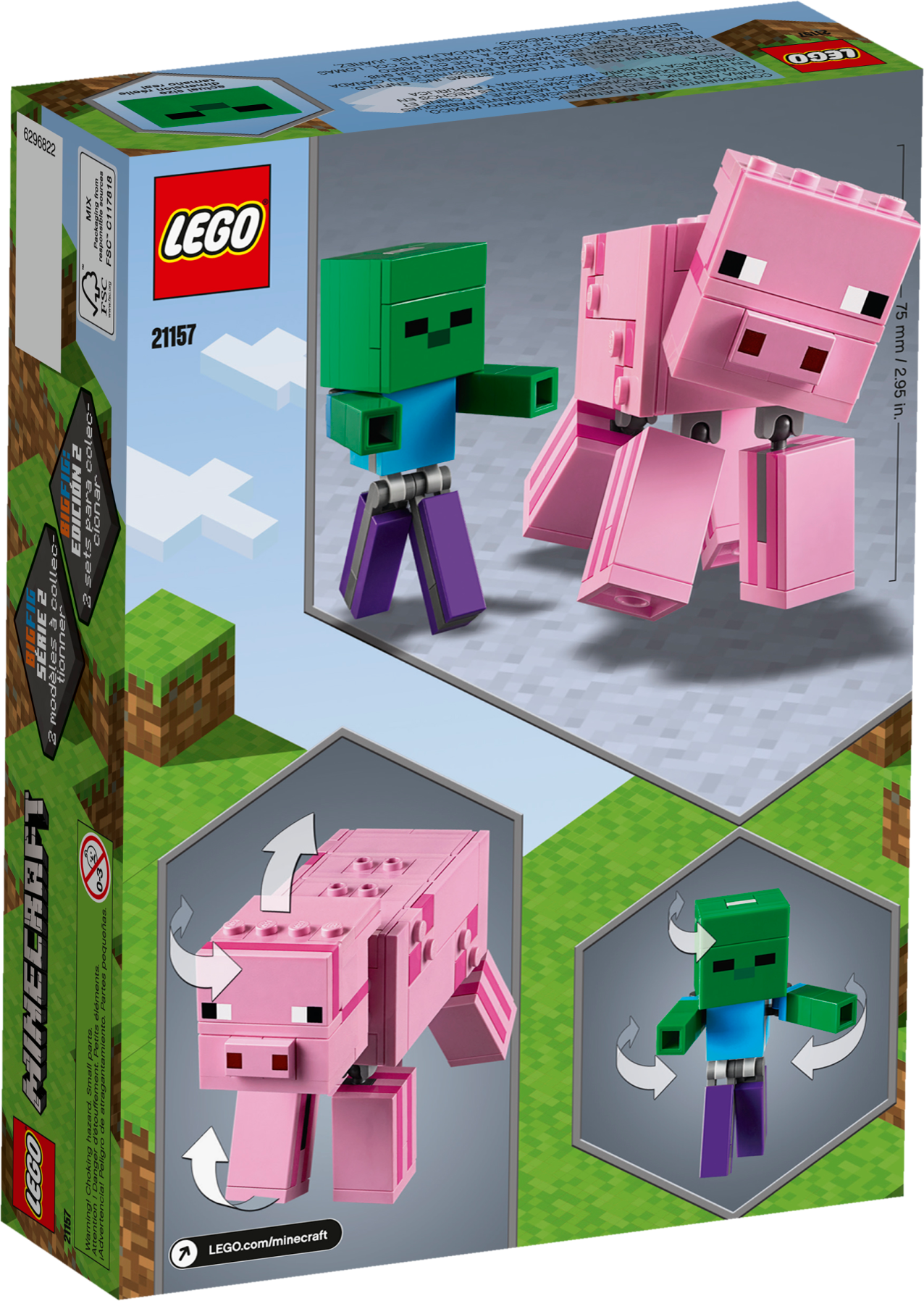 Minecraft™ players can bring the game’s online excitement to life with a LEGO® Minecraft BigFig Pig and Baby Zombie. This large-scale set inspires endless independent play and provides cool Minecraft decorations that kids will love to display in their rooms!Give kids the 3D Minecraft toy experience!Children aged 7 and up will love to continue their Minecraft adventures in the real world. Pig and Baby Zombie are buildable, posable toys designed to give kids hands-on Minecraft fun wherever they are. The lovable, pink Pig’s head and legs are movable, and so are the cute, green-faced Baby Zombie’s head, legs and arms. Pig is even happy to let Baby Zombie ride on its back!Make Minecraft Mega – with LEGO® BigFig sets!LEGO® Minecraft BigFig sets are supercool, super- collectible and, best of all for adults, a super Christmas or birthday gift for kids. BigFigs are extra-large for extra enjoyment, and they put hands-on, open-ended creative play in Minecraft players' hands!Put Minecraft™ adventures into kids’ hands with LEGO® BigFig Pig and Baby Zombie. These authentic real-world models of the iconic video game characters are great to play with, to display and to collect.Big and easy to build, LEGO® brick BigFig Pig and Baby Zombie toys feature a realistic design with movable limbs to maximize play possibilities. And when the action stops, they look great as decorations in kids' rooms.Give kids new ways to play Minecraft™. Whether kids are recreating favorite Minecraft scenes or making up adventures of their own, LEGO® BigFigs add a whole new physical dimension to the popular computer game.Great gift for Minecraft™ players! Cool Christmas, birthday or any-other-day present for boys and girls aged 7 and up. Only requires basic building skills and combines with other LEGO® Minecraft BigFig sets.At over 4” (10cm) long and 2” (6cm) high, the BigFig Pig offers Minecraft™ fun on a large scale – whether having adventures with Baby Zombie at over 2” (7cm) tall or with other BigFigs from the LEGO® Minecraft collection.Battery-free fun, so the enjoyment never ends! Real-world, hands-on play powered by kids’ imaginations gets them off the PC and boosts their thinking, problem-solving and social skills.Get kids building and playing with their toys quickly! Simple, clear instructions ensure the fun starts straight out of the box.Every LEGO® Minecraft™ BigFig toy brings Minecraft's online excitement into the real world. With high-quality, authentic-looking models, LEGO Minecraft sets take kids’ play experience into a new dimension!Because LEGO® toys meet the highest industry standards as well as our own quality criteria, they are consistent, compatible and connect and pull apart perfectly every time – and it's been that way since 1958.At The LEGO Group, we drop, squash, twist, heat, bend, scratch and stretch LEGO® bricks and pieces to ensure they meet the highest global safety and quality standards – and you can be certain your child is safe.