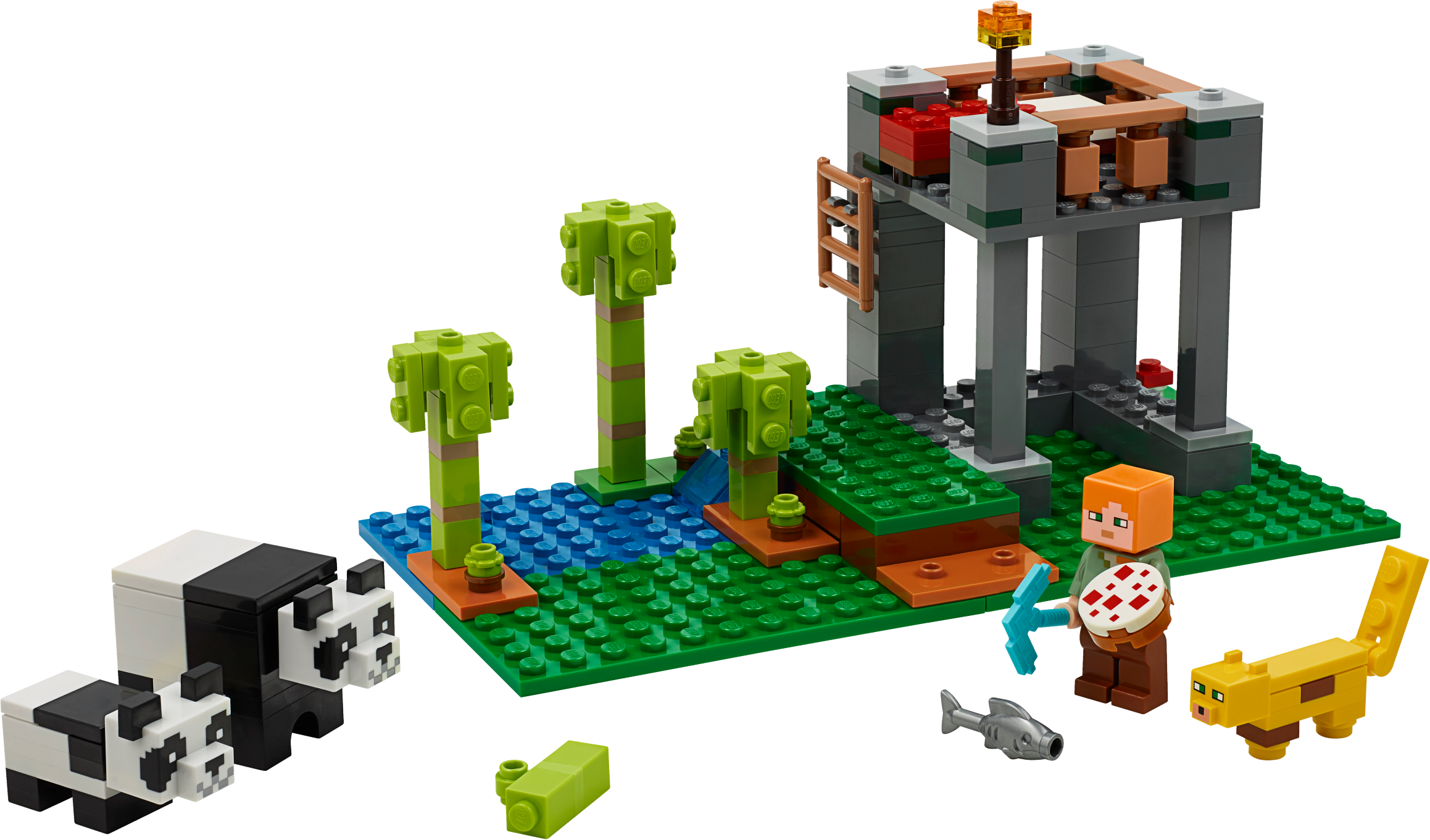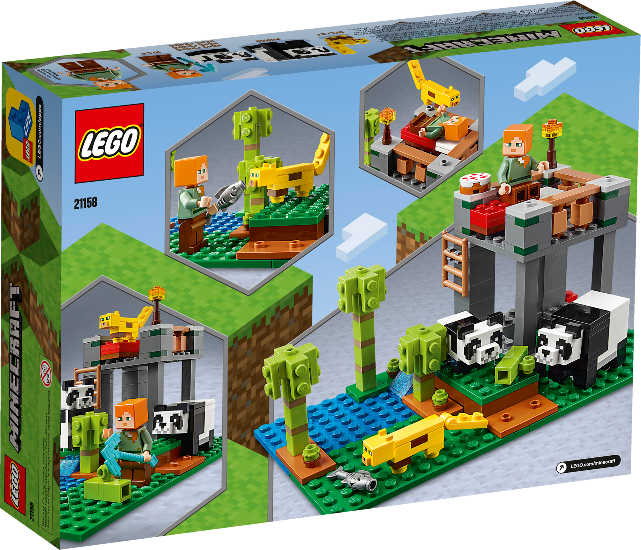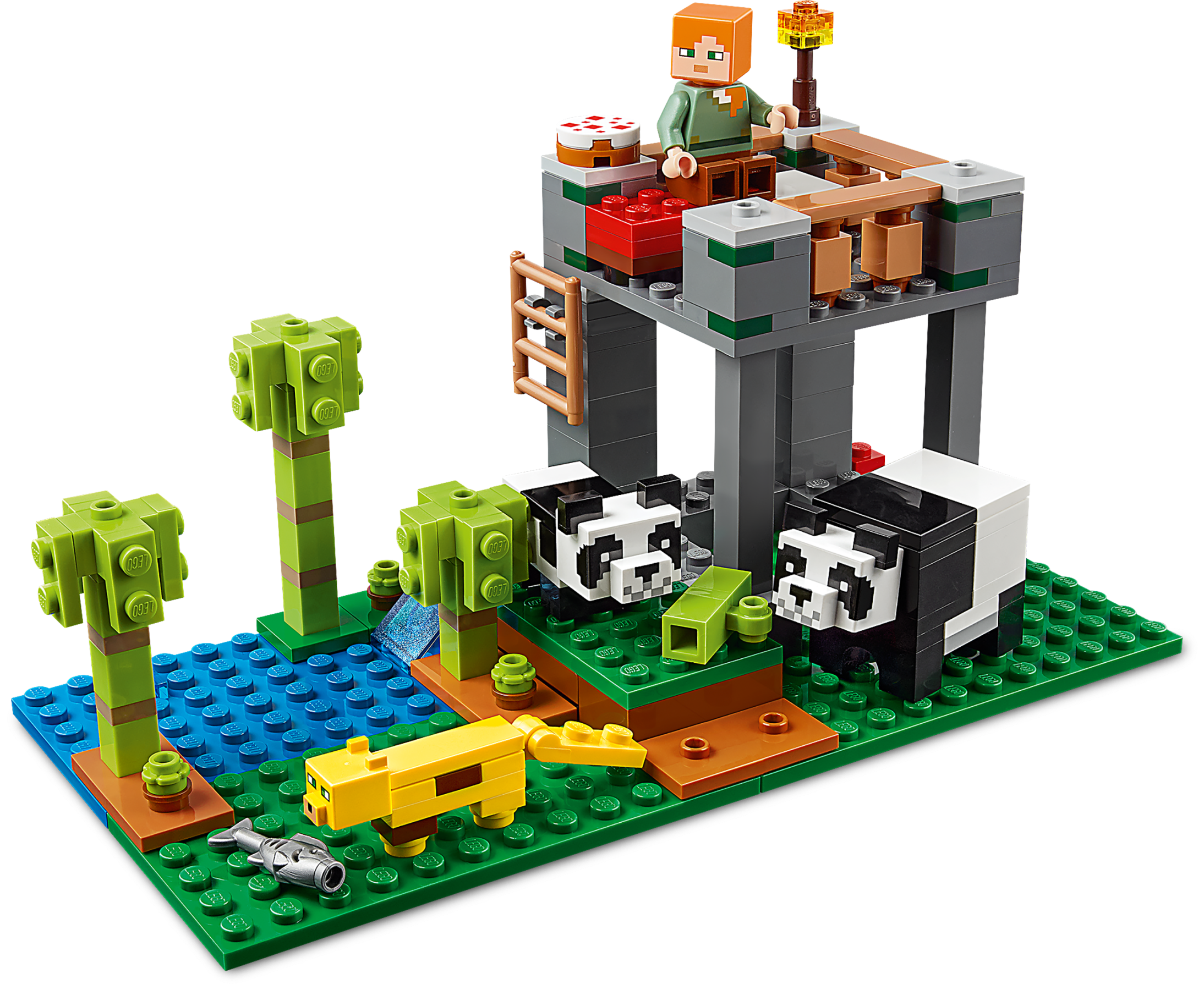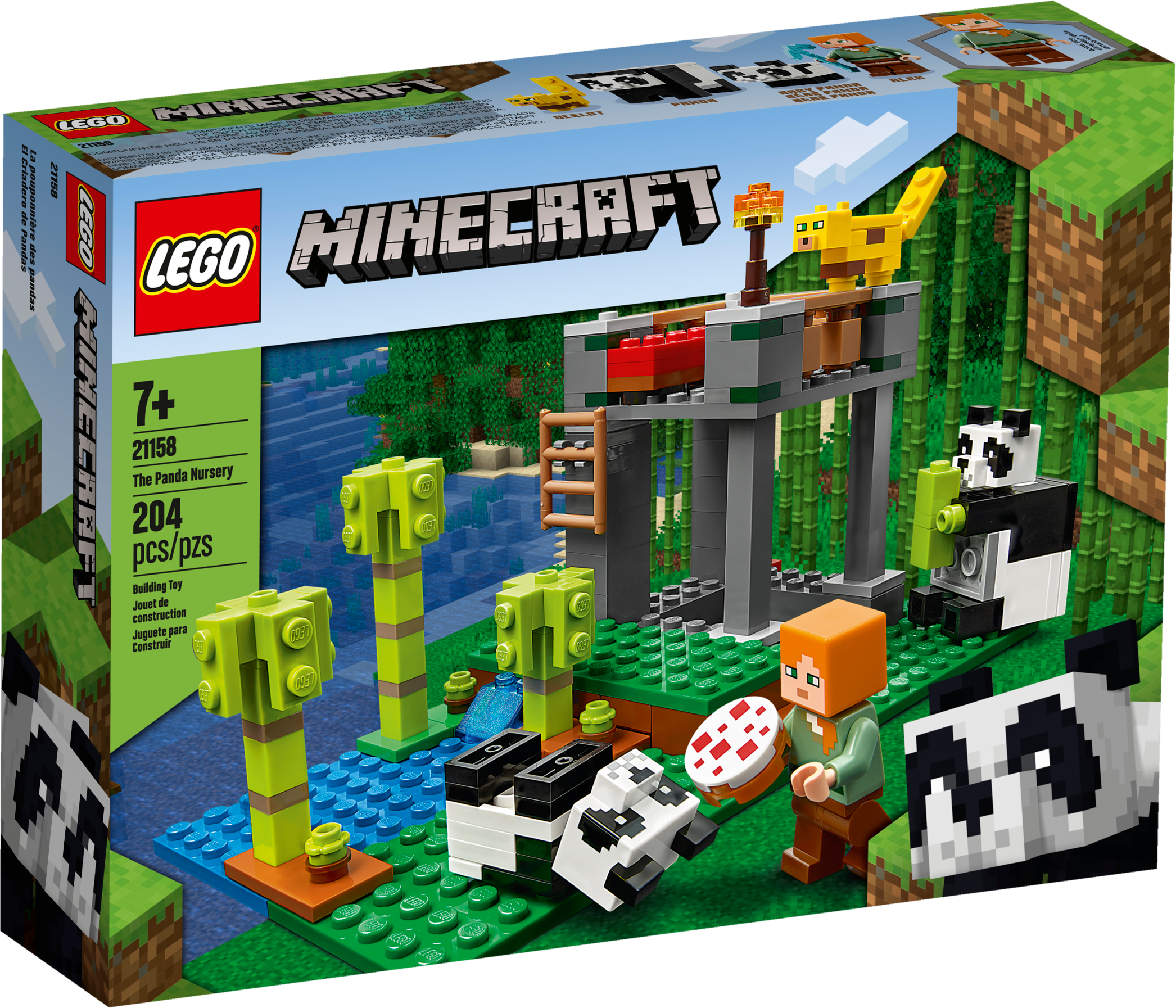 Versatile panda playset that brings favorite Minecraft™ stories to life. Kids enjoy hands-on Minecraft fun and adventure when they assemble the LEGO® nursery building set and start caring for the adorable toy pandas. New-for-January-2020, the cutest mobs in Minecraft™! Mom and baby panda Minecraft characters sit, stand and move their heads. An ocelot has come to visit, there’s bamboo to eat and Alex has brought a pie to share!Kids can build and play with their own Minecraft™ environment. There’s a hut to prepare for the pandas with a rooftop bed for tired babies. And, if there’s any Minecraft gold to be mined, Alex has his diamond pickaxe!This versatile Minecraft™ playset makes a great Christmas, birthday or any-other-day gift for boys and girls aged 7 and up. Great for panda-lovers and Minecraft players wanting new ways to play their favorite game.At over 7” (19cm) long, 3” (9cm) high and 3” (8cm) wide, the playset brings Minecraft™ excitement into the real world – and kids can increase the fun even more by combining it with other LEGO® sets.No need for batteries, so the fun starts straight from the box! The hands-on independent play is powered by kids’ imaginations – which boosts their dexterity, creativity and problem-solving skills.Every LEGO® Minecraft™ construction toy brings Minecraft’s online excitement into the real world. With high-quality, authentic-looking models, LEGO Minecraft sets take kids’ play experience into a new dimension!