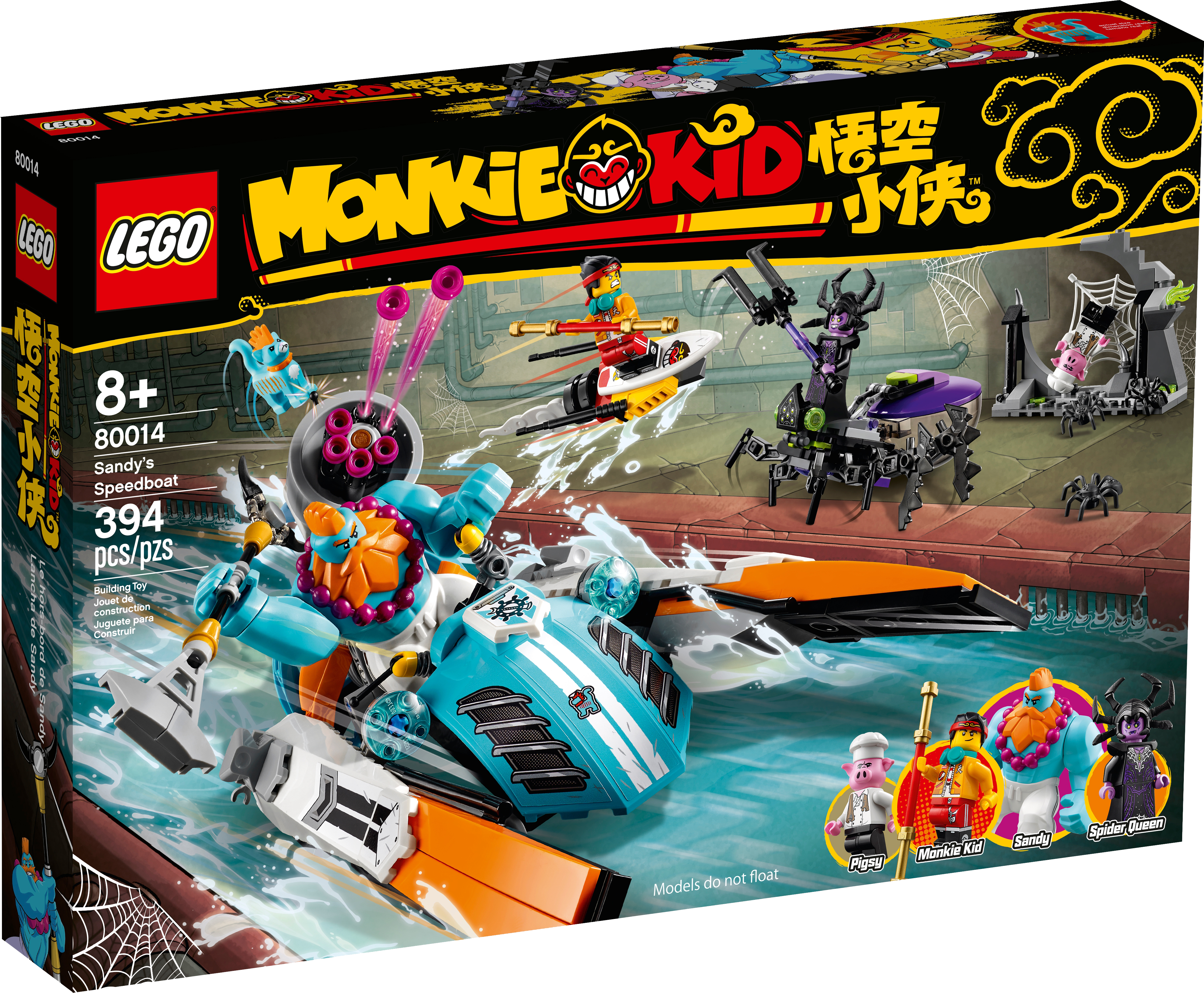 ['Monkie Kid|n', 'Pigsy|n', 'Sandy|n', 'Spider Queen|n', 'Fish', 'Cat', 'Spider', 'China', 'Bigfig', 'Speedboat', 'Airboat', 'Brick Built Animals', 'Jet Aircraft', '2nd Wave', 'Brick Separator', 'Hover Board']