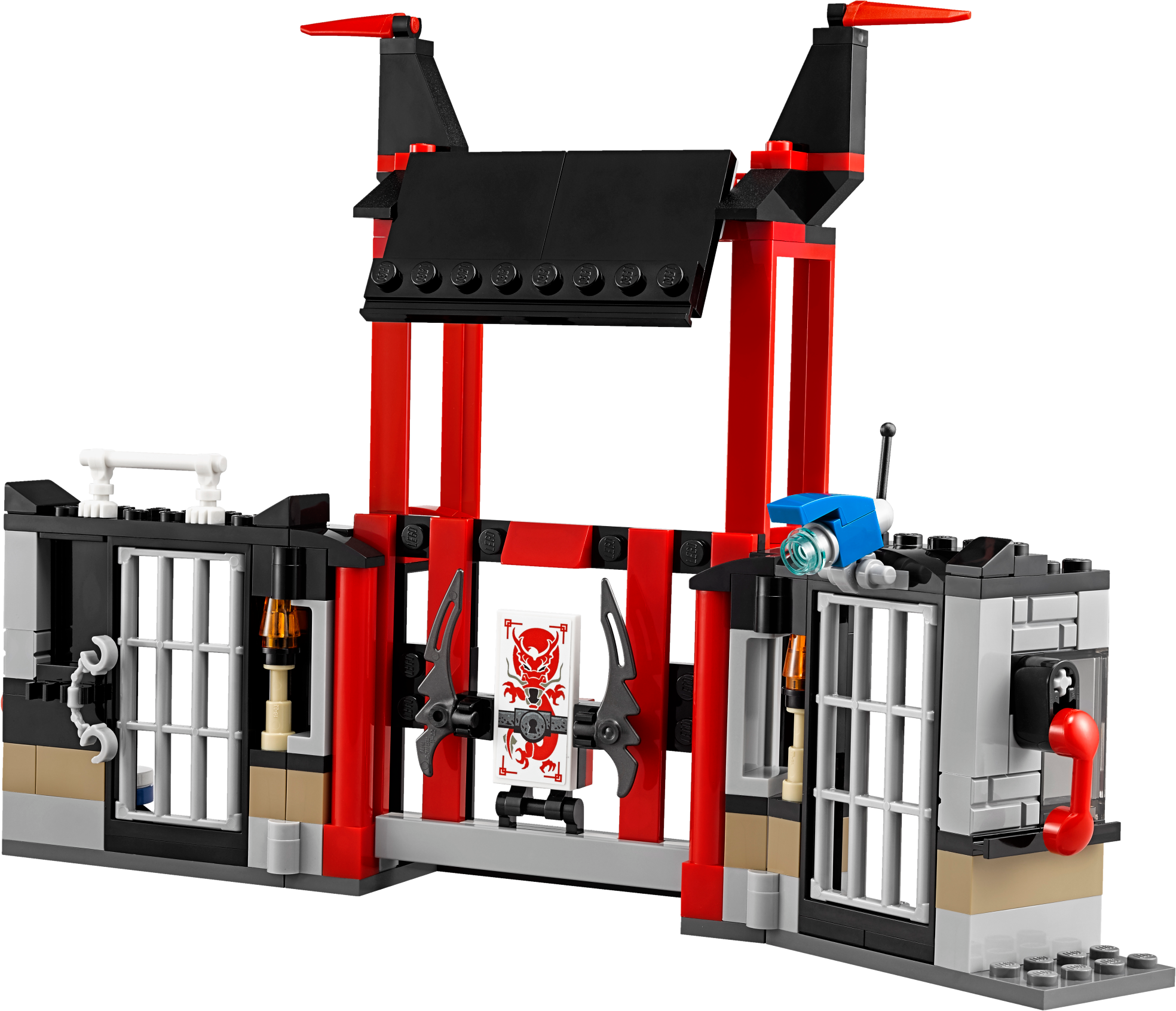 Rush to rescue Zane from Kryptarium Prison with Kai! Zane has been unfairly arrested and imprisoned along with real bad guys Captain Soto and the Giant Stone Warrior. Sneak past the prison guard and the security camera to enter Kryptarium Prison. Launch the bread roll with the table catapult to start a food fight—and look out for the hidden treasure map and shuriken! Overpower the 4-armed Giant Stone Warrior and then it's time make a quick escape. Turn the telephone to explode a cell door or shift the toilet to bust out through the other cell! Includes 5 minifigures: Zane in prison outfit, Kai in Skybound outfit, Giant Stone Warrior with 4 arms and prison outfit, Captain Soto with prison outfit and a prison guard. Kryptarium Prison Breakout features a drop-down main entrance gate, 2 prison cells (1 with an explode-function door that is activated by turning the red telephone), a toilet escape route, and a security camera-style element. Pull or push the toilet through the wall to create a hole for the Titanium Ninja to escape. Also includes a buildable table catapult with a bread roll element to launch and start a food fight, plus a hidden treasure map and shuriken weapon. Weapons include Kai's golden sword, 2 golden shurikens, plus a spear and a red crowbar attached to the back of the toilet. Accessory elements include the prison guard's mug and handcuffs. Recreate and role-play epic scenes from the NINJAGO™: Masters of Spinjitzu TV show. This set offers an age-appropriate building experience for ages 7-14. Kryptarium Prison Breakout measures over 5” (15cm) high, 9” (23cm) wide and 3” (9cm) deep.