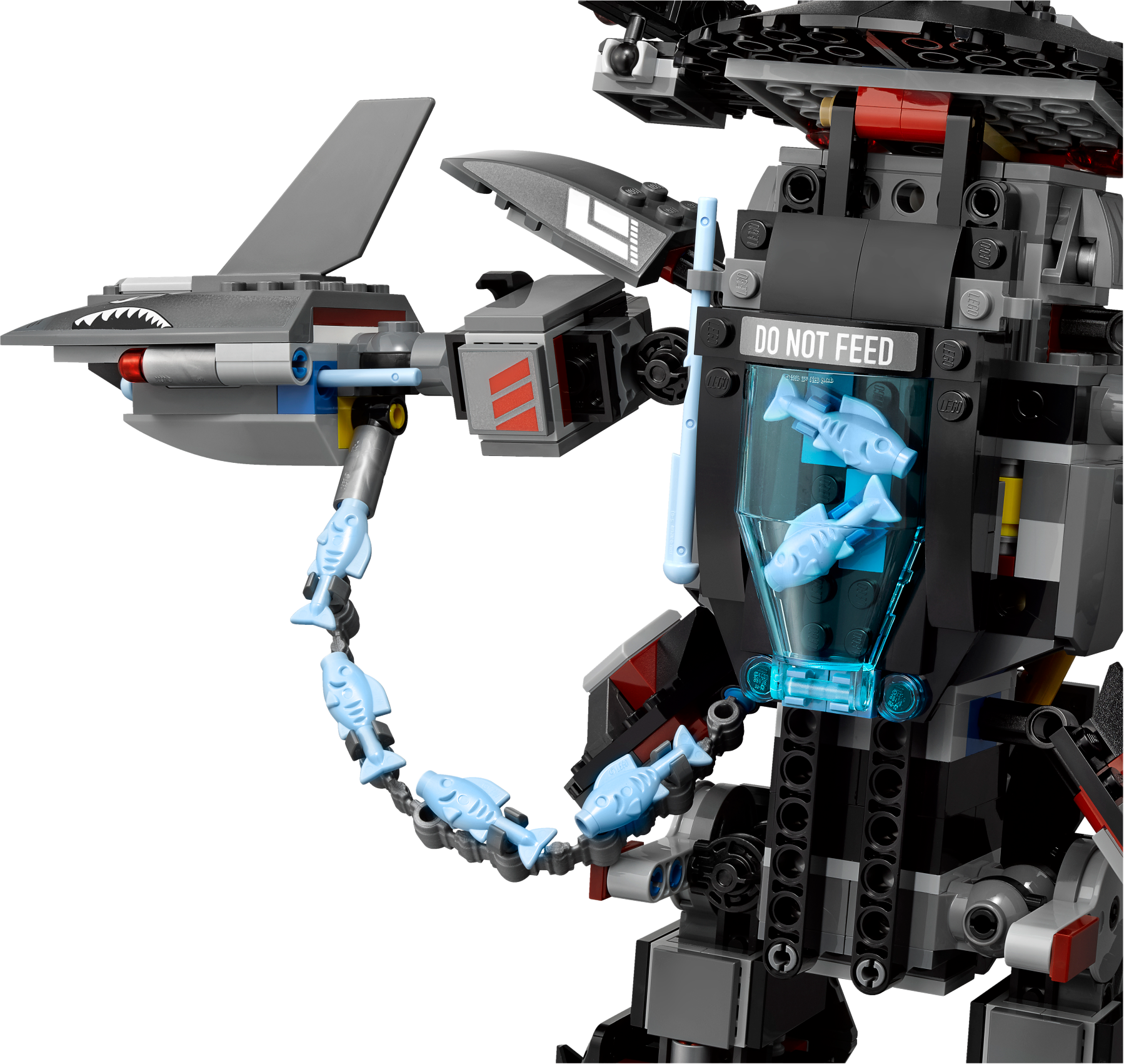 Help Lloyd protect civilian Pat from attack by Garma Mecha Man with this awesome THE LEGO® NINJAGO® MOVIE™ set. This huge and highly posable mech features an opening minifigure cockpit for Garmadon, spring-loaded shark blaster, ammo belt and a fish tank. Includes 4 minifigures with assorted weapons—including Garmadon’s laser-style pointer and Lloyd’s tasseled sword—to bolster the battle role-play possibilities. Includes 4 minifigures: Garmadon, Great White, Lloyd and Pat. Garma Mecha Man features an opening minifigure cockpit, posable head, arms and legs, spring-loaded shark blaster, ammo belt with shark-shaped ammo elements, and an opening translucent-blue fish tank with mini-shark elements. Weapons include Garmadon's laser-style pointer and 4 katanas, Great White's fish spear and Lloyd's tasseled sword. Also includes Pat's camera. Recreate and role-play exciting THE LEGO® NINJAGO® MOVIE™ scenes. Garma Mecha Man measures over 11” (30cm) high, 5” (14cm) long and 9” (24cm) wide.