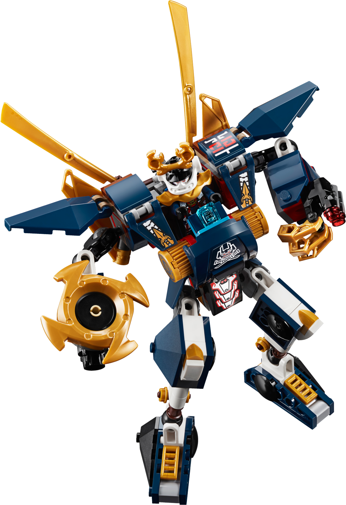 Samurai X Mech features an opening minifigure cockpit, posable arms and legs, gripping hands, dual stud shooter, spinning blade and a detachable Samurai X blade.