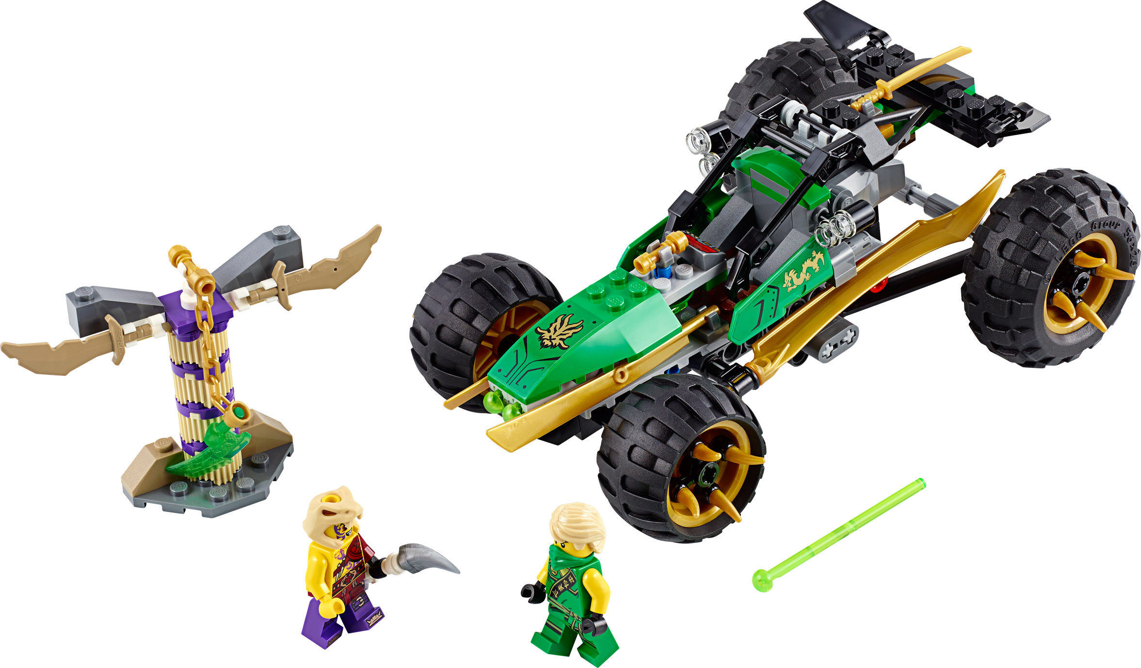 Overpower the Anacondrai with the awesome Jungle Raider! Kapau has chained the Jade Blade to a stone pillar deep in the jungle and is standing guard with his double-bladed dagger. Place Lloyd in the cockpit of the Jungle Raider and begin a mission to claim the precious blade. The built-in suspension and big rubber tires makes driving over rough jungle terrain a breeze. Aim the powerful spring-loaded dual shooter at Kapau and the stone pillar. Overcome the Ancondrai warrior and unchain the Jade Blade! Includes 2 minifigures with assorted weapons: Lloydand Kapau. Includes 2 minifigures with assorted weapons: Lloyd and Kapau Jungle Raider features an opening cockpit with roll bar, big wheels with rubber tires and gold spikes, built-in suspension, spring-loaded dual shooter, Ninja details and huge gold blade details Also includes Anacondrai stone pillar with 2 Anacondrai swords, gold chain and the Jade Blade Weapons include Lloyd’s sword and Kapau’s double-bladed dagger Lloyd is wearing his unique tournament outfit Secure Lloyd in the cockpit with the roll bar Power over rough jungle terrain with the big rubber tires and built-in suspension Target Kapau with the dual shooter Unchain the Jade Blade from the stone pillar Recreate your favorite scenes from the NINJAGO Masters of Spinjitzu™ TV show Jungle Raider measures over 2” (7cm) high, 7” (19cm) long and 5” (14cm) wide Anacondrai stone pillar measures 2” (6cm) high, 3” (10cm) wide and under 1” (2cm) deep