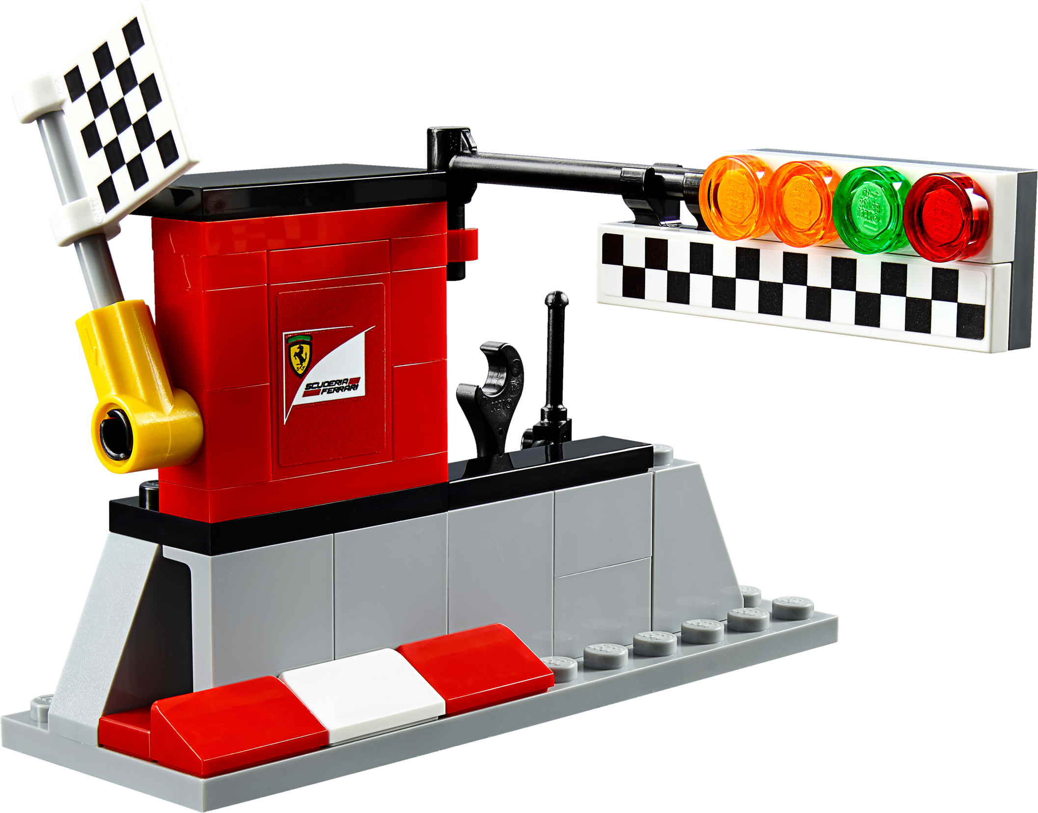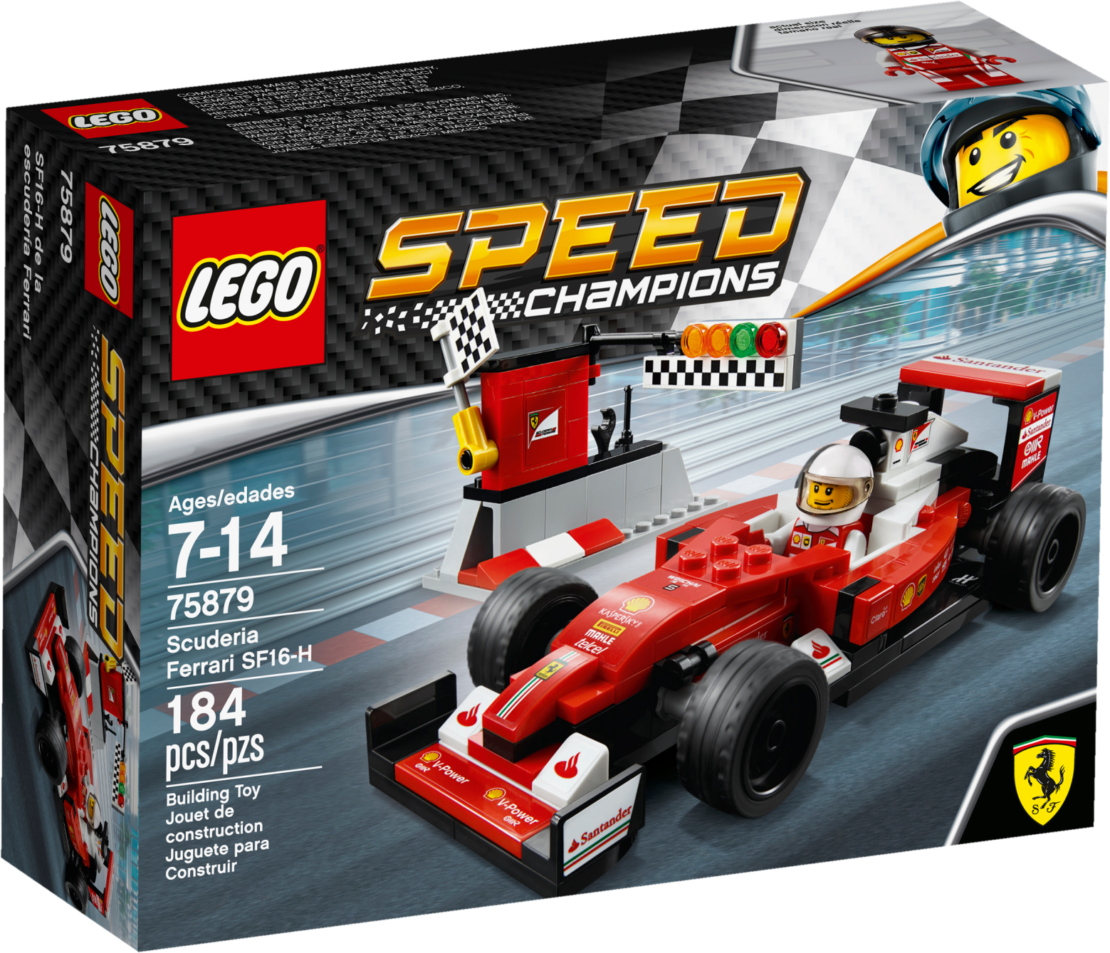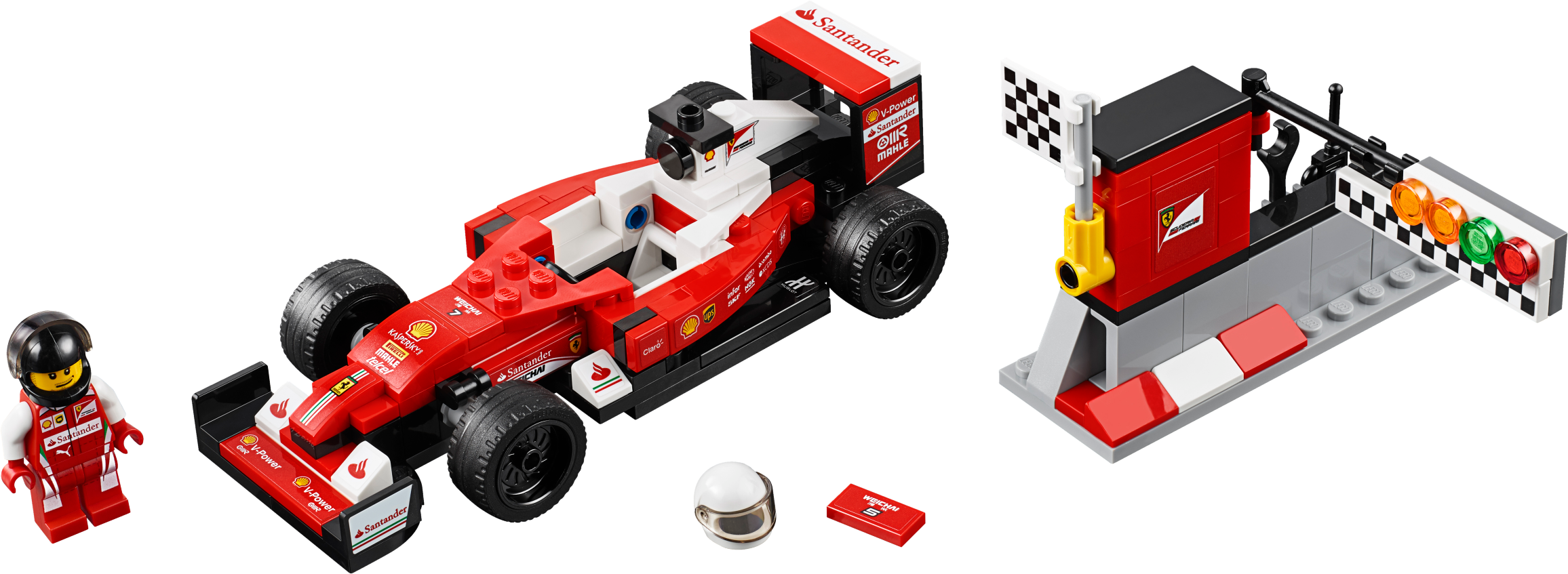 Power to victory with this buildable LEGO® Speed Champions version of the Scuderia Ferrari SF16-H race car, featuring wheels with rubber tires and two interchangeable race numbers so you can pretend to be different Scuderia Ferrari drivers. The set also includes a pit wall with start-finish-line, pit monitor element and checkered flag with waving function, plus wrench and walkie-talkie elements to maximize the role-play fun. Includes a minifigure.Includes a Ferrari racing driver minifigure.The race-ready, buildable Scuderia Ferrari SF16-H features a minifigure cockpit, wheels with rubber tires, two interchangeable race numbers, plus authentic design details and race-graphics stickers.Swap the race numbers on the car to play as different Ferrari drivers.Also includes a pit wall featuring a start-finish line with translucent green, orange and red light elements, pit monitor element and checkered flag with waving function.Accessory elements include two racing driver helmets, wrench and a walkie-talkie.This set offers an age-appropriate build and play experience for ages 7+.Scuderia Ferrari SF16-H measures over 1” (4cm) high, 5” (14cm) long and 2” (6cm) wide.Pit wall measures over 2” (7cm) high, 3” (9cm) wide and 3” (9cm) deep.