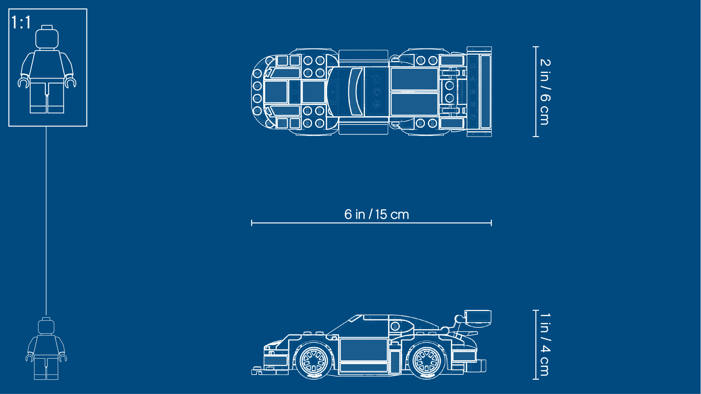 Porsche 911 Turbo 3.0 measures over 1” (4cm) high, 5” (15cm) long and 2” (6cm) wide.