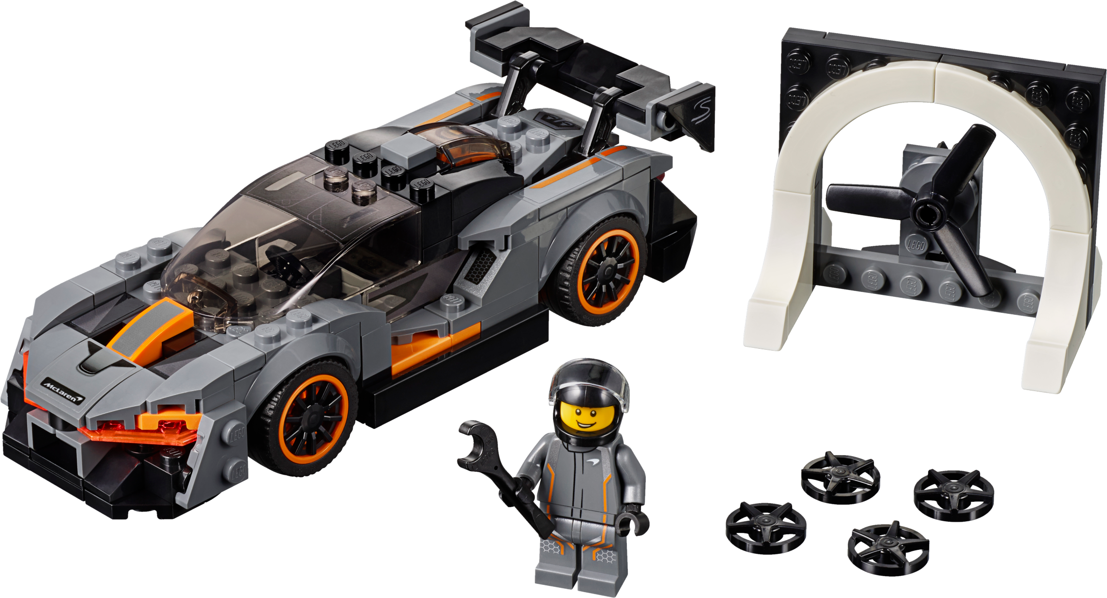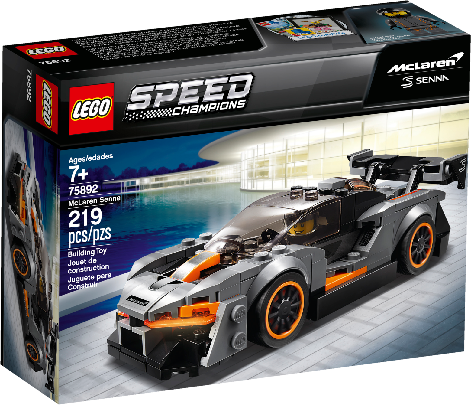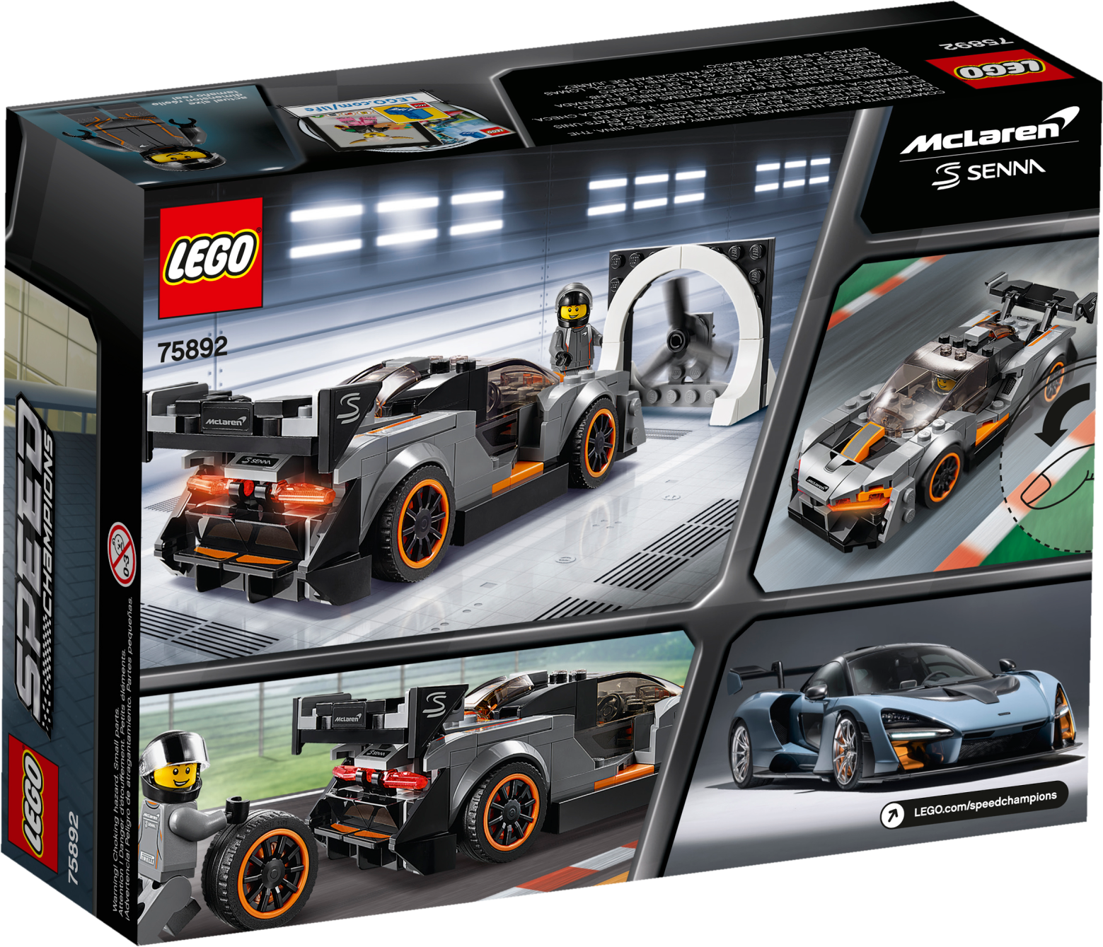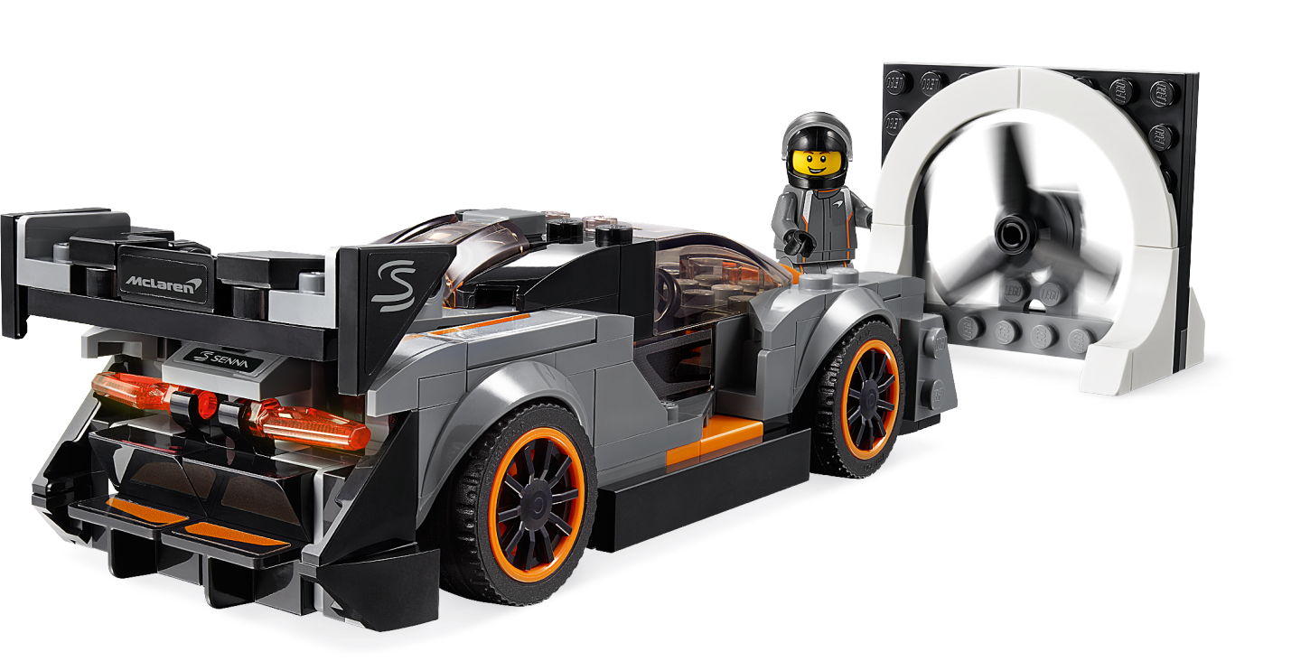 Drive on the edge with the LEGO® Speed Champions 75892 McLaren Senna model car toy! This cool LEGO version of the road car inspired by the late, great and legendarily daring racing driver Ayrton Senna features a minifigure cockpit, removable windshield, interchangeable rims, and McLaren and Senna logo stickers. This super toy car for kids comes with a buildable wind tunnel with rotating fan and a McLaren racing driver minifigure to play out car development and fast car racing scenarios. Includes a McLaren racing driver minifigure in a racing suit featuring the McLaren Senna and Pirelli logos. The race-ready, buildable McLaren Senna features a minifigure cockpit, removable windshield, wheels with rubber tires and interchangeable rims, rear spoiler, translucent light-style elements, McLaren and Senna logo stickers and authentic design details. Remove the windshield to place the minifigure in the car. Also includes a buildable wind tunnel with a rotating fan. Accessory elements include the McLaren racing driver’s helmet and a spanner. This car playset offers endless creative fun for car-loving kids. McLaren Senna toy car measures over 1” (4cm) high, 5” (15cm) long and 1” (5cm) wide. Wind tunnel measures over 1” (5cm) high, 2” (6cm) wide and 1” (4cm) deep.