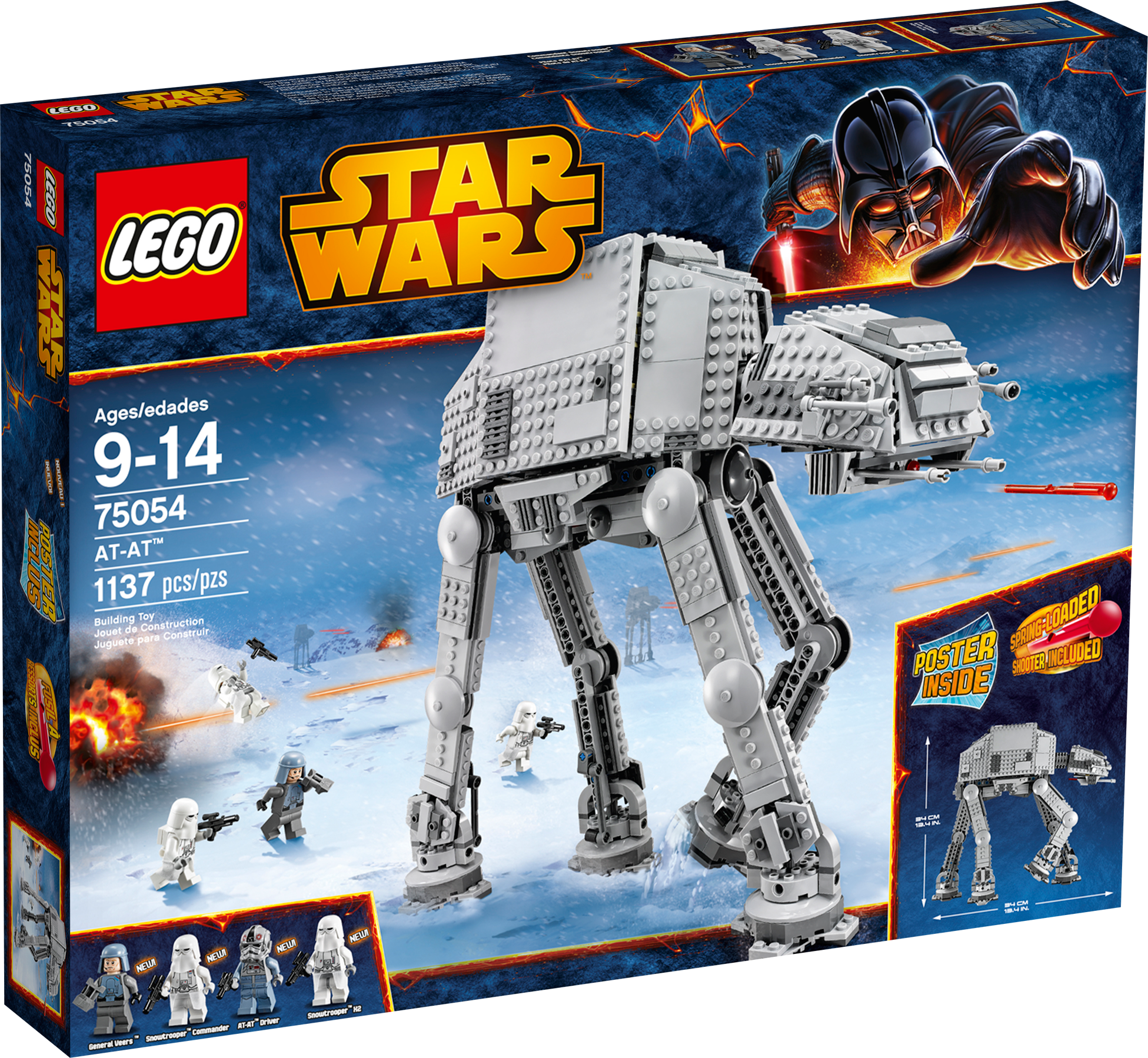 Who can stop the Empire’s intimidating AT-AT™ – All Terrain Armored Transport – walker? Seat the AT-AT™ Driver and a Snowtrooper™ in the cockpit of this mighty war machine and move the head to aim the spring-loaded shooters. Pose the legs, trigger the trap door in the body and open up the side hatches for enhanced playability. Collect the 75049 Snowspeeder (sold separately) to play out the classic Battle of Hoth scene from Star Wars: Episode V The Empire Strikes Back!