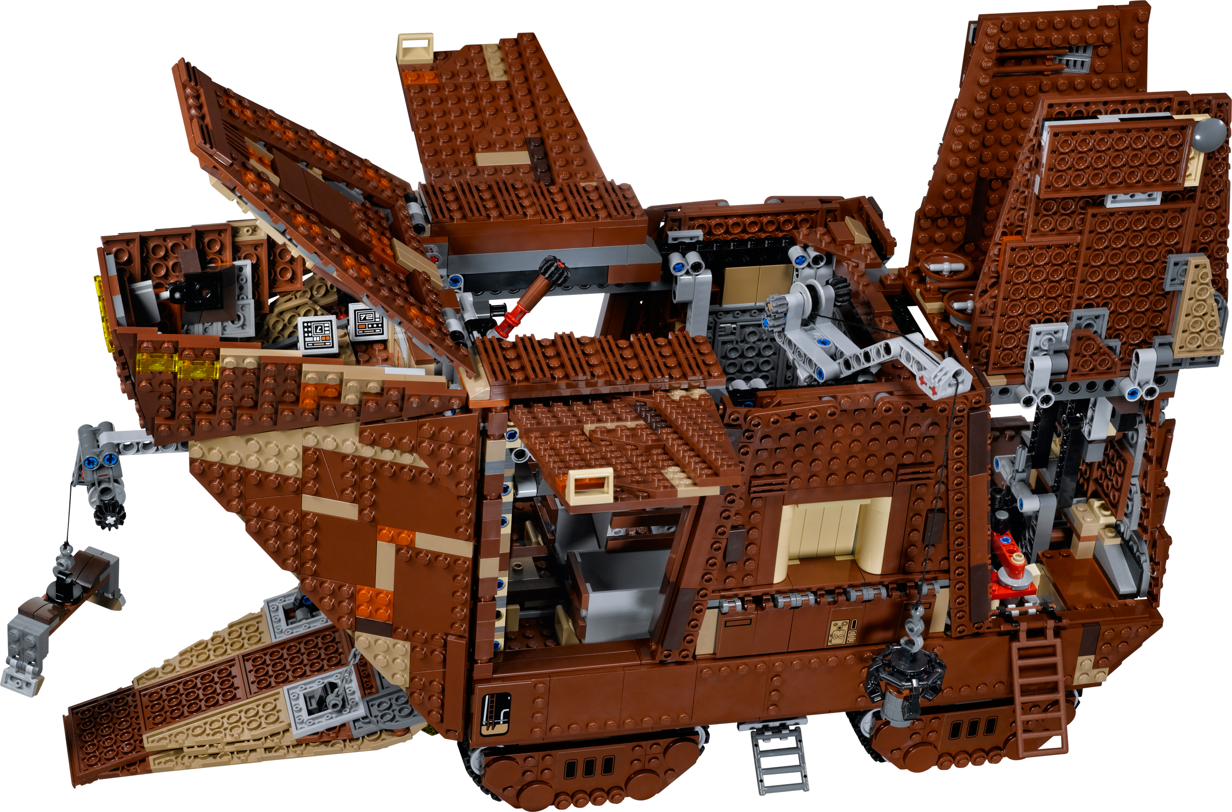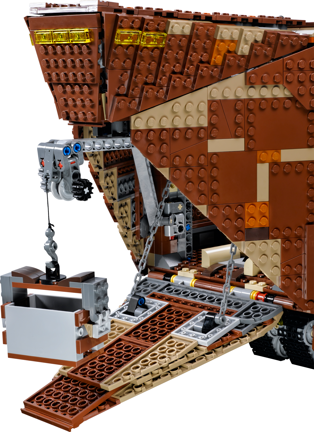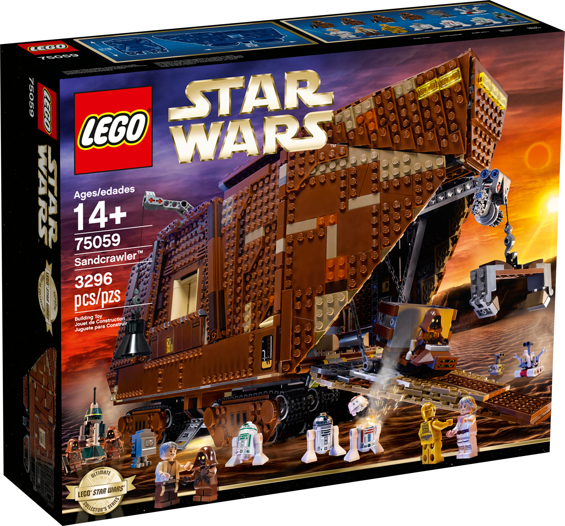 Collect a true icon of the classic Star Wars™ universe – the mighty Sandcrawler™! Recreate unforgettable scenes from Star Wars: Episode IV A New Hope with this amazing LEGO® incarnation of the Jawas’ desert-going vehicle, the Sandcrawler™. Turn the knob at the rear and steer the Sandcrawler into position, lower the front ramp and offload the droids using the 2 working cranes. Luke Skywalker™ and his Uncle, Owen Lars, are sure to be impressed with the selection on offer: there’s R2-D2, an R1-series Droid, an R2 unit, R5-D4™, a Treadwell Droid™, Gonk Droid™ and even C-3PO™. When the sale is complete, lift the side panels and top to reveal more great features inside, like the engine, storage bay, cockpit and more. There’s even a speeder bike for when the Jawas need to venture outside.Includes 7 minifigures: Luke Skywalker™, Uncle Owen, C-3PO™ and 4 Jawas™, plus R2-D2™, R2 unit, an R1-series Droid™, Gonk Droid™, R5-D4™ and a Treadwell Droid™Features 8 tracks with steering function, lowering front ramp, opening side flaps, removable top, working cranes, speeder bike, opening hatch for easy access to the boxes, attachable handles for lifting boxes, and a detailed interior including engine bay, storage bay and cockpitAlso includes stock for old droids and droid partsWeapons include a lightsaber for Luke Skywalker™Sell droids to Luke and his UncleKeep your droids well maintainedPretend to suck R2-D2™ up into the Sandcrawler™ – just like in the movie!Own your own iconic vehicle from the classic Star Wars™ universeRelive classic moments from Star Wars: Episode IV A New HopeMeasures over 9” (24cm) high, 18” (48cm) long and 6” (16cm) wide