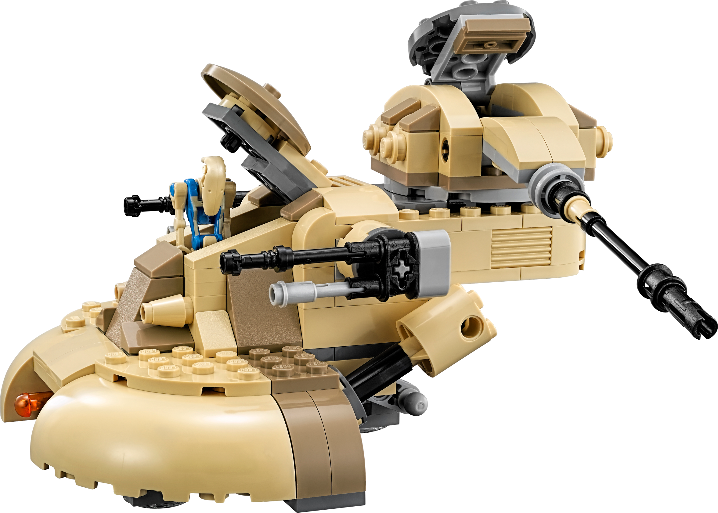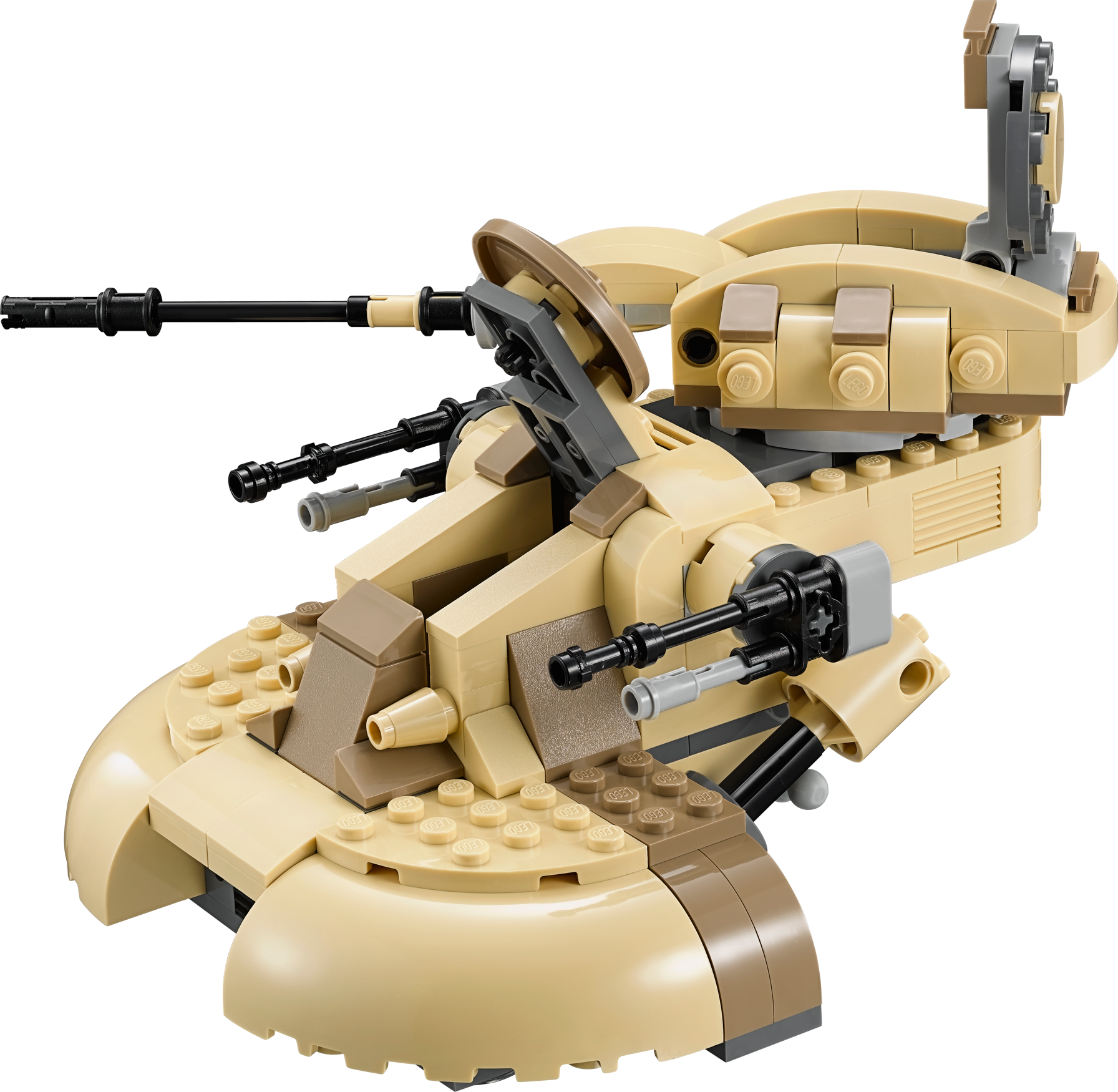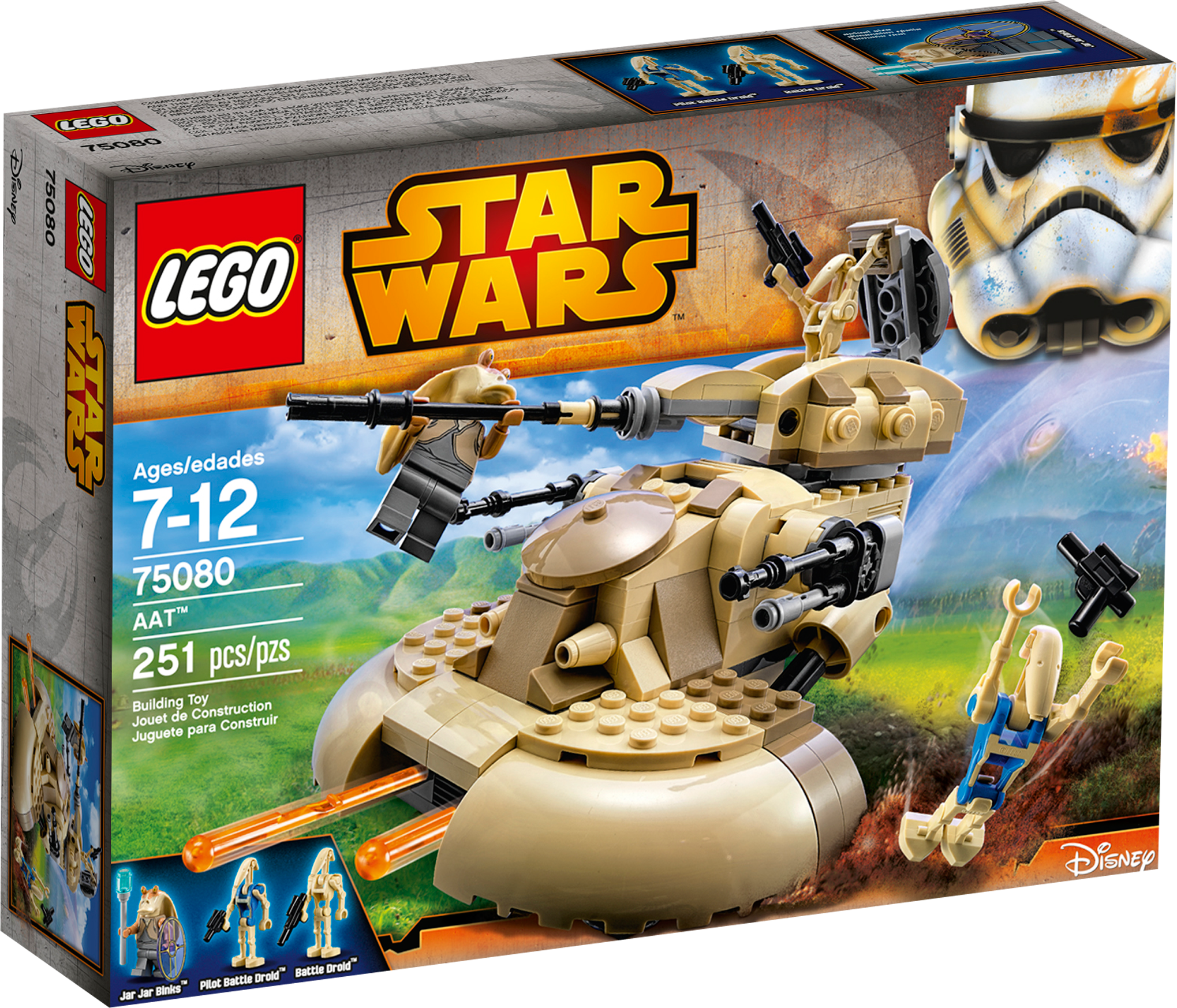 Recreate your own Invasion of Naboo with the armored AAT! As the Trade Federation tightens its grip on Naboo, Jar Jar Binks and his fellow Gungans must do all they can to stop the advancing AAT. Help him dodge the dual spring-loaded shooters, elevating side guns and rotating turret with elevating cannon, and send the armored tank crashing to the ground! Relive classic battle scenes from Star Wars: Episode I The Phantom Menace. Includes a Jar Jar Binks minifigure, plus Battle Droid and Pilot Battle Droid figures with assorted weapons. Includes a Jar Jar Binks minifigure, plus Battle Droid and Pilot Battle Droid figures with assorted weapons Features opening hatches, dual spring-loaded shooters, elevating side guns and a rotating turret with elevating cannon Weapons include a blaster pistol, blaster and Jar Jar Binks’ Gungan staff and shield Fire the spring-loaded shooters! Open the hatches and seat the Battle Droids Take control of the Gungan homeworld Recreate epic scenes from Star Wars: Episode I The Phantom Menace AAT measures over 3” (9cm) high, 6” (16cm) long and 4” (12cm) wide