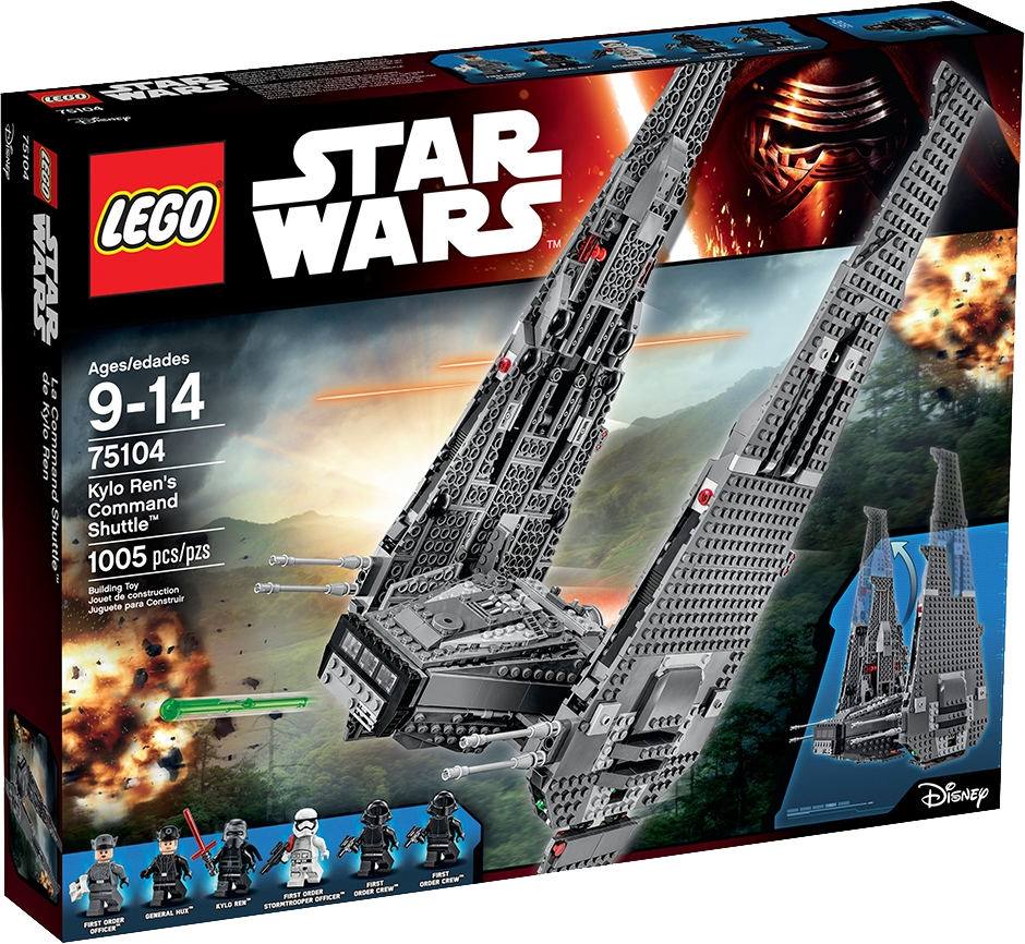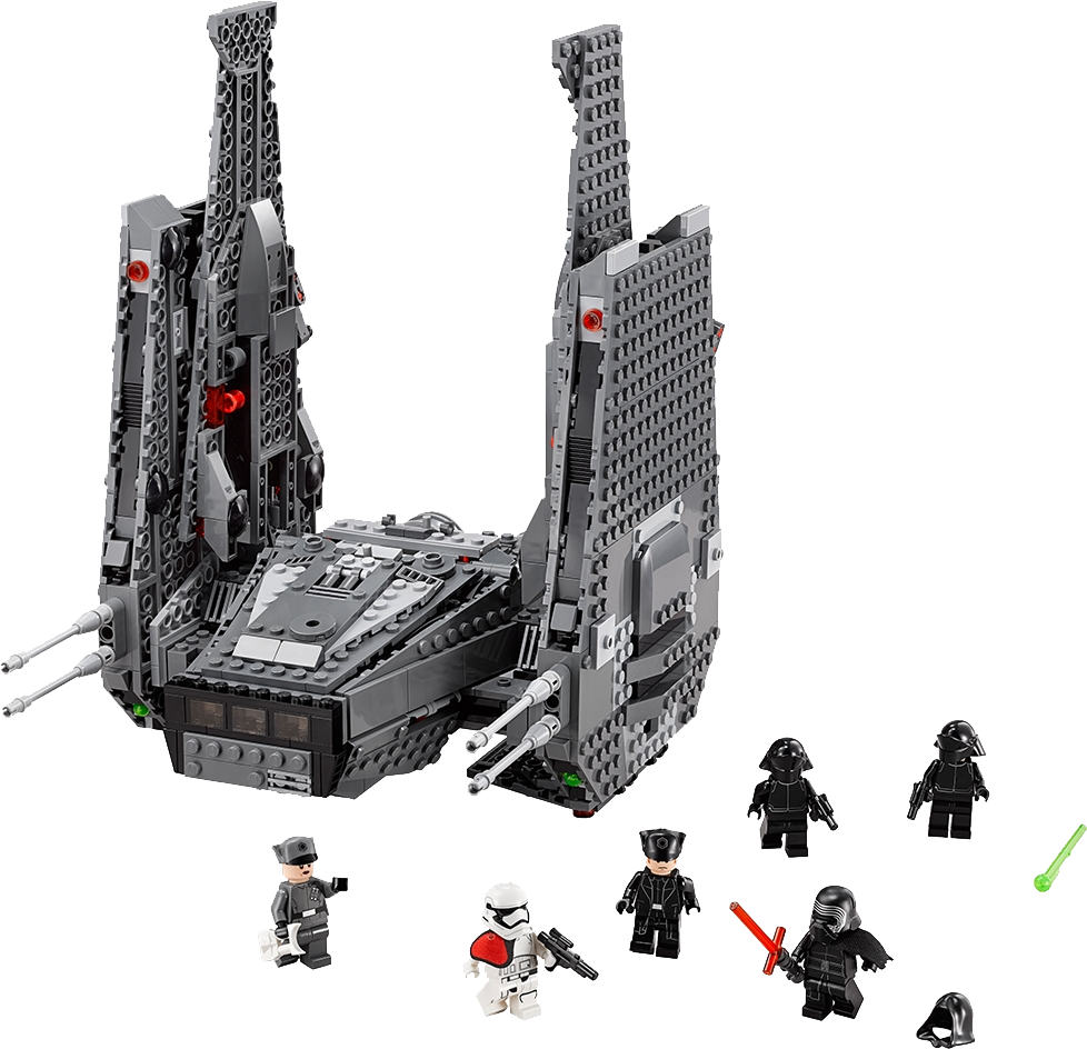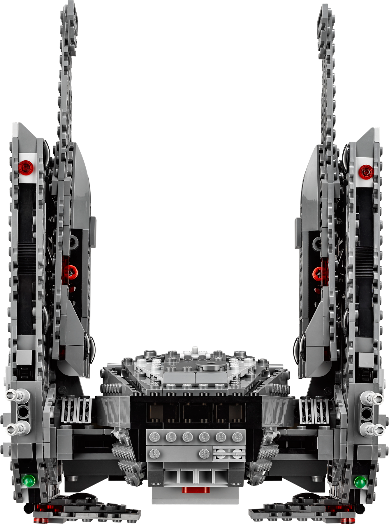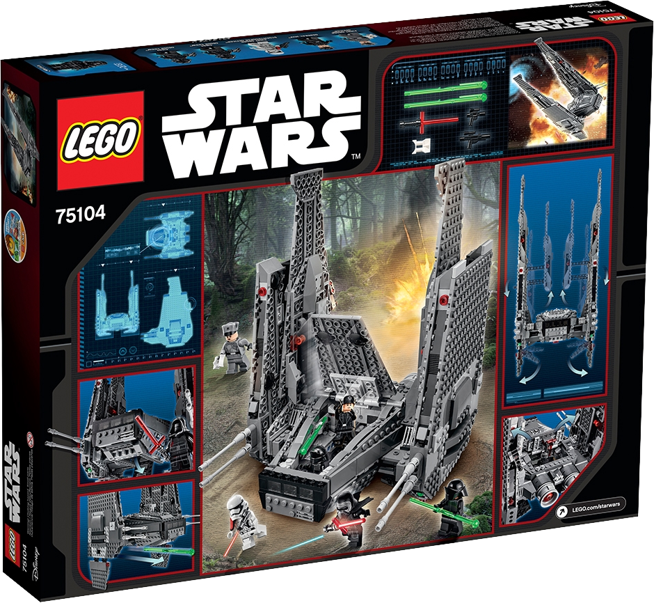 Enter the battle with Kylo Ren’s Command Shuttle! Enter the battle with Kylo Ren’s personal Command Shuttle! This fantastic, highly detailed starship has loads of features, including opening front, rear and bottom storage bays; wing-mounted, spring-loaded shooters and detachable weapon racks. And when you’re ready for even more action, activate the amazing extending wing function! It’s time to hunt down the enemy and play out your own great scenes from Star Wars: The Force Awakens! Includes 6 minifigures with assorted weapons and accessories: Kylo Ren, General Hux, First Order Officer, 2 First Order Crew and a First Order Stormtrooper Officer. Includes 6 minifigures with assorted weapons and accessories: a Kylo Ren, General Hux, First Order Officer, 2 First Order Crew and a First Order Stormtrooper Officer Features opening front, rear and bottom storage bays; wing-mounted, spring-loaded shooters and detachable weapon racks, and amazing extending wing function Weapons include 2 blaster pistols, blaster and Kylo Ren’s Lightsaber Accessories include 4 helmets and an electrobinoculars element Activate the amazing extending wingfunction! Launch the spring-loaded shooters! Access the storage bays Rearm with the detachable weapon racks Recreate fantastic scenes from Star Wars: The Force Awakens The perfect addition to any LEGO® Star Wars collection Measures over 11” (28cm) high, 8” (22cm) long and 7” (20cm) wide with wings retracted, and over 15” (40cm) high with wings extended