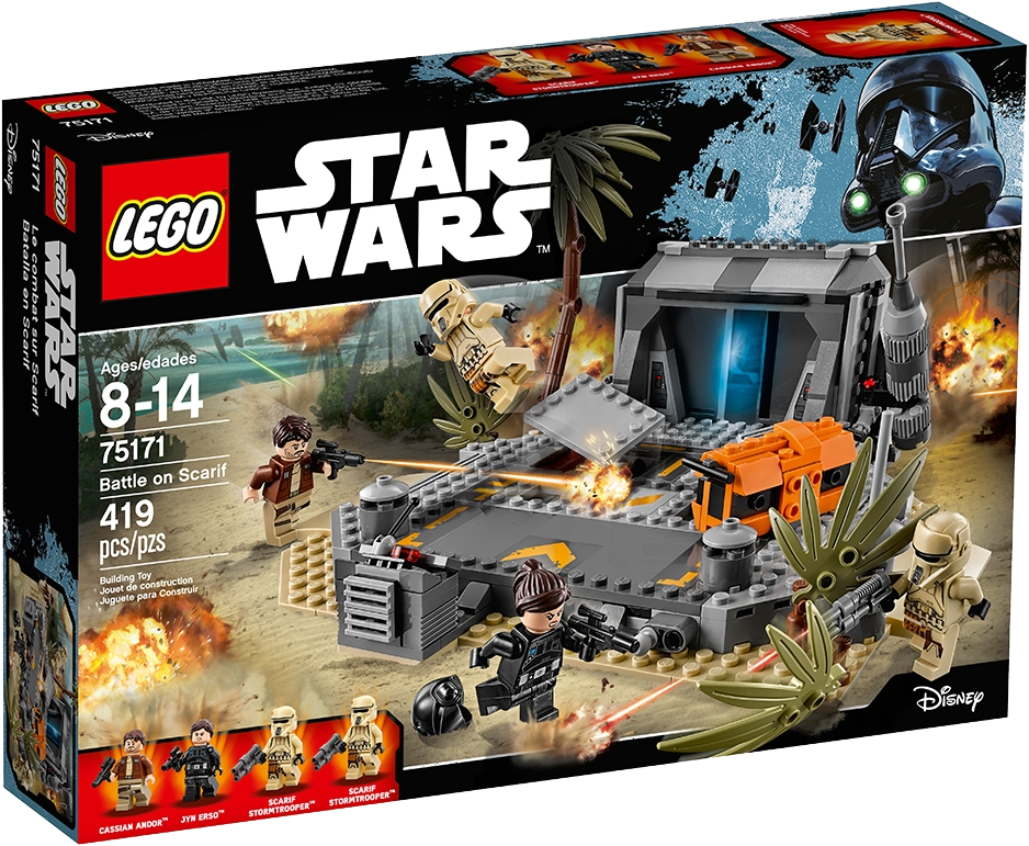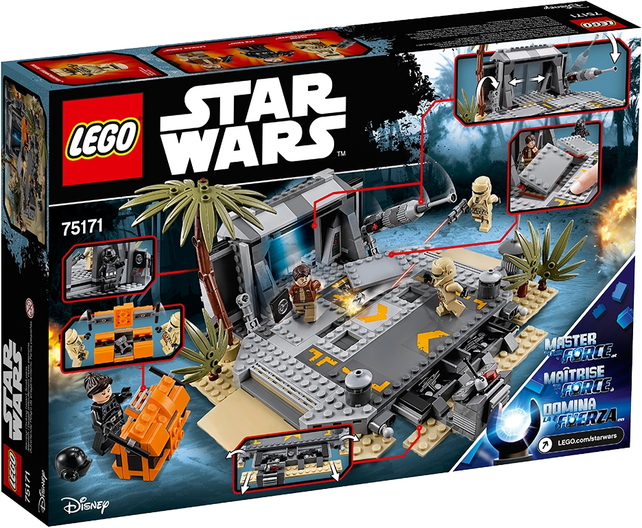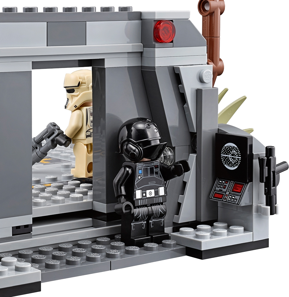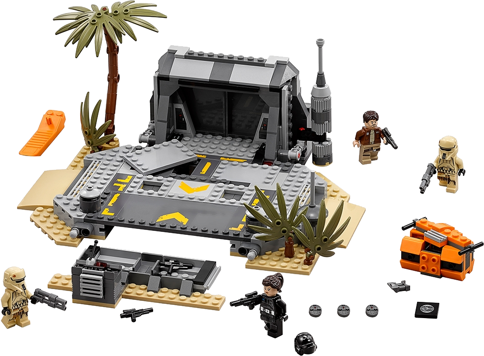Play out epic scenes from the blockbuster movie, Star Wars: Rogue One, on a mission to recover the top-secret Death Star plans from the heavily fortified beach bunker on planet Scarif. This feature-filled set includes a hidden weapons stash, exploding floor panels, sliding bunker doors with locking function, control panel, opening orange crate and the top-secret plans to the Empire’s Death Star. This set also includes four minifigures. Includes four minifigures: Jyn Erso, Cassian Andor and two Scarif Stormtroopers. Features a hidden weapons stash, exploding floor panels, sliding bunker doors with locking function, control panel, orange crate and the secret Death Star plans. Turn the handles to reveal the hidden weapons stash. Sneak past the exploding floor panels. Topple the tower to unlock the sliding bunker doors. Grab the plans and make off with the Empire's best-kept secret! Weapons include four blasters and two special blasters. Accessory elements include electrobinoculars and three thermal detonators. Play out exciting scenes from the blockbuster movie Star Wars: Rogue One. This set offers an age-appropriate build and play experience for ages 8-14. Measures over 3” (10cm) high, 9” (25cm) wide and 8” (22cm) deep.