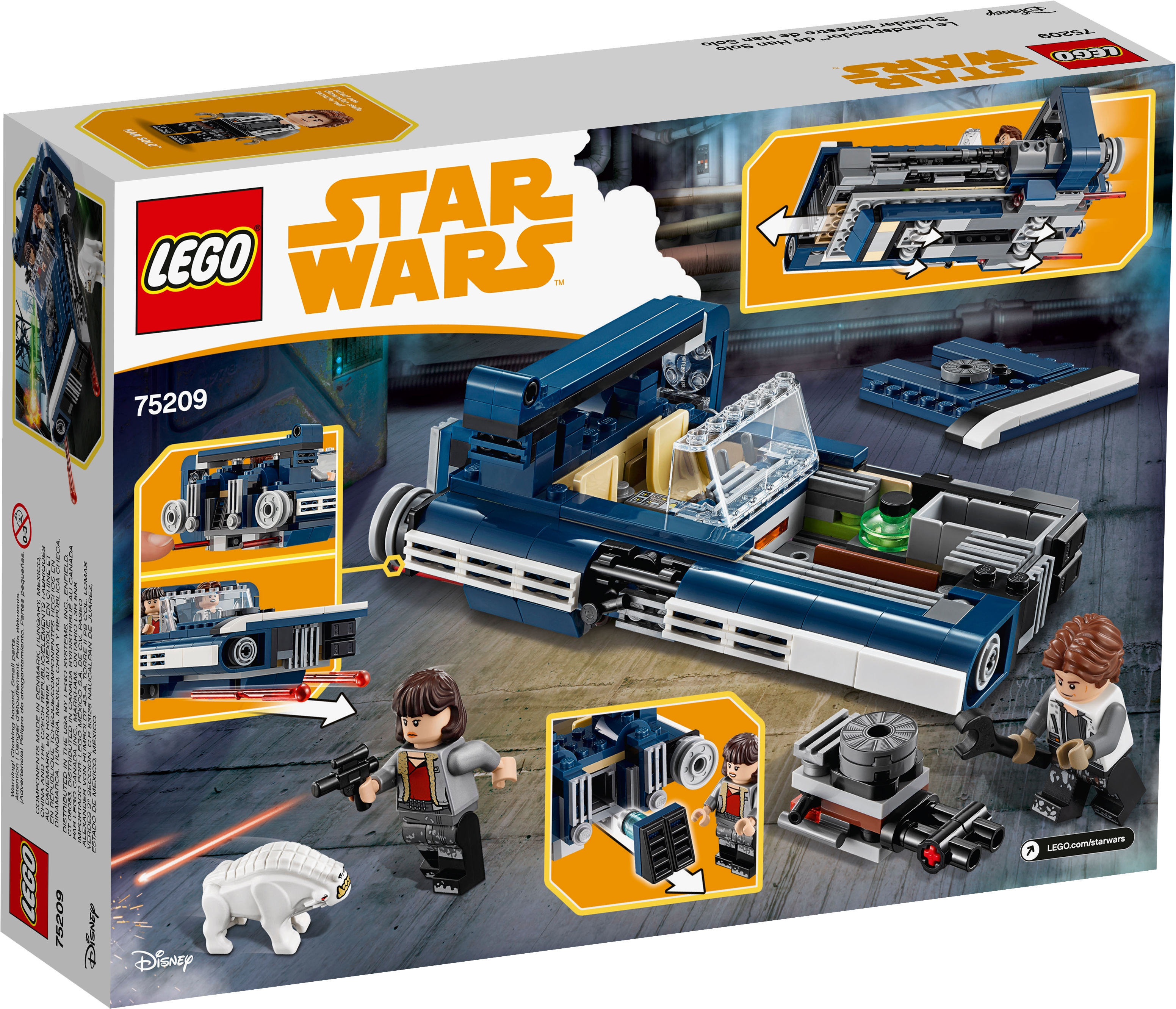 Recreate high-speed LEGO® Star Wars action scenes from the Han Solo movie with Han’s Landspeeder. Featuring an open 2-minifigure cockpit, opening hood with storage compartment, removable engine, rear storage compartment with secret cargo, hidden wheels for a hover effect and 2 spring-loaded shooters, this action-packed Star Wars toy also includes a Corellian Hound figure for Han and Qi'ra to battle. Includes Han Solo and Qi’ra minifigures, plus a Corellian Hound figure. Features an open 2-minifigure cockpit, opening hood with ammo and accessory storage, removable engine, rear storage compartment with secret cargo, hidden wheels for a hover effect, and 2 spring-loaded shooters. Remove the engine for a much-needed overhaul. Also includes 2 blaster pistols. Play out epic Han Solo movie chase scenes with 75210 Moloch's Landspeeder! This LEGO® Star Wars toy is suitable for ages 7-12. Measures over 1” (5cm) high, 6” (16cm) long and 3” (10cm) wide.
