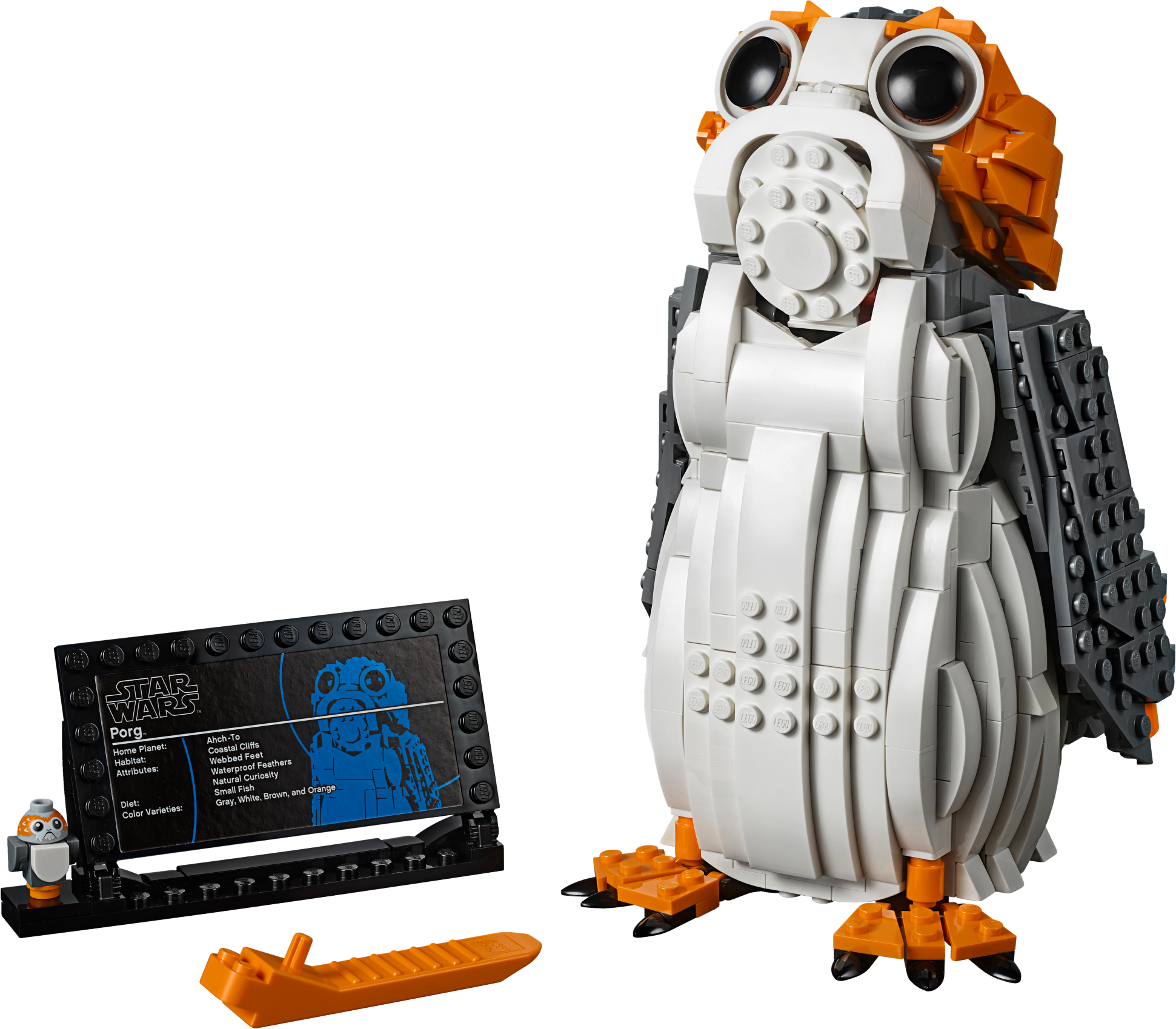 Own an unmistakable character from Star Wars: The Last Jedi with this LEGO® Star Wars 75230 Porg! This faithfully detailed Star Wars toy includes intricate feather detailing, authentic colors and an opening mouth and flapping wings when you press the tail. The set also comes with a display stand with decorative fact plaque and extra porg mini build, to form the perfect centerpiece for your LEGO collection. Features authentic detailing, an opening mouth and flapping wings. Also includes a display stand with decorative fact plaque and an extra porg mini build. Porg without stand stands over 7” (19cm) high. Display stand measures approx. 2” (6cm) high and 1” (3cm) deep, and over 4” (11cm) wide. Relive fun porg adventures from Star Wars: The Last Jedi.