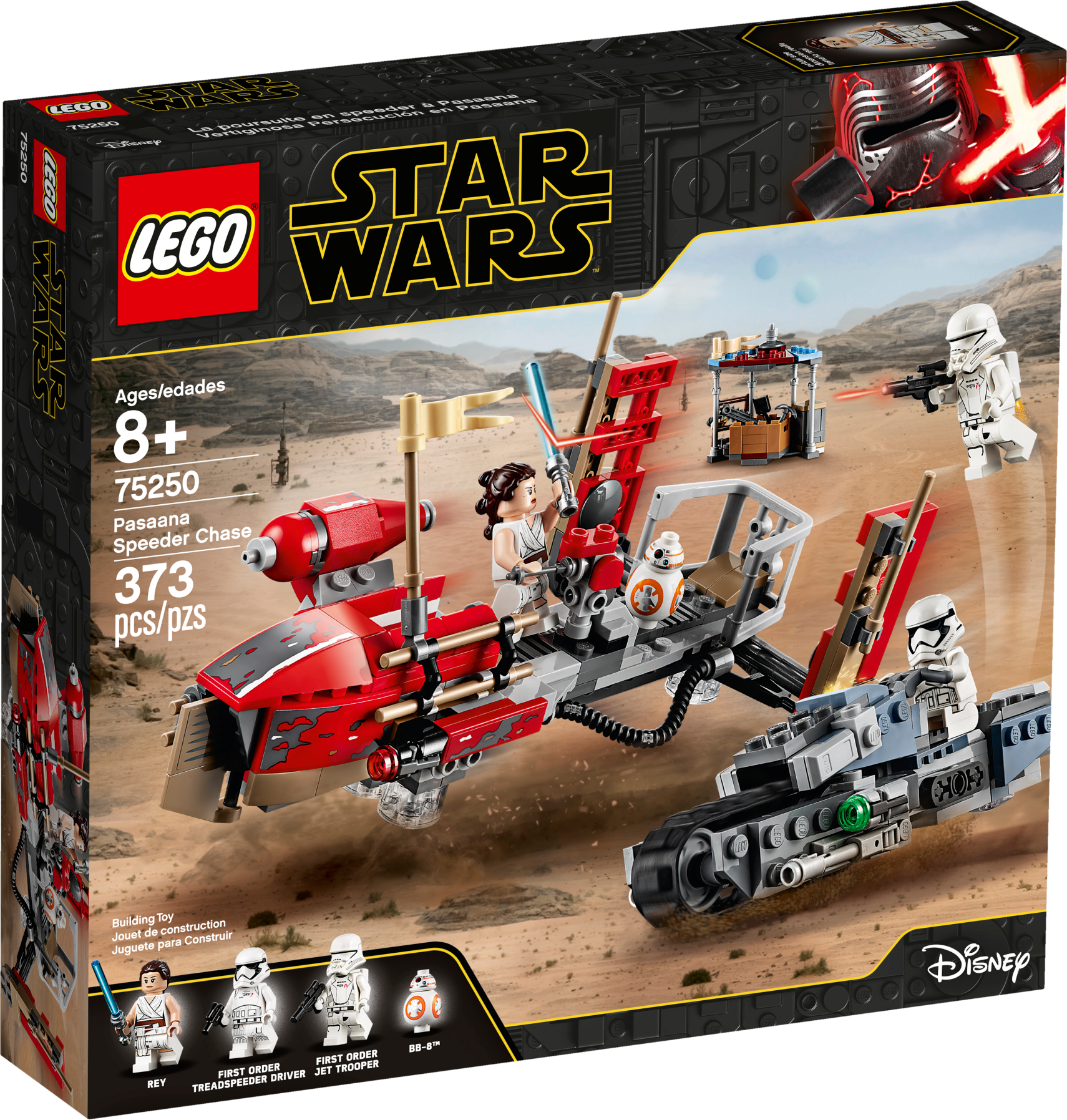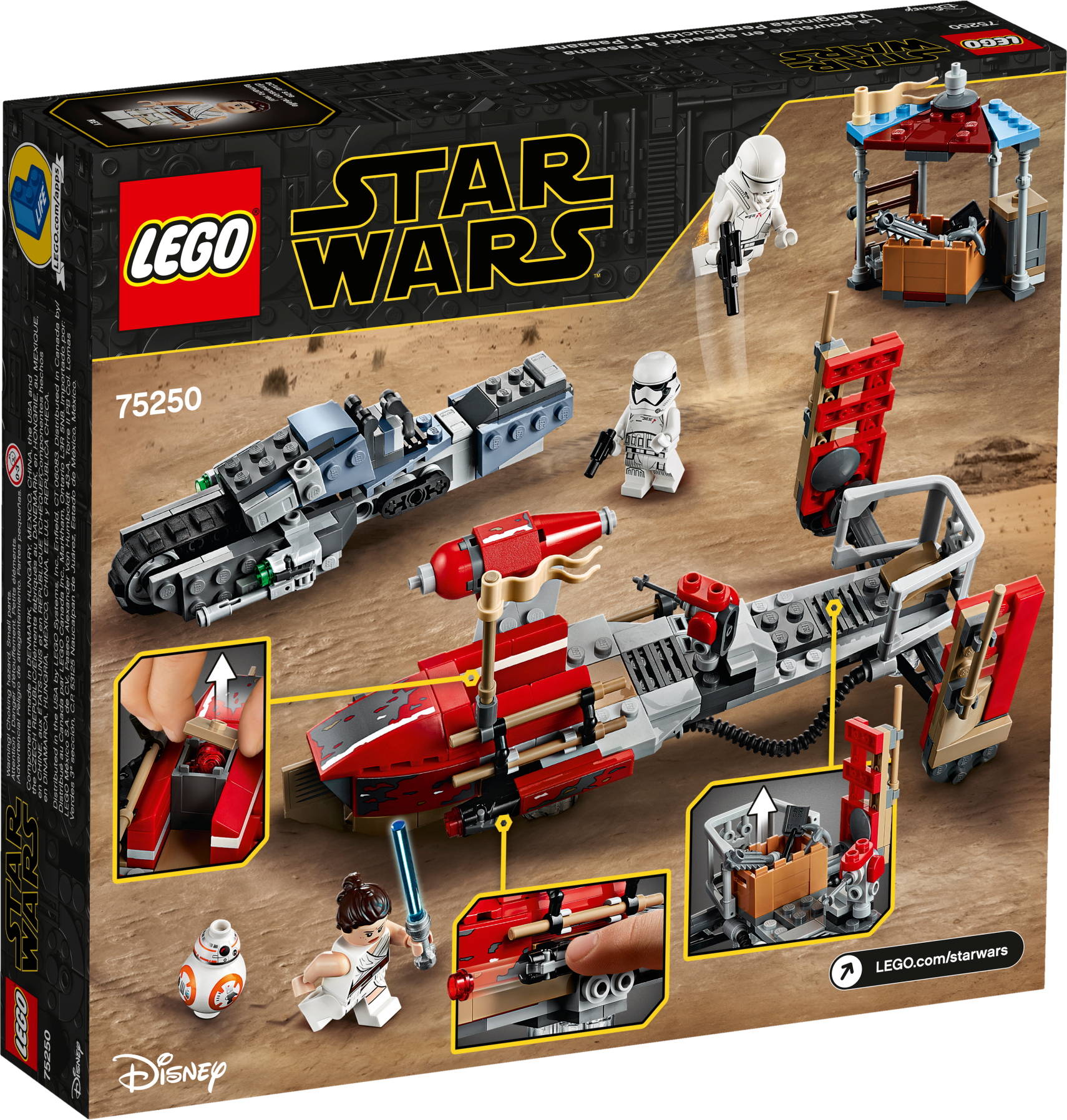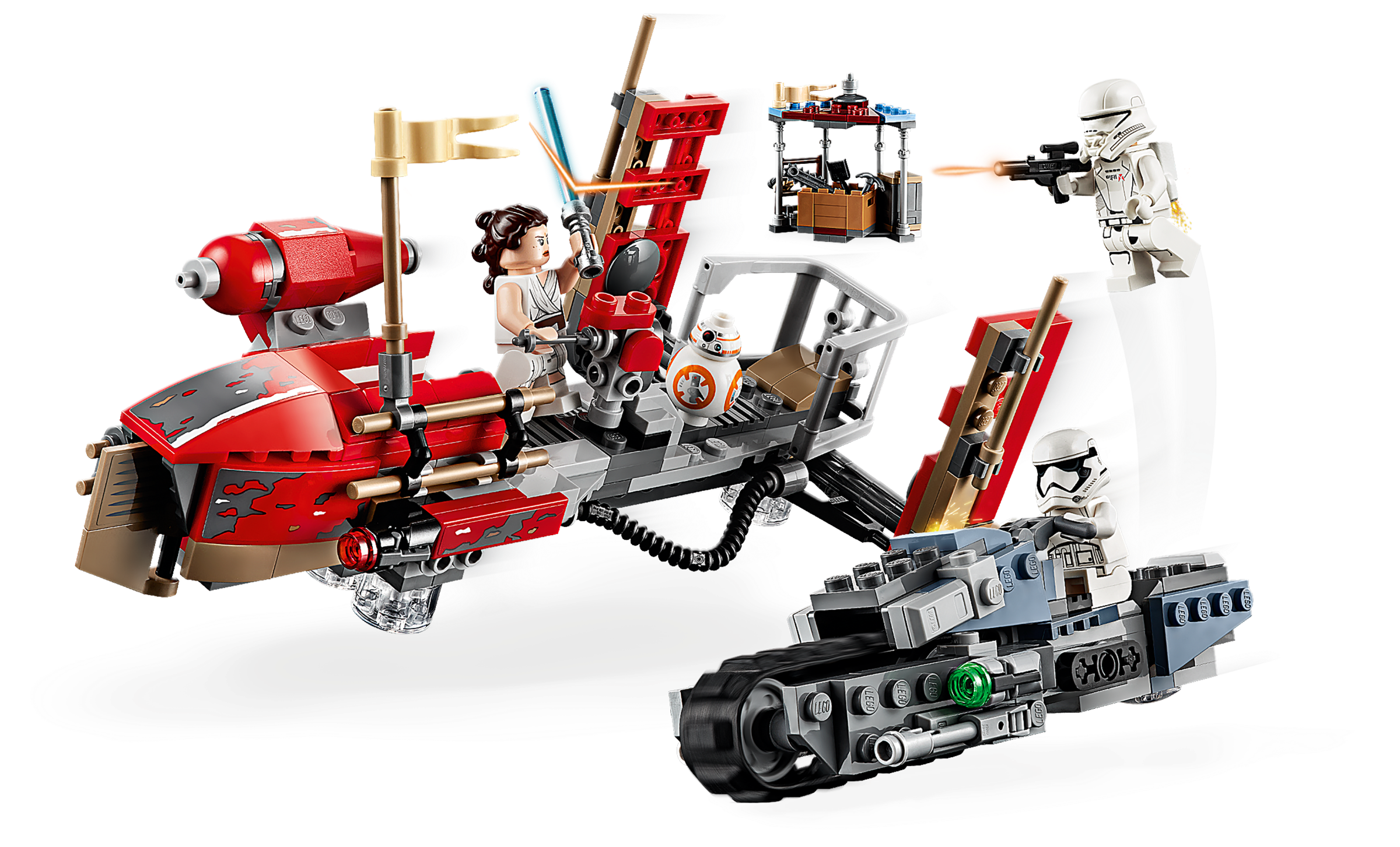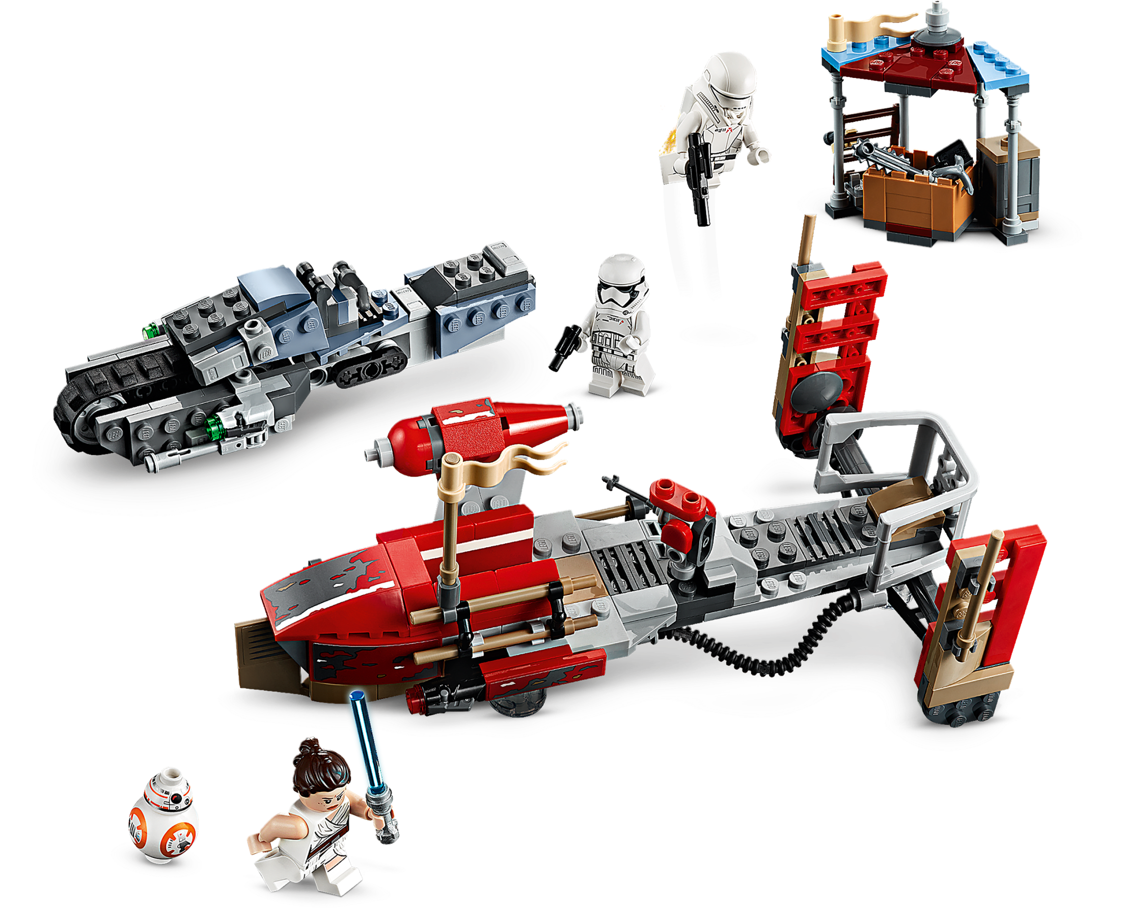 Inspire action-packed play with these 2 LEGO® Star Wars™ construction toys from the Star Wars: The Rise of Skywalker movie. Creative kids and collectors will love the fun details, like the treadspeeder’s tank track, side-mounted stud shooters and a transparent stand for a ‘hovering' look. This fun set also includes Star Wars characters Rey, a First Order Jet Trooper and a First Order Treadspeeder Driver, plus a BB-8 droid LEGO figure. Comes with exciting LEGO® Star Wars™ characters including 3 minifigures – Rey, First Order Jet Trooper and a First Order Treadspeeder Driver – plus a BB-8 droid LEGO figure. Transport speeder has space for Rey and BB-8 and features a transparent stand for an authentic ‘hovering' look. Treadspeeder has a seat for a trooper plus a rubber tank track and 2 side-mounted stud shooters for exciting role-play action. Molded rocket element and Jet Trooper rocket elements are new for October 2019. Weapons include Rey’s blue Lightsaber, the Treadspeeder Driver’s blaster pistol and the Jet Trooper’s blaster. Recreate exciting moments from the Star Wars: The Rise of Skywalker movie with this fun LEGO® Star Wars™ kids’ toy. This set makes a great birthday gift, Christmas present or just a Star Wars™ gift for any occasion. Transport speeder measures over 3” (10cm) high, 7” (19cm) long and 4” (11cm) wide. Treadspeeder measures over 1” (4cm) high, 5” (15cm) long and 2” (6cm) wide.