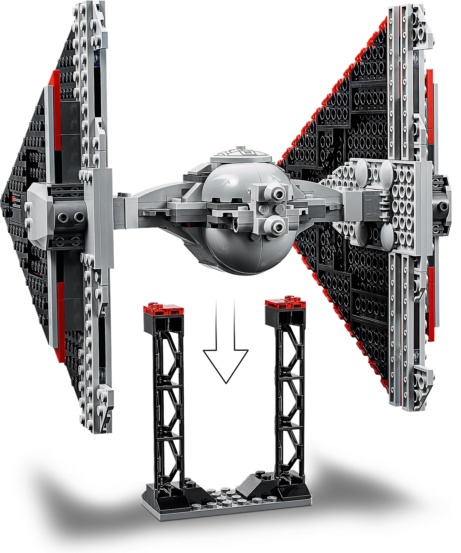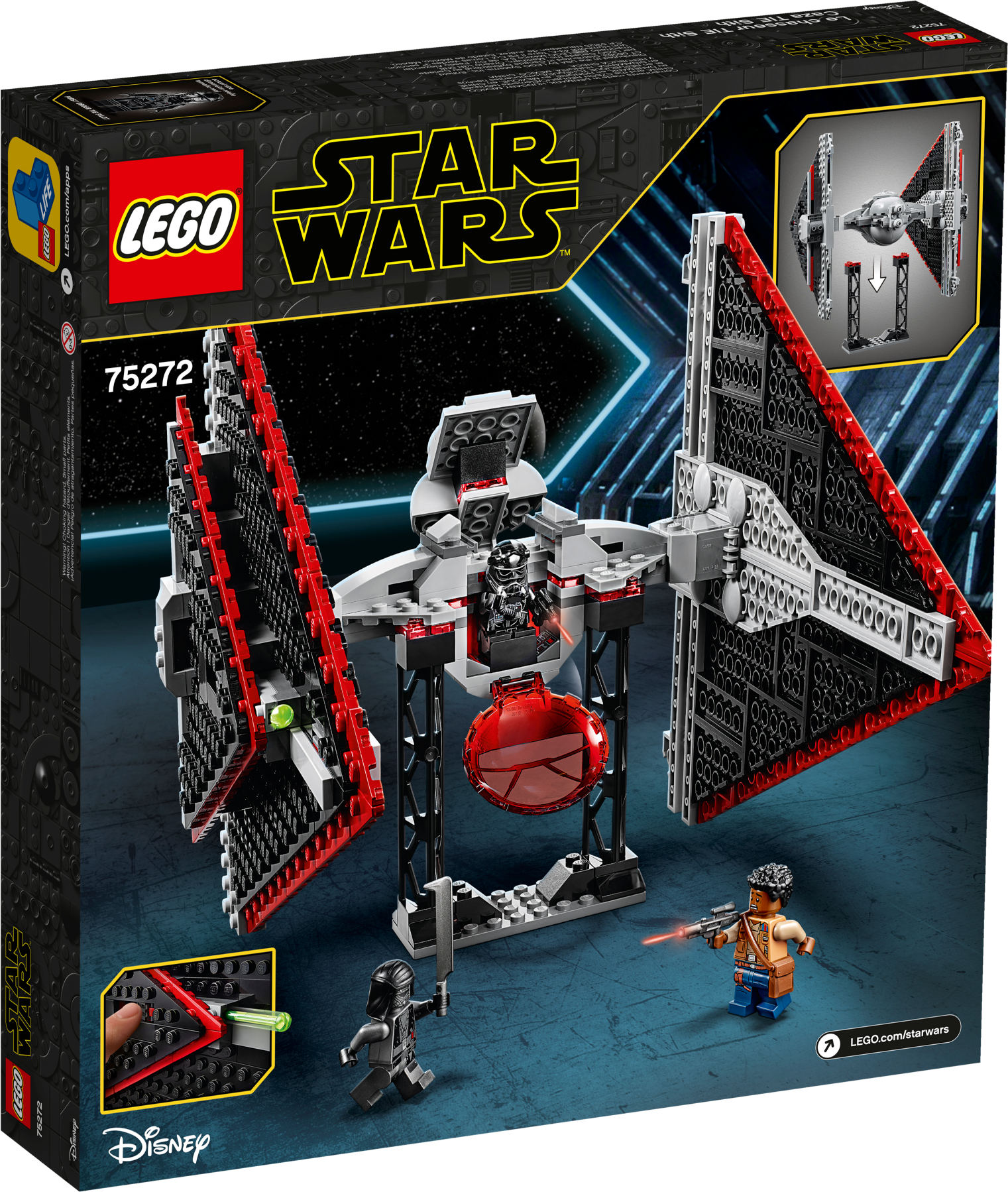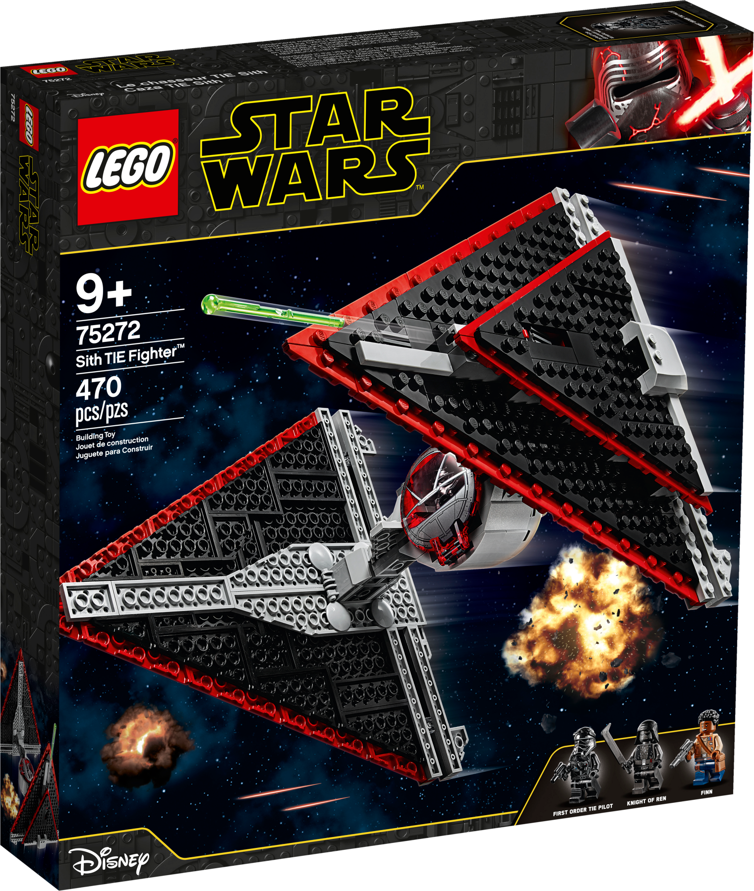 Open up a galaxy of adventures for youngsters with this super-sleek LEGO® brick model (75272) of the Sith TIE Fighter from Star Wars: The Rise of Skywalker! It has a minifigure cockpit so kids can pretend to be a First Order TIE fighter pilot firing the spring-loaded shooters. There's also a docking tower to recreate launch and landing… or to display this striking building toy.First Order vs. Resistance battles!A great gift idea for kids, this building kit also includes 3 minifigures – First Order TIE Pilot, Knight of Ren and Finn – with cool weapons to inspire children to role-play their own First Order vs. Resistance battles. And you can add 75273 Poe Dameron's X-wing Fighter™ for yet more exciting play possibilities.Lots of love for LEGO Star Wars™ sets!The LEGO Group has been recreating iconic starships, vehicles, locations and characters from the Star Wars universe for more than two decades and LEGO Star Wars has become a hugely successful theme. Everyone loves it!Let kids fly First Order pilot missions with this buildable Sith TIE fighter model (75272) featuring a slick, new-for-January-2020 design, just like in Star Wars: The Rise of Skywalker!The TIE fighter features an opening minifigure cockpit and 2 spring-loaded missiles. There's also a docking tower for launch, landing and to display the construction model, plus 3 minifigures for role-play action.The First Order TIE Pilot, Knight of Ren and Finn minifigures have cool weapons, and this set combines brilliantly with Poe Dameron's X-wing Fighter (75273) for epic First Order vs. Resistance battles.This 470-piece set with iconic Star Wars™ characters offers a fun and rewarding building challenge for boys and girls aged 9+, and makes a super gift for kids on birthdays, at Christmas or as a special treat.The Star Wars™ TIE fighter build measures over 8” (21cm) high, 9” (24cm) long and 8” (22cm) wide so it makes a striking construction model to display in any room when not being flown on First Order missions!No batteries are needed with this fun TIE fighter building toy playset – it’s constructed purely from LEGO® bricks and powered by kids’ creativity for unlimited Star Wars™ action adventures.Thinking of buying this Star Wars™ building toy for someone new to LEGO® sets? No problem. It comes with easy-to-follow, printed building instructions. Open the box and away they go!LEGO® Star Wars™ collectible construction toys are great for kids (and adult fans) to build and display, recreate favorite scenes from the saga and create unique stories with iconic Star Wars characters.No need to use the Force to connect or pull apart LEGO® bricks! They meet the highest industry standards to ensure consistency and a perfect, easy connection.LEGO® bricks and pieces are heated, crushed, dropped, twisted and analyzed to ensure that every building set meets the highest safety standards here on earth (and in galaxies far, far away!).
