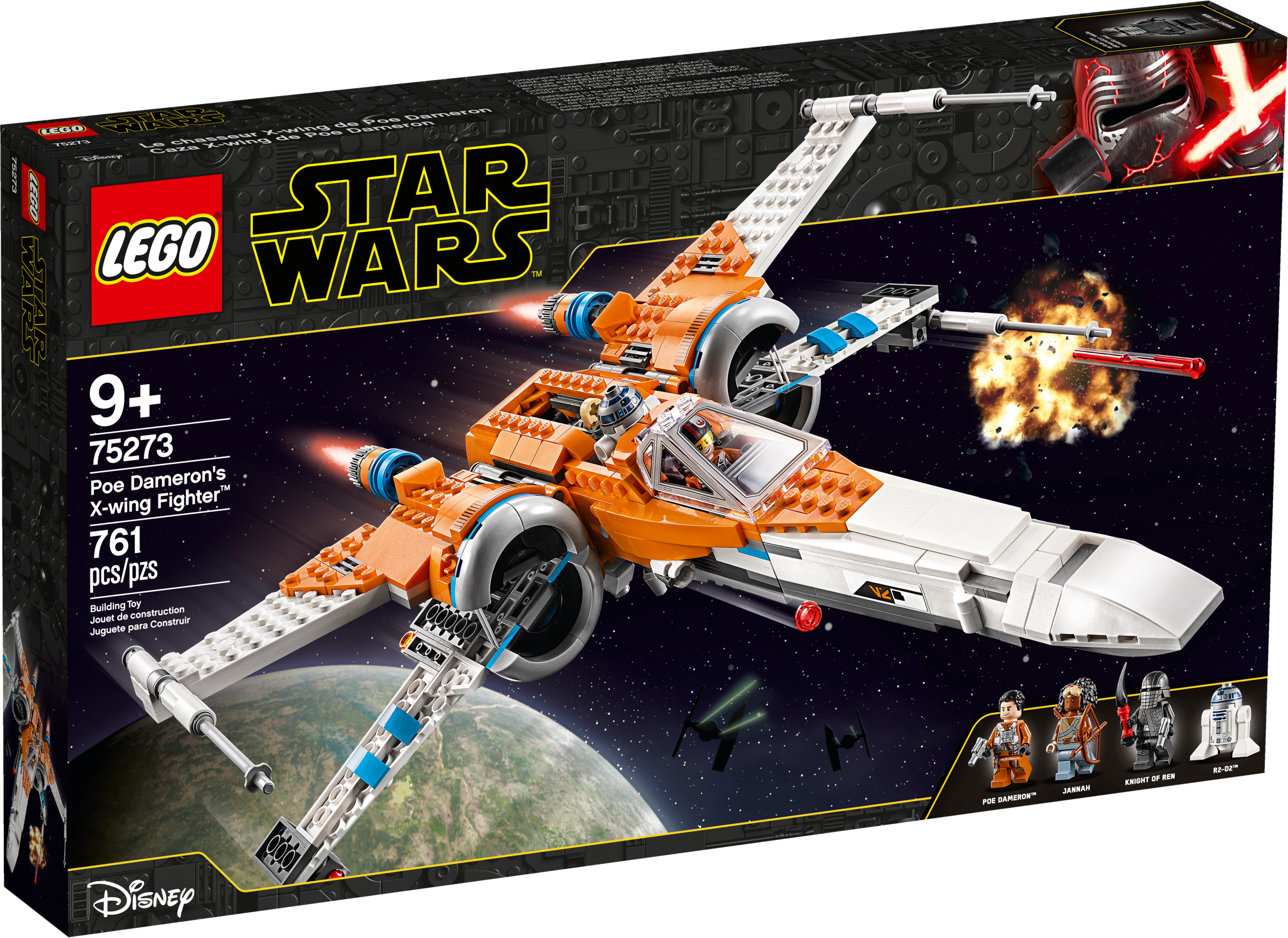Let your youngster feel like Resistance hero Poe Dameron with this X-wing fighter (75273)! Fans will love the sleek new-for-January-2020 design, just like the X-wing in Star Wars: The Rise of Skywalker. It’s got loads of play-inspiring features – adjustable wings for cruise and attack modes, shooting functions, retractable landing gear and more!Resistance vs. First Order battles!This cool starfighter comes with 3 minifigures – Poe Dameron, Knight of Ren, Jannah – with weapons, plus R2-D2 to inspire Resistance vs. First Order role-play. An epic gift idea for any young Star Wars™ fan, this construction playset is great for solo or group play and add the 75272 Sith TIE Fighter for even more action.Star Wars action in LEGO style!The LEGO Group has been creating brick-built versions of iconic Star Wars starfighters, vehicles, locations and characters since 1999. It's become a hugely successful theme with a fantastic variety of sets to thrill fans of all ages – so join in the fun! Kids can role-play as Resistance hero Poe Dameron and fly into battle with this new-for-January-2020 LEGO® Star Wars™ version of the classic X-wing starfighter (75273) from Star Wars: The Rise of Skywalker. Loads of play-inspiring features including an opening minifigure cockpit, space for R2-D2, adjustable wings for cruise and attack mode, stud and spring-loaded shooters and retractable landing gear. Includes an R2-D2 LEGO® droid plus 3 Star Wars™ character toy minifigures – Poe Dameron, Knight of Ren and Jannah – with new-for-January-2020 features, plus blaster pistols, a bowcaster and other weapons for battles. This 761-piece LEGO® Star Wars™ set makes a great gift idea and offers a fun, rewarding building challenge for boys and girls aged 9+. Add the Sith TIE Fighter (75273) for epic First Order vs. Resistance battles. The X-wing fighter building toy measures over 3” (8cm) high, 14” (37cm) long and 12” (32cm) wide so it makes an eye-catching centerpiece to show off to friends when it’s not being flown on Resistance missions! This collectible X-wing LEGO® set is powered by creative kids’ free-thinking – no batteries required – so the action adventures never stop! Is your youngster new to LEGO® sets? Don’t worry. This X-wing building toy comes with easy-to-follow, printed instructions so they can open the box, start building straightaway… and feel Jedi-level awesome! LEGO® Star Wars™ construction toys are great for kids (and adult fans) to build and display, recreate scenes from the memorable Star Wars saga and create their own unique stories. Ever since 1958, LEGO® bricks have met the highest industry standards, which ensures they are consistent and that they connect and pull apart easily every time – no need to use the Force! LEGO® bricks and pieces are tested in almost every way imaginable to make sure that every building set meets the highest safety standards here on planet earth (and in galaxies far, far away!).