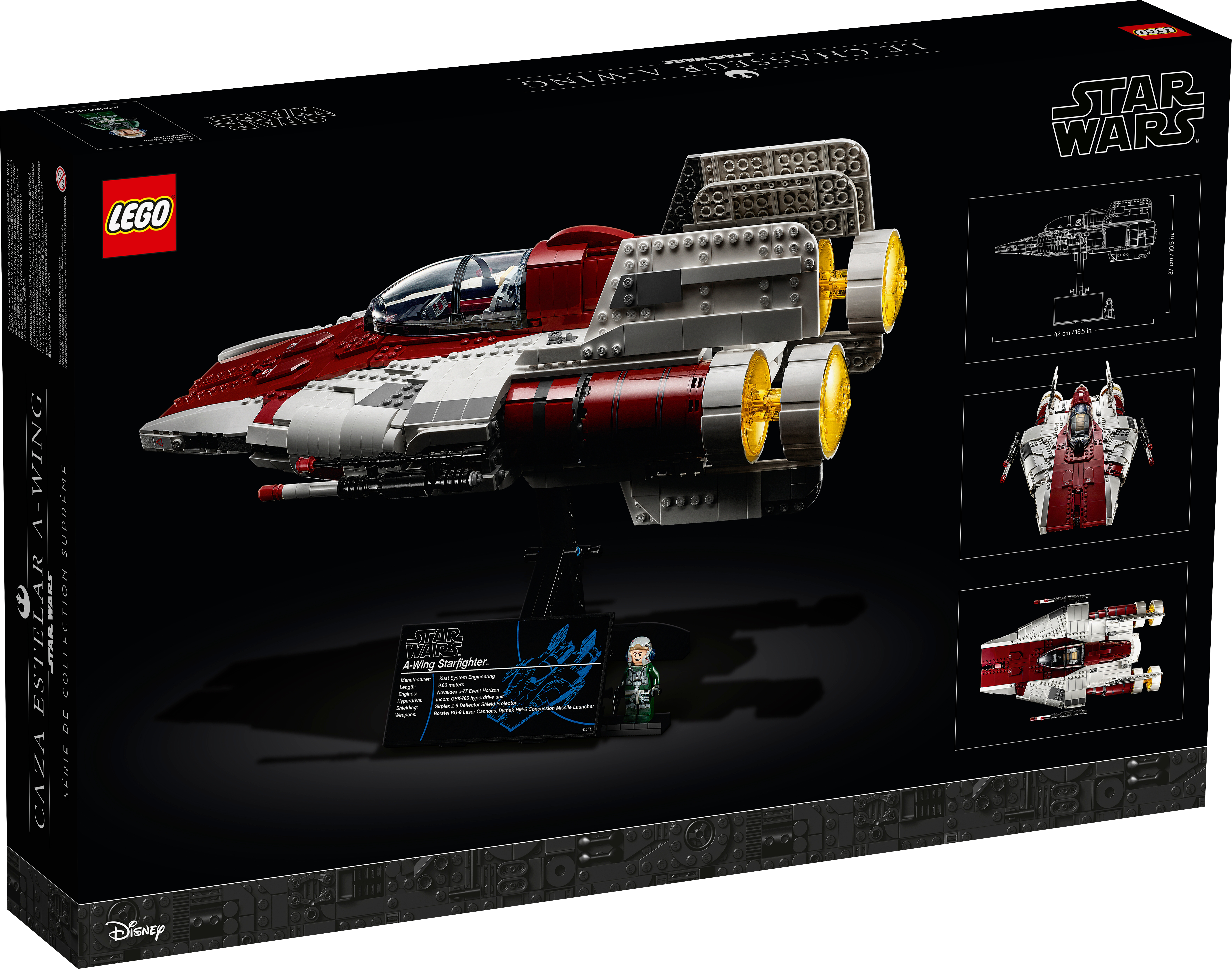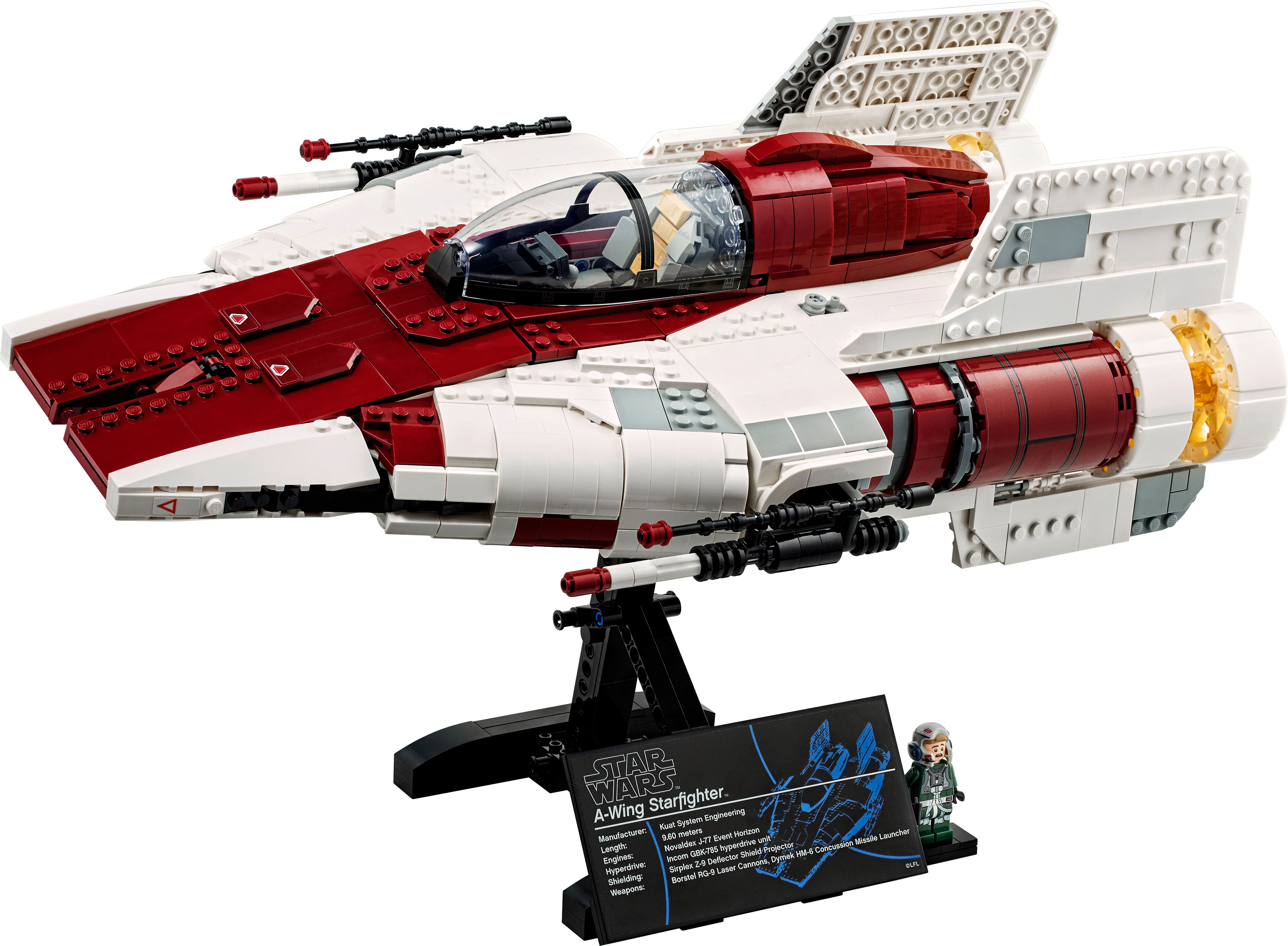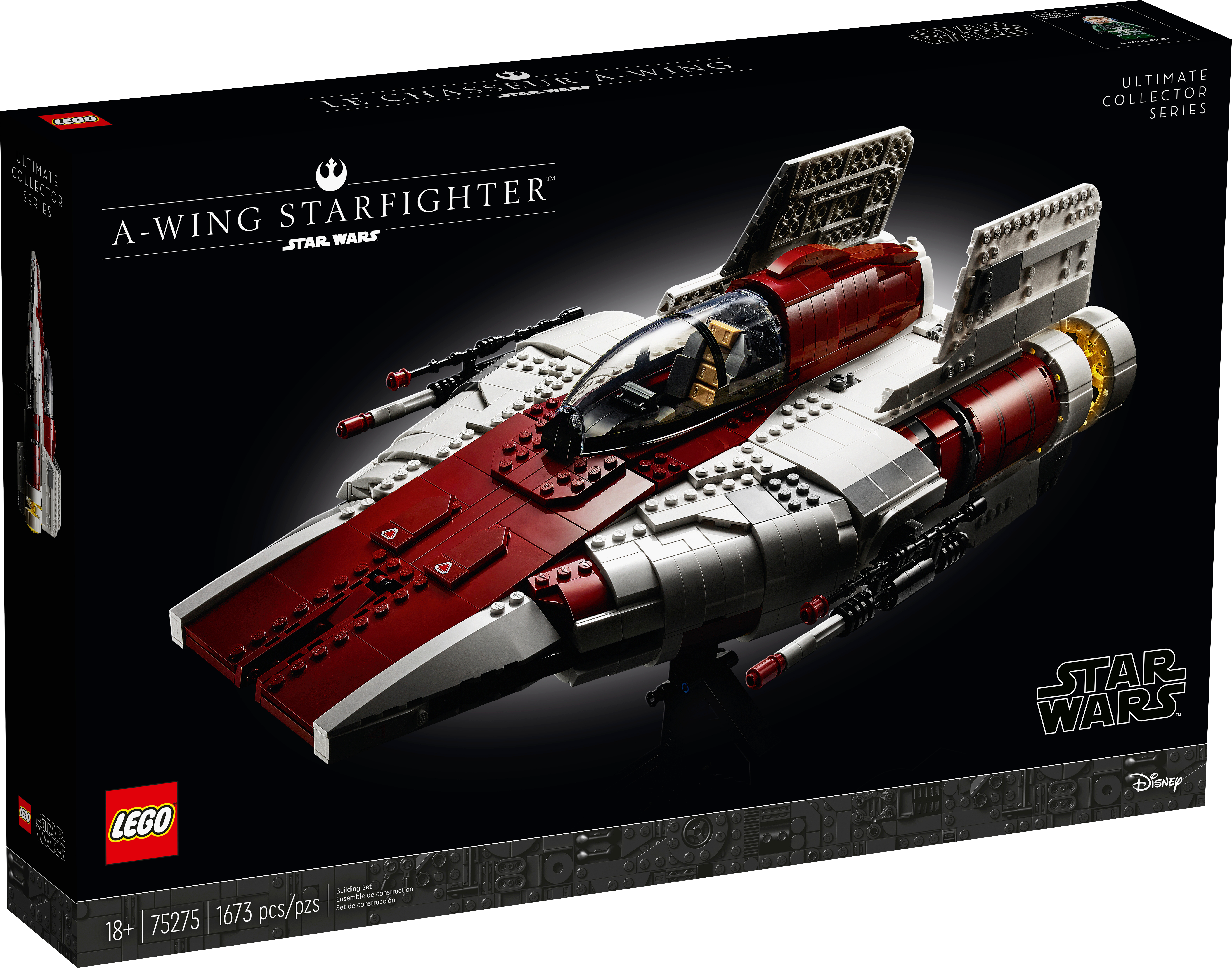 Inspire memories of the classic Star Wars: Return of the Jedi movie with this cool Ultimate Collectors Series LEGO® A-wing Starfighter (75275) building set! The sleek, arrowhead shape is beautifully reproduced in LEGO bricks and fans will appreciate authentic details such as the pivoting laser cannons and new-for-May-2020 removable canopy on the cockpit. Create a stunning display with the first-ever LEGO® Ultimate Collector Series version of the A-wing Starfighter (75275) from Star Wars: Return of the Jedi, featuring a new-for-January-2020 removable cockpit canopy! Star Wars™ fans will love authentic details such as the pivoting laser cannons. Also includes an adjustable display stand, information plaque and A-wing Pilot character to complete a striking Star Wars centerpiece. This A-wing LEGO® set is part of the Star Wars™ Ultimate Collector Series (UCS). Also check out the brilliant Stormtrooper Helmet (75276) and Boba Fett Helmet (75277) build-to-display models. This 1,673-piece LEGO® Star Wars™ A-wing fighter building set offers a fun, rewarding challenge for Star Wars fans aged 18+, and makes a fantastic birthday gift, Christmas present or special occasion surprise. Measuring 10.5” (27cm) high including display stand, 16.5” (42cm) long and 10” (26cm) wide, this collectible LEGO® Star Wars™ A-wing fighter model is bound to make a big impression displayed at home or in the office. This battery-free building set is a peaceful way for adults to unwind after a hard day at work. Forget your worries for a while, find your building Zen and create an incredible LEGO® Star Wars™ A-wing model! Thinking of buying this A-wing Starfighter model kit for a Star Wars™ fan who is new to LEGO® sets? No worries. It comes with step-by-step instructions so they can take on this challenging build with confidence. There is a huge variety of LEGO® Star Wars™ building sets to delight fans of all ages, whether they want to play out famous movie scenes, create their own epic stories or just build and display the awesome models. You won’t need to use the Force to connect or pull apart LEGO® bricks! They meet the highest industry standards to ensure consistency and a perfect, easy connection. LEGO® bricks and pieces are tested in almost every way imaginable so you can be sure that this cool Star Wars™ A-wing fighter building set meets the highest safety standards on planet Earth (and in any galaxy!).