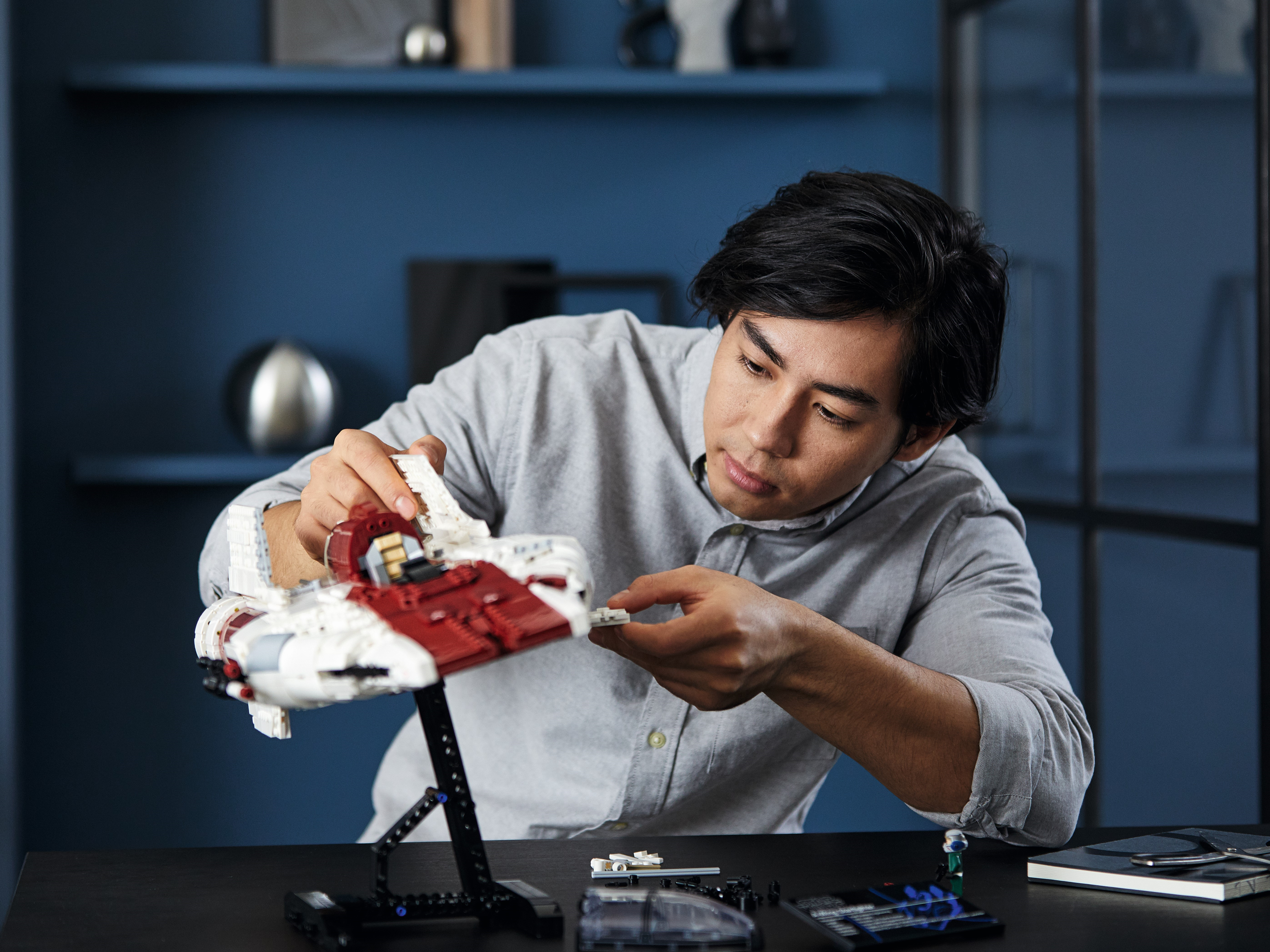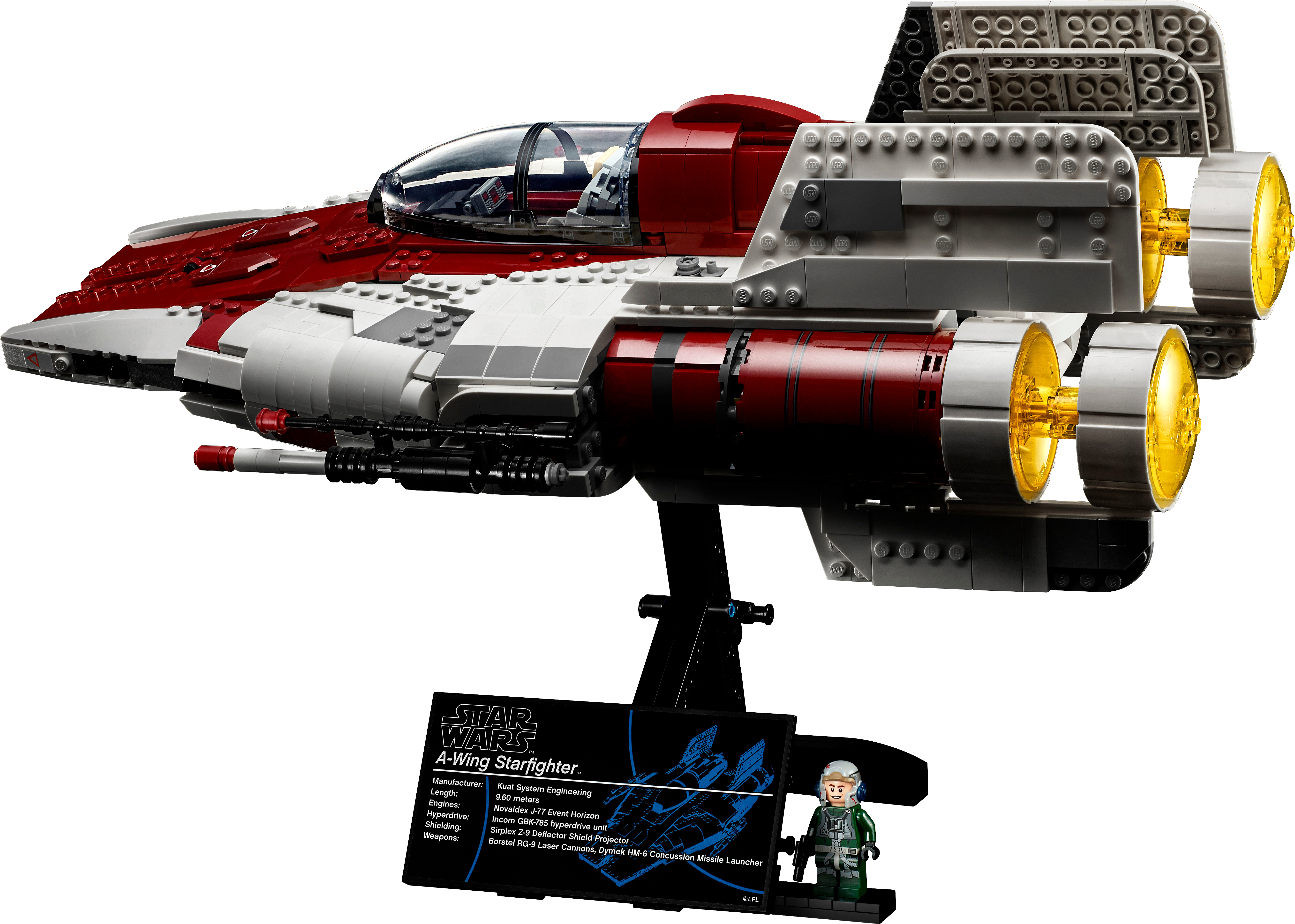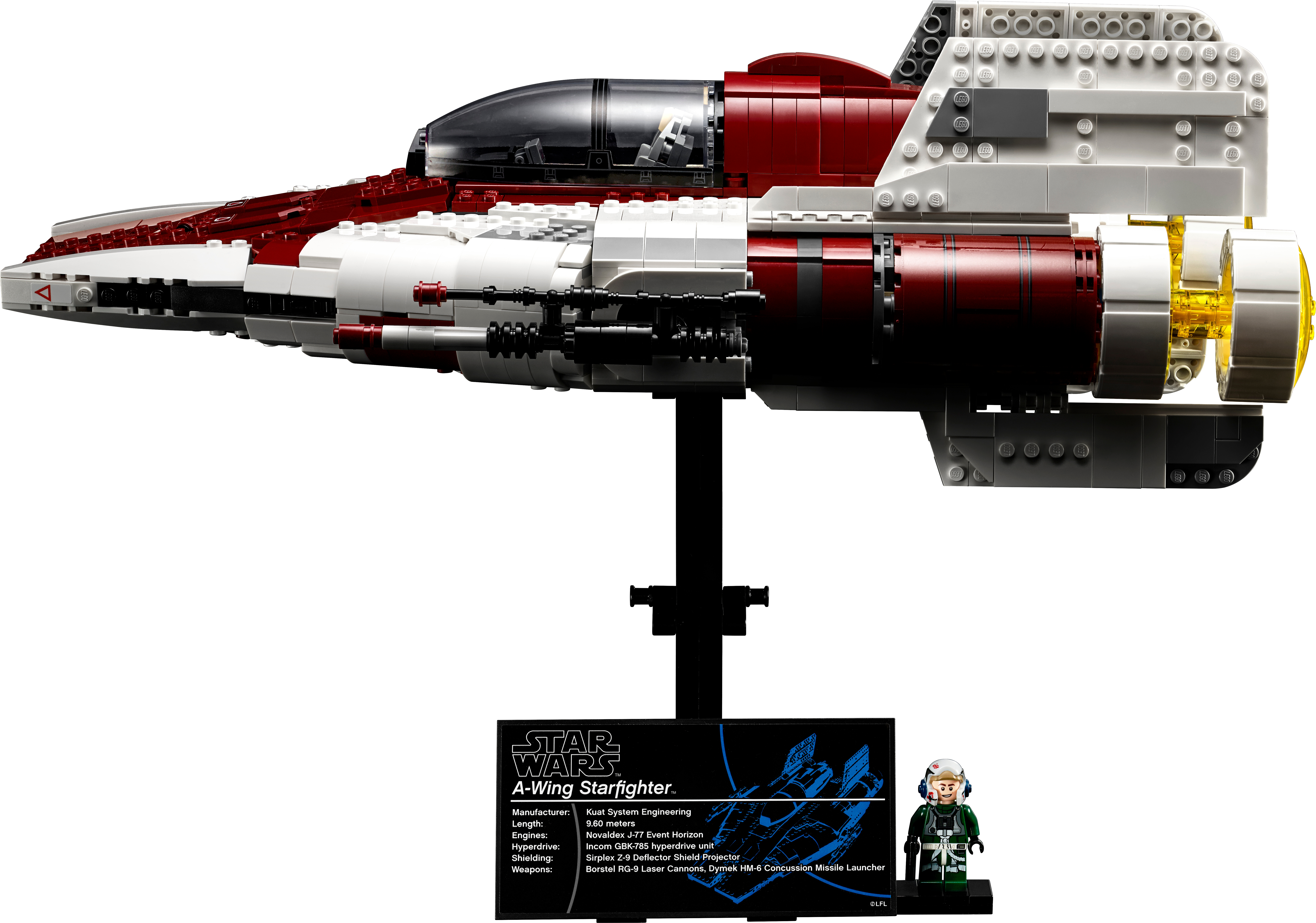 Inspire memories of the classic Star Wars: Return of the Jedi movie with this cool Ultimate Collectors Series LEGO® A-wing Starfighter (75275) building set! The sleek, arrowhead shape is beautifully reproduced in LEGO bricks and fans will appreciate authentic details such as the pivoting laser cannons and new-for-May-2020 removable canopy on the cockpit. Create a stunning display with the first-ever LEGO® Ultimate Collector Series version of the A-wing Starfighter (75275) from Star Wars: Return of the Jedi, featuring a new-for-January-2020 removable cockpit canopy! Star Wars™ fans will love authentic details such as the pivoting laser cannons. Also includes an adjustable display stand, information plaque and A-wing Pilot character to complete a striking Star Wars centerpiece. This A-wing LEGO® set is part of the Star Wars™ Ultimate Collector Series (UCS). Also check out the brilliant Stormtrooper Helmet (75276) and Boba Fett Helmet (75277) build-to-display models. This 1,673-piece LEGO® Star Wars™ A-wing fighter building set offers a fun, rewarding challenge for Star Wars fans aged 18+, and makes a fantastic birthday gift, Christmas present or special occasion surprise. Measuring 10.5” (27cm) high including display stand, 16.5” (42cm) long and 10” (26cm) wide, this collectible LEGO® Star Wars™ A-wing fighter model is bound to make a big impression displayed at home or in the office. This battery-free building set is a peaceful way for adults to unwind after a hard day at work. Forget your worries for a while, find your building Zen and create an incredible LEGO® Star Wars™ A-wing model! Thinking of buying this A-wing Starfighter model kit for a Star Wars™ fan who is new to LEGO® sets? No worries. It comes with step-by-step instructions so they can take on this challenging build with confidence. There is a huge variety of LEGO® Star Wars™ building sets to delight fans of all ages, whether they want to play out famous movie scenes, create their own epic stories or just build and display the awesome models. You won’t need to use the Force to connect or pull apart LEGO® bricks! They meet the highest industry standards to ensure consistency and a perfect, easy connection. LEGO® bricks and pieces are tested in almost every way imaginable so you can be sure that this cool Star Wars™ A-wing fighter building set meets the highest safety standards on planet Earth (and in any galaxy!).