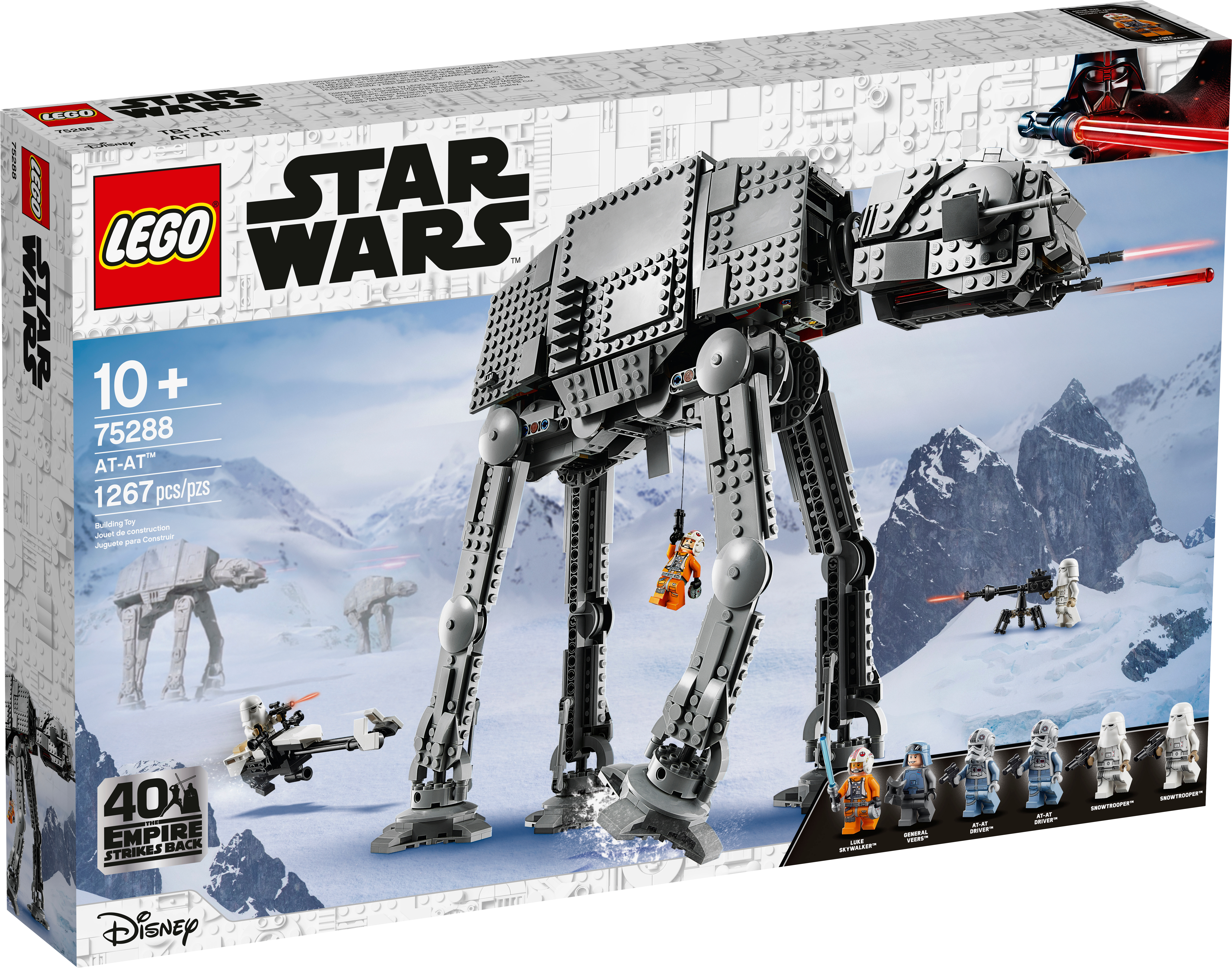 Relive the Battle of Hoth and other classic Star Wars™ trilogy scenes with this AT-AT (75288) LEGO® building kit for kids! Different sections of the All Terrain Armored Transport vehicle open up for easy play, and it has spring-loaded shooters, plus a speeder bike inside. Fans will also love authentic details such as a winch to pull up Luke and his thermal detonator element.The Empire vs. Rebel AllianceThis action-packed set includes 6 LEGO minifigures – Luke Skywalker, General Veers, 2 AT-AT Drivers and 2 Snowtroopers. They all have weapons, including Luke’s Lightsaber and the Snowtroopers’ tripod gun, to inspire Star Wars role-play missions. A wonderful gift idea for any LEGO Star Wars collector, it’s great for solo or group play.Love for LEGO Star Wars sets!The LEGO Group has been recreating iconic starships, vehicles, locations and characters from the Star Wars universe for more than two decades and LEGO Star Wars has become a hugely successful theme. What's not to love?Fans of the classic Star Wars™ trilogy and the LEGO® Star Wars: The Skywalker Saga video game will love recreating Battle of Hoth action with this detailed, posable LEGO brick version of the iconic AT-AT (75288) Walker.This fun, creative building toy for kids includes 6 LEGO® Star Wars™ minifigures – Luke Skywalker, General Veers, 2 AT-AT Drivers and 2 Snowtroopers, all with weapons to role-play the Empire vs. Rebel Alliance battles.The AT-AT has a cockpit for 3 LEGO® minifigures, foldout panels, spring-loaded shooters, a speeder bike, winch, bottom hatch so Luke can throw in the thermal detonator element, and more for realistic, creative play.This 1,267-piece set makes a super birthday present, holiday gift or special treat for boys and girls aged 10+ who can look forward to a rewarding building challenge and hours of fun solo or social play.The AT-AT vehicle measures over 13” (34cm) high, 14.5” (38cm) long and 5.5” (15cm) wide. Fans can also drive it in the LEGO® Star Wars: The Skywalker Saga video game.No batteries are needed for this Star Wars™ AT-AT Walker building kit – it’s constructed purely with LEGO® bricks and powered by kids’ imaginations for unlimited galactic adventures and creative fun.Thinking of buying this awesome construction toy for a Star Wars™ fan new to LEGO® sets? No worries. It comes with step-by-step instructions so they can take on this complex building challenge with confidence.LEGO® Star Wars™ building toys are greatfor kids and adult fans to construct, display and recreate classic Star Wars saga scenes or create their own fun missions. There’s something for everyone!No need to summon up the Force to connect or pull apart LEGO® bricks! They meet the highest industry standards so you can be assured that the bricks in this construction playset fit together perfectly and with ease.LEGO® bricks and pieces are heated, crushed, dropped, twisted and analyzed to ensure that every action-packed Star Wars™ set meets the highest quality and safety standards here on Earth – and in galaxies far, far away!