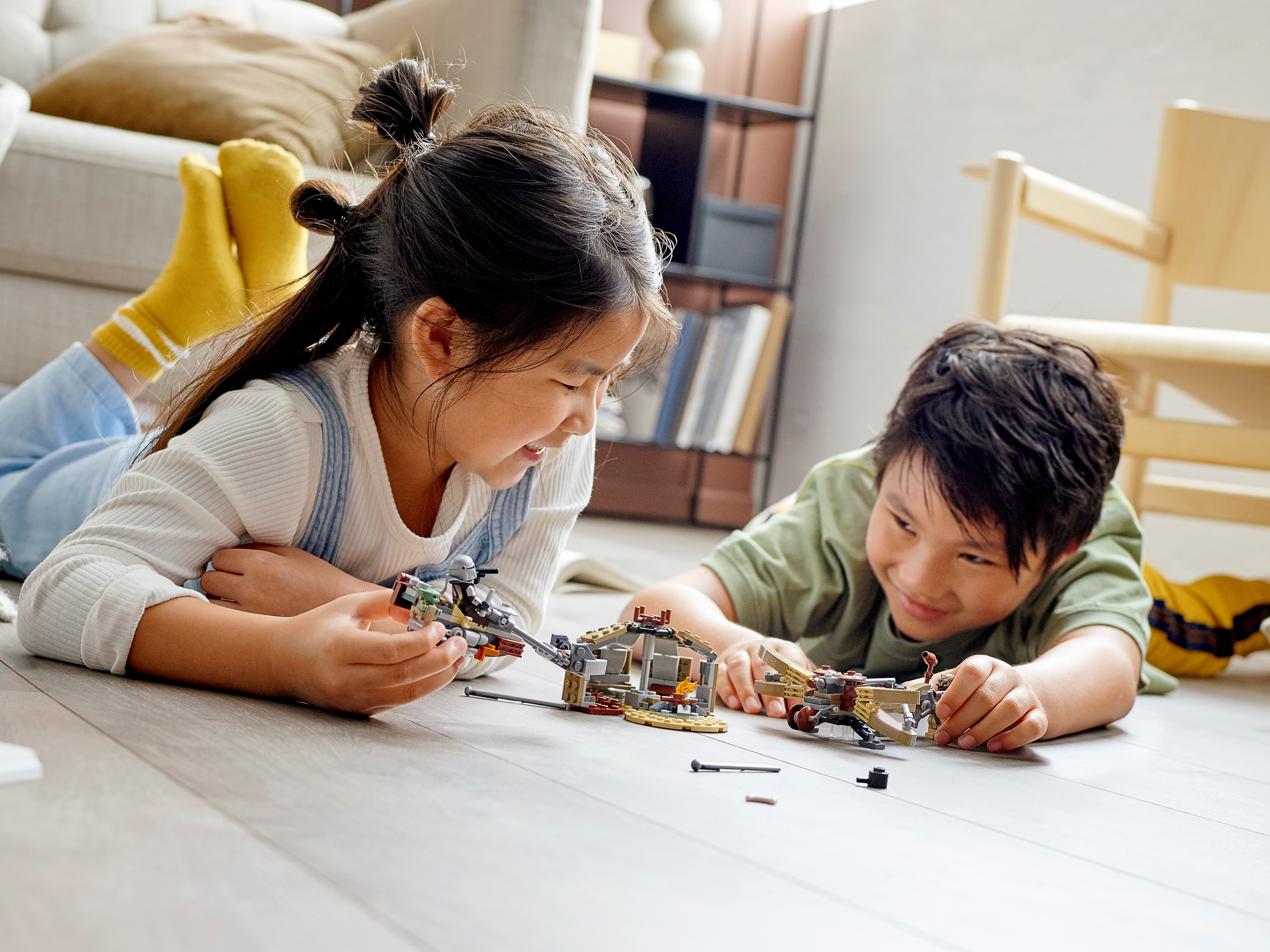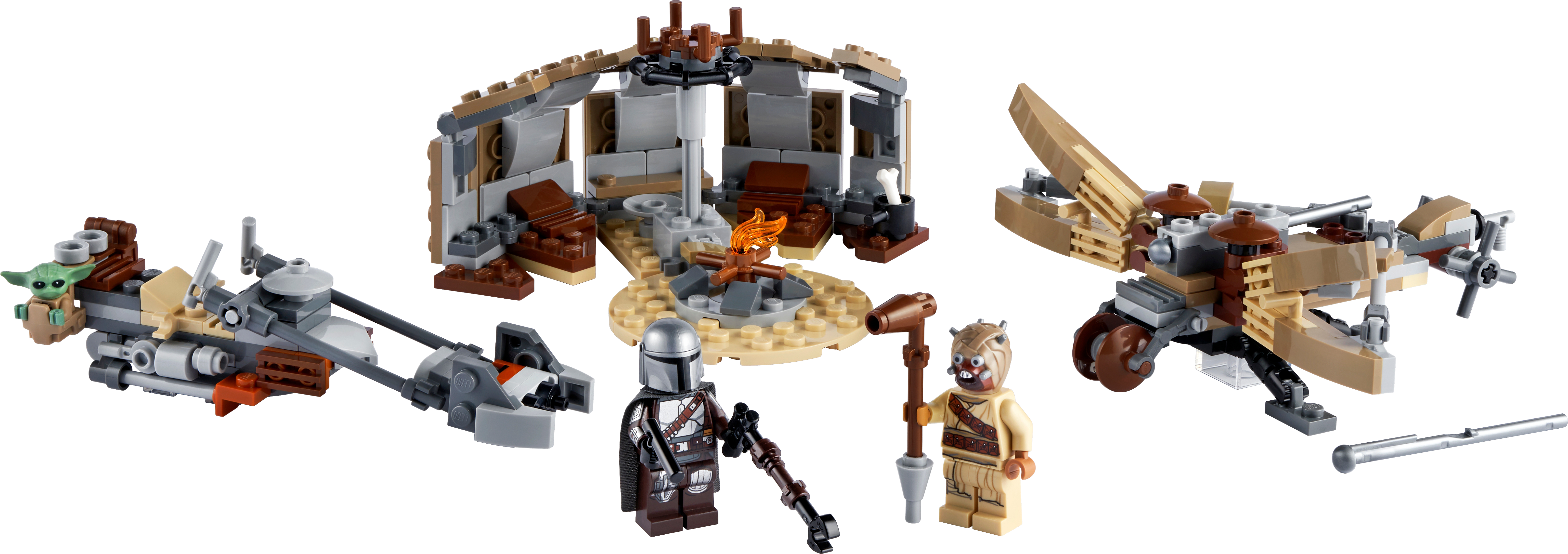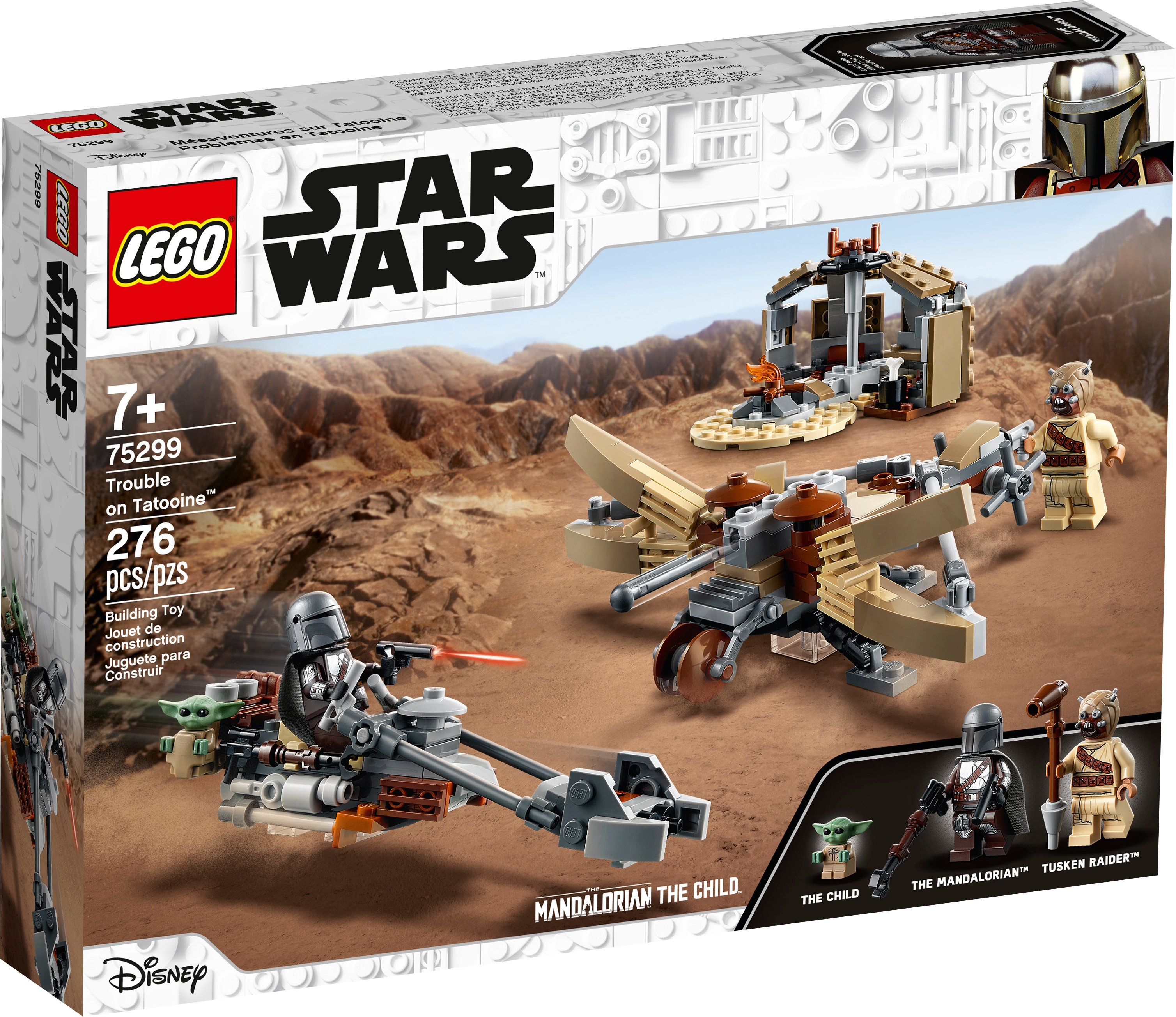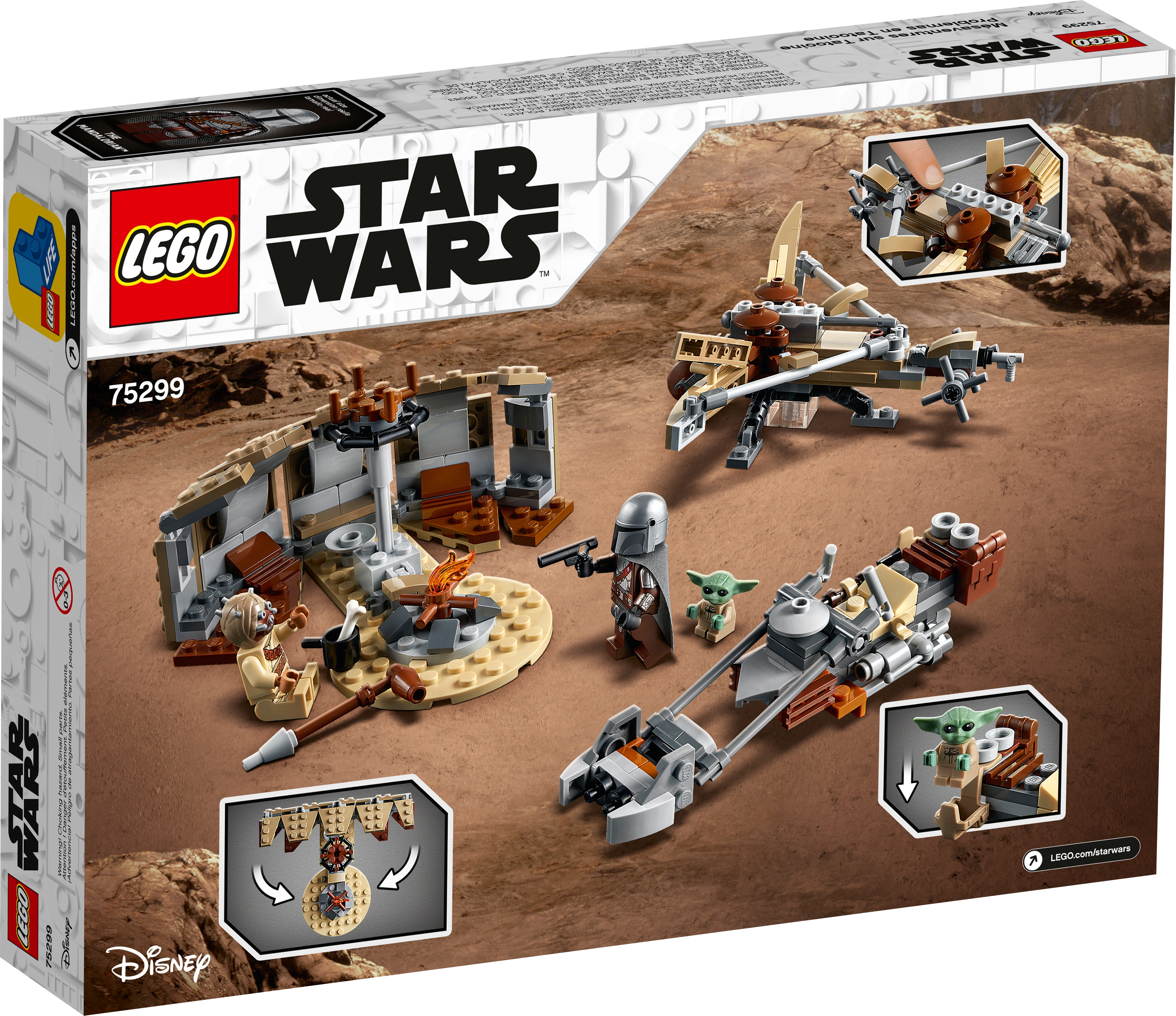 Children will love teaming up with The Mandalorian and a Tusken Raider for desert missions with this LEGO® Star Wars™ Trouble on Tatooine set (75299). It features The Mandalorian’s speeder bike with a LEGO minifigure seat and saddlebag for the Child to sit in, plus a buildable Tusken hut and a new-for-January-2021, missile-shooting ballista for the Tusken Raider.Role play actionThis awesome kids’ building toy includes The Mandalorian and Tusken Raider LEGO minifigures, a LEGO figure of the Child (affectionately known as Baby Yoda), plus cool weapons to inspire hours of roleplay fun. A great gift idea for young Star Wars: The Mandalorian fans, it comes with clear instructions so even LEGO first-timers can enjoy the building experience.Galaxy of delightsSince 1999, the LEGO Group has been recreating iconic starships, vehicles, locations and characters from the Star Wars universe. LEGO Star Wars has become its most successful theme with a huge variety of sets to excite fans of all ages. Kids can recreate scenes from Star Wars: The Mandalorian Season 2 and play out their own speeder-bike-riding, missile-shooting battle stories with this Trouble on Tatooine (75299) building toy. Includes The Mandalorian and Tusken Raider LEGO® minifigures, each with weapons for roleplay battles, plus a LEGO figure of the Child (the popular character affectionately known as Baby Yoda). The speeder has a LEGO® minifigure seat and saddlebag for the Child to sit in. The set also features a buildable Tusken hut hideout and spring-loaded, missile-shooting ballista for the Tusken Raider. Great for solo building and play or for sharing the fun with friends, this awesome construction toy makes the best birthday present, holiday gift or surprise treat for creative kids aged 7 and up. The speeder measures over 1.5 in. (3 cm) high, 5 in. (13 cm) long and 1.5 in. (3 cm) wide, and this complete set combines brilliantly with other LEGO® Star Wars™ buildable playsets for creative play. Thinking of buying this 277-piece set for a newcomer to LEGO® building? No worries. It comes with easy-to-follow illustrated instructions so they can build with confidence. There are LEGO® Star Wars™ sets to thrill fans of all ages, whether they want to recreate famous scenes, roleplay their own stories or just build and display the authentic construction models. LEGO® components meet the highest industry standards to ensure they are consistent and compatible for a simple, strong connection every time – it’s been that way since 1958. LEGO® bricks and pieces are tested to the max to make sure they meet stringent safety standards.