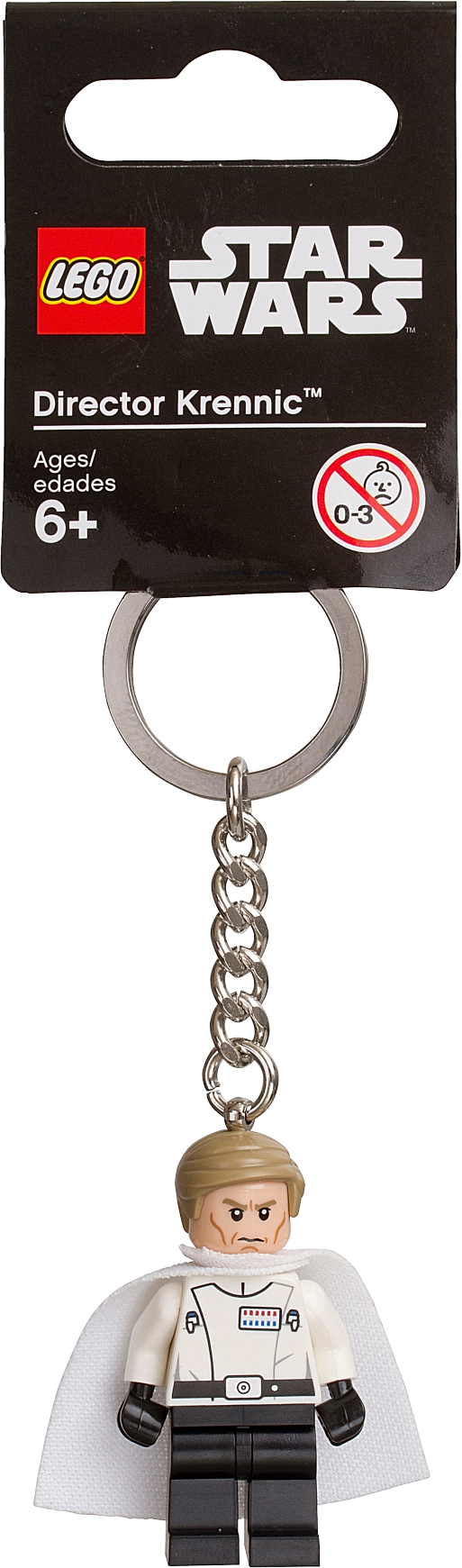Features a LEGO® Star Wars Director Krennic minifigure with fabric cape attached to a durable metal ring and chain.