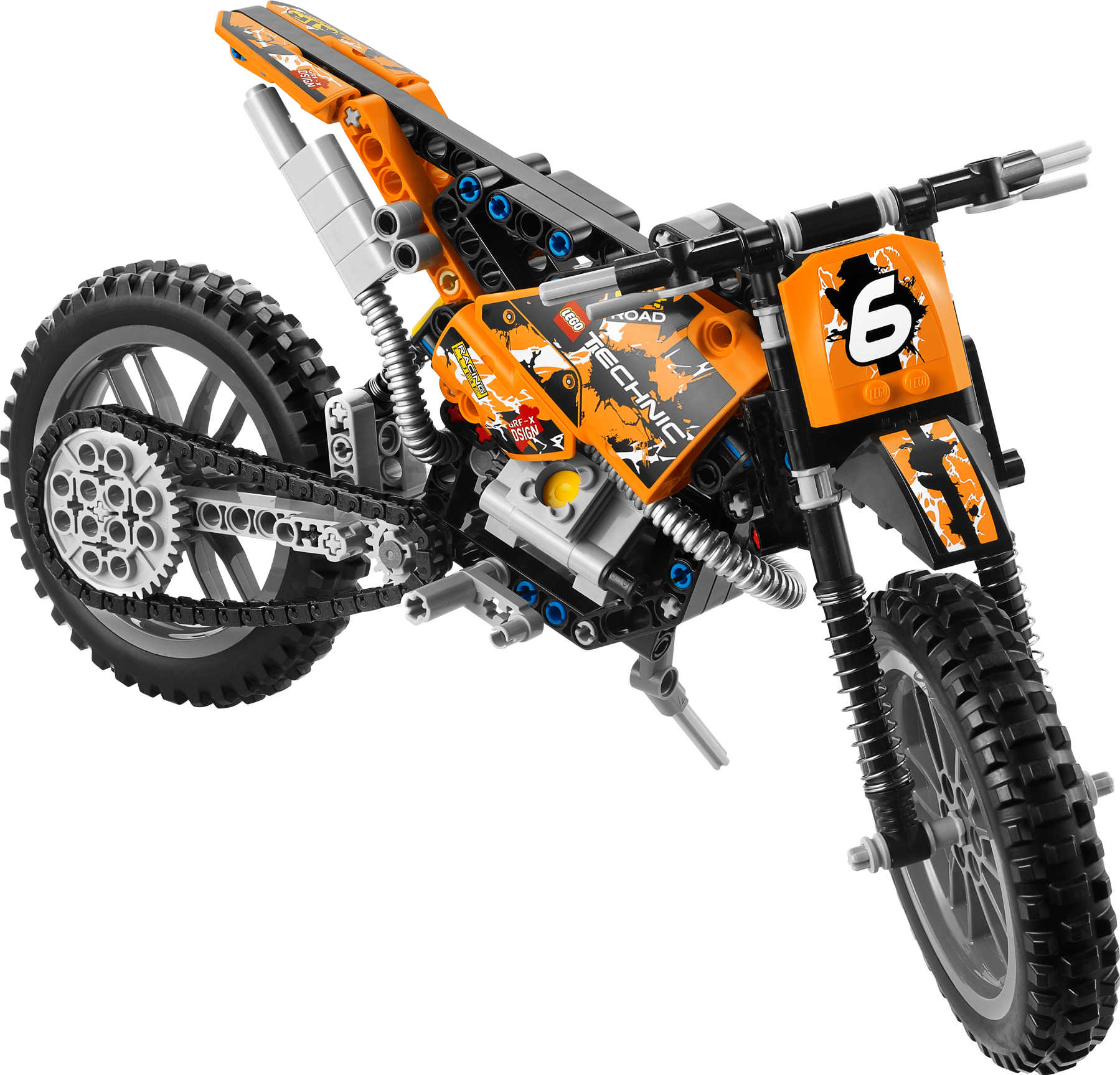 Ride the roughest trails with the Moto Cross Bike! Tear up the trails on the awesome Moto Cross Bike! This tough-as-dirt LEGO® Technic 2-wheeler has lots of authentic features, like chain-drive, working pistons, front and rear suspension and knobby tires. This cool 2-in-1 model is just like the real thing! Rebuilds into a racing Speedway Motorbike with front suspension, rear suspension and engine with moving pistons.• Features chain-drive, working pistons, front and rear suspension and knobby tires• Absorb the biggest bumps with the working suspension!• See the pistons move!• Kick up the dirt with knobby rubber tires!• Build a realistic chain-drive!• 2-in-1 model: Rebuilds into a Speedway Motorbike with front suspension, rear suspension and engine with moving pistons• Measures over 6" (16cm) high, 12" (31cm) long and 4" (11cm) wide• Speedway Motorbike measures over 5" (15cm) high, 11" (30cm) long and 4" (12cm) wide