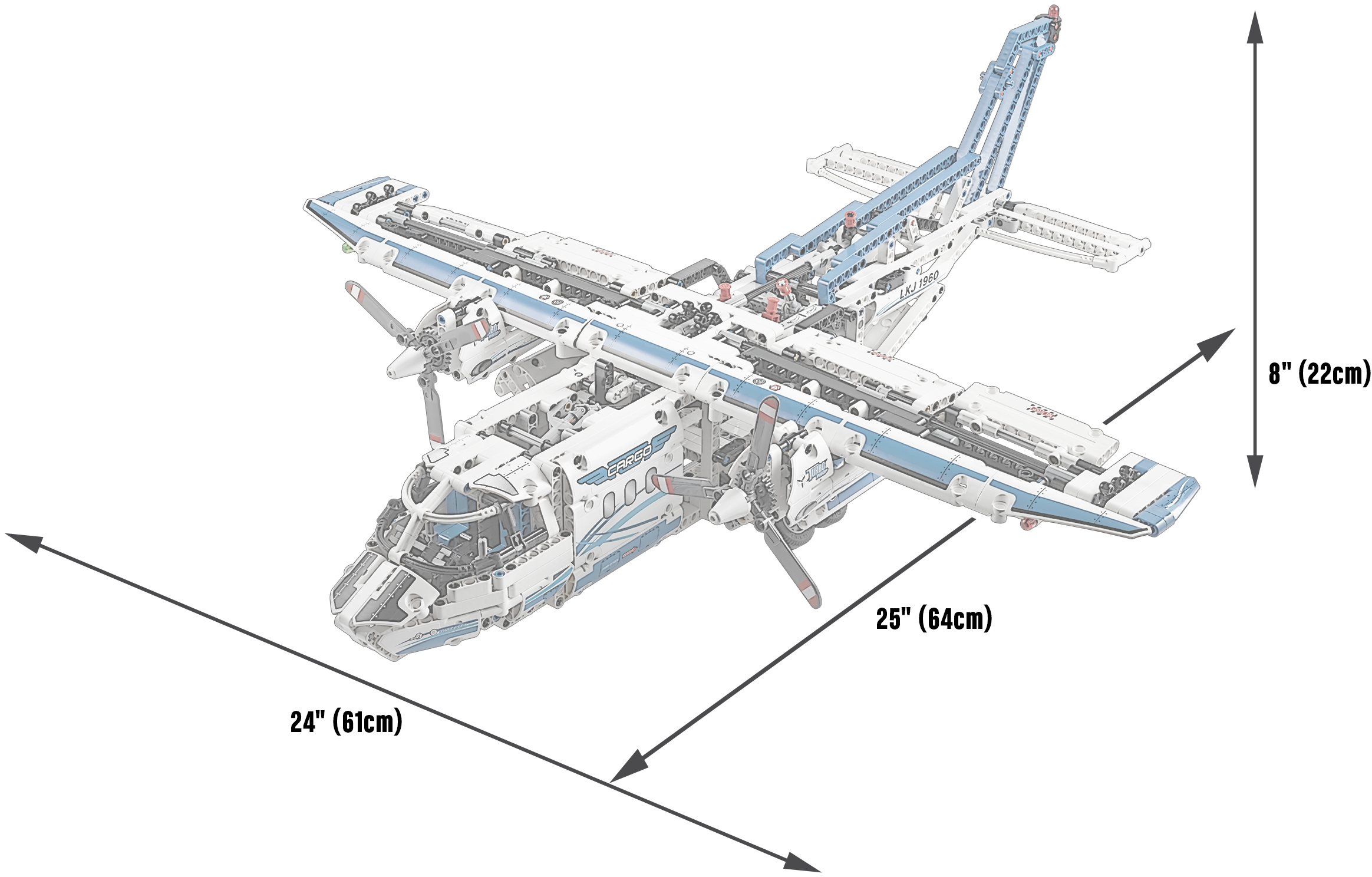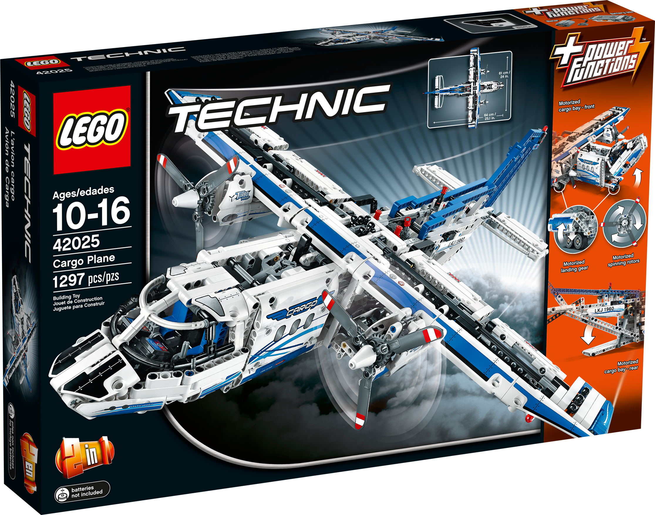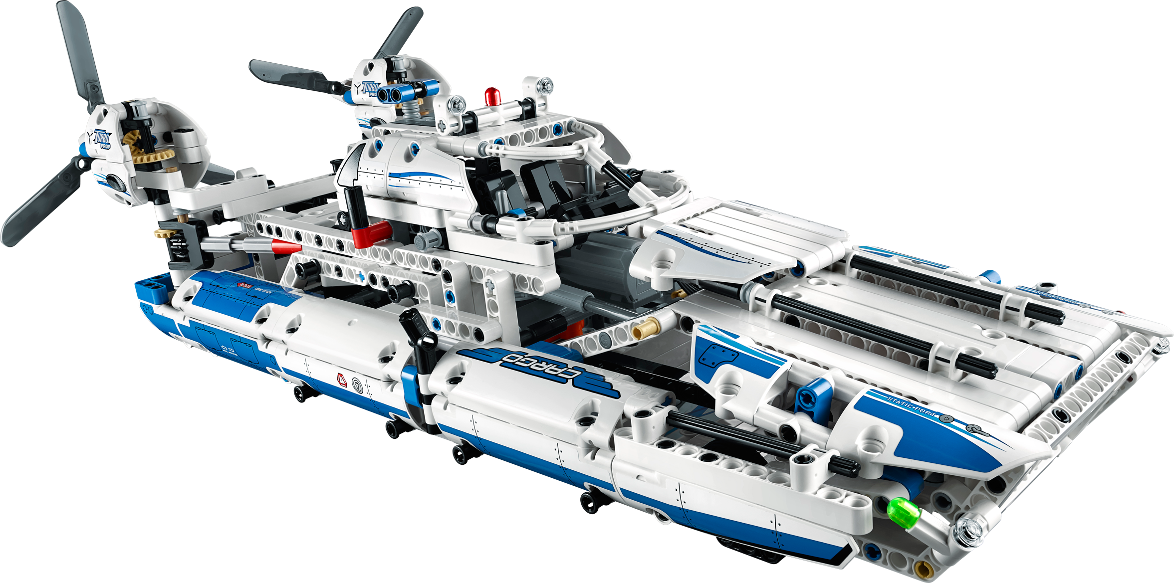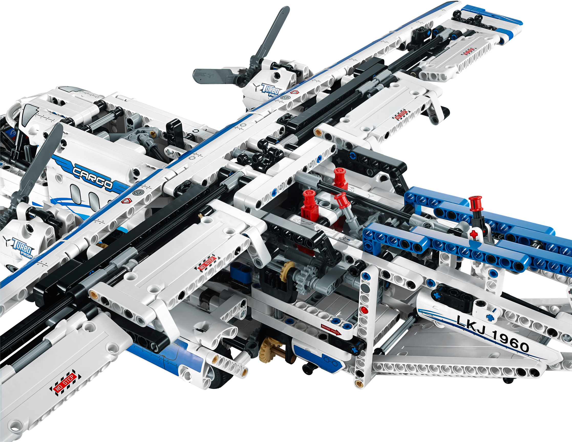 Build and fly the amazing Cargo Plane with realistic functions! Zoom down the runway and off on another tough cargo mission with the biggest and most demanding LEGO® Technic plane yet. This is so much more than just a model, as it has a range of real-world functions to help it do its job. Move the joystick and watch the flaps, elevators and ailerons move, then activate the LEGO® Power Functions motors to open the front and rear cargo bay, retract the landing gear and spin the propellers. It’s just like the real thing! Rebuilds into a Transport Hovercraft.Has a wide range of motorized mechanical features, including spinning rotors, an opening front cargo bay, an opening rear cargo bay and working landing gearControl the ailerons, elevators and flaps with the joystick!Our biggest LEGO® Technic plane ever!This complex build is a real test of your building skillsWatch the propellers turn!2-in-1 model: rebuilds into a Transport HovercraftCargo Plane measures over 8” (22cm) high, 25” (64cm) long and 24” (61cm) wideTransport Hovercraft measures over 4” (12cm) high, 18” (47cm) long and 7” (20cm) wide